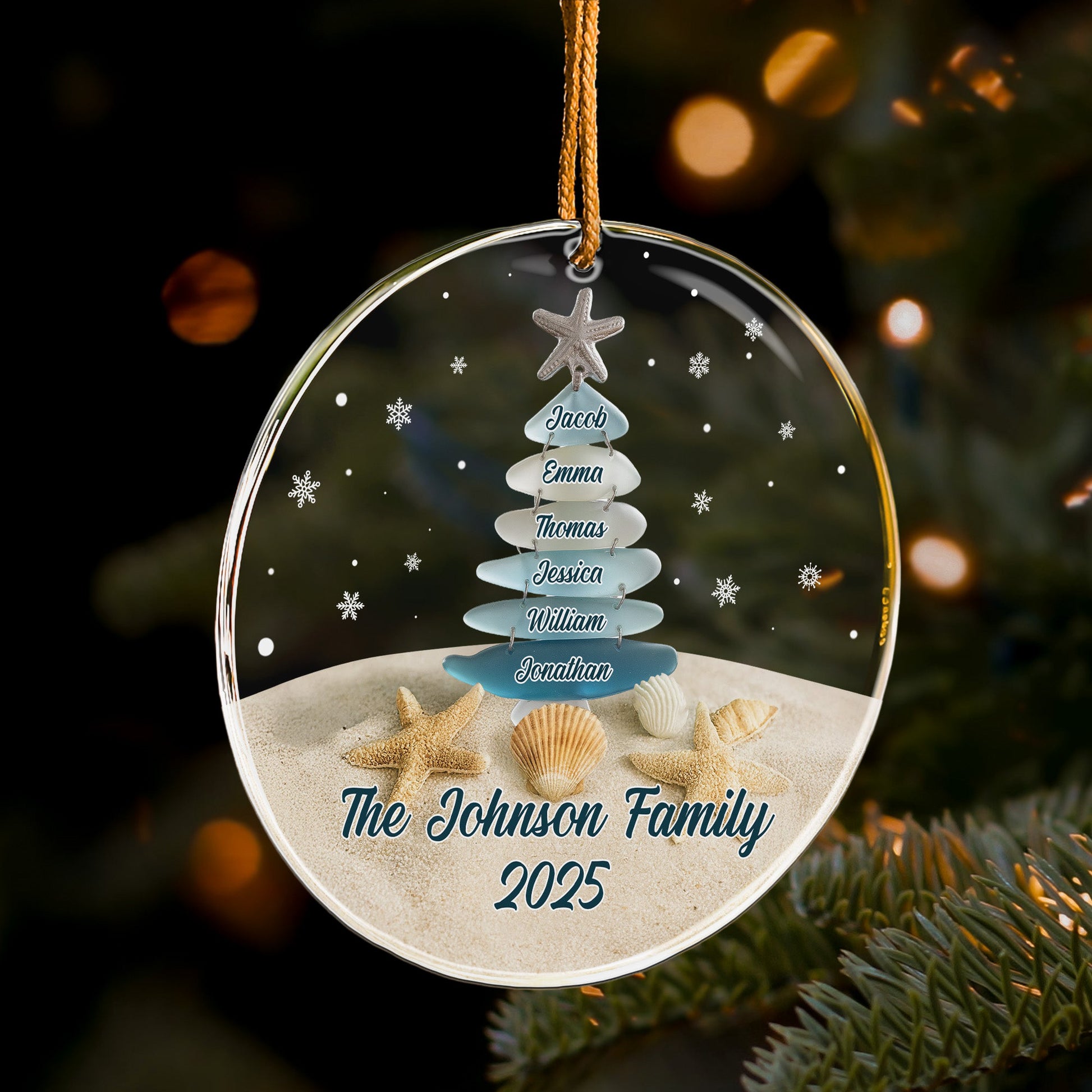 Custom Name With Sea Glass Family Tree Christmas - Personalized Acrylic Ornament