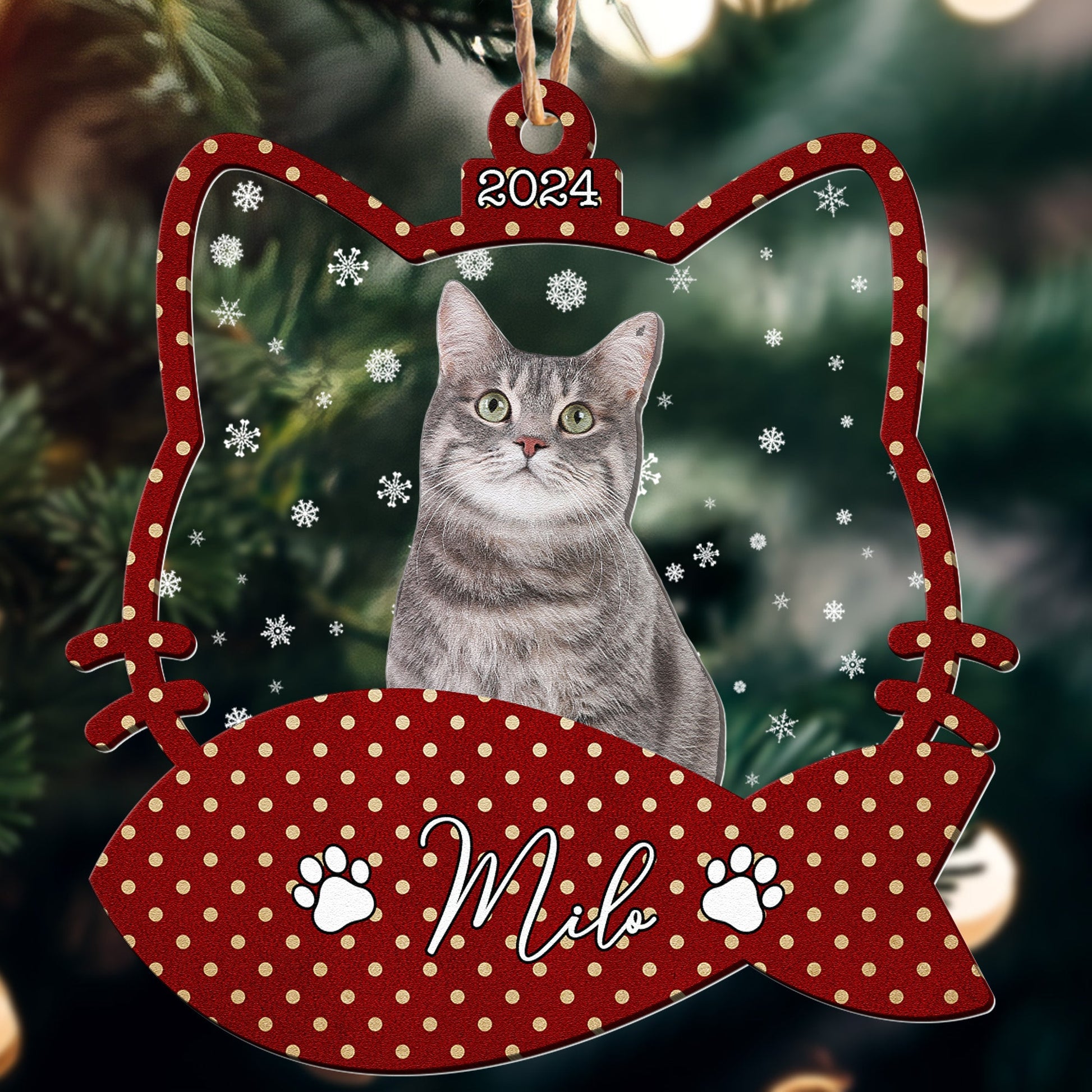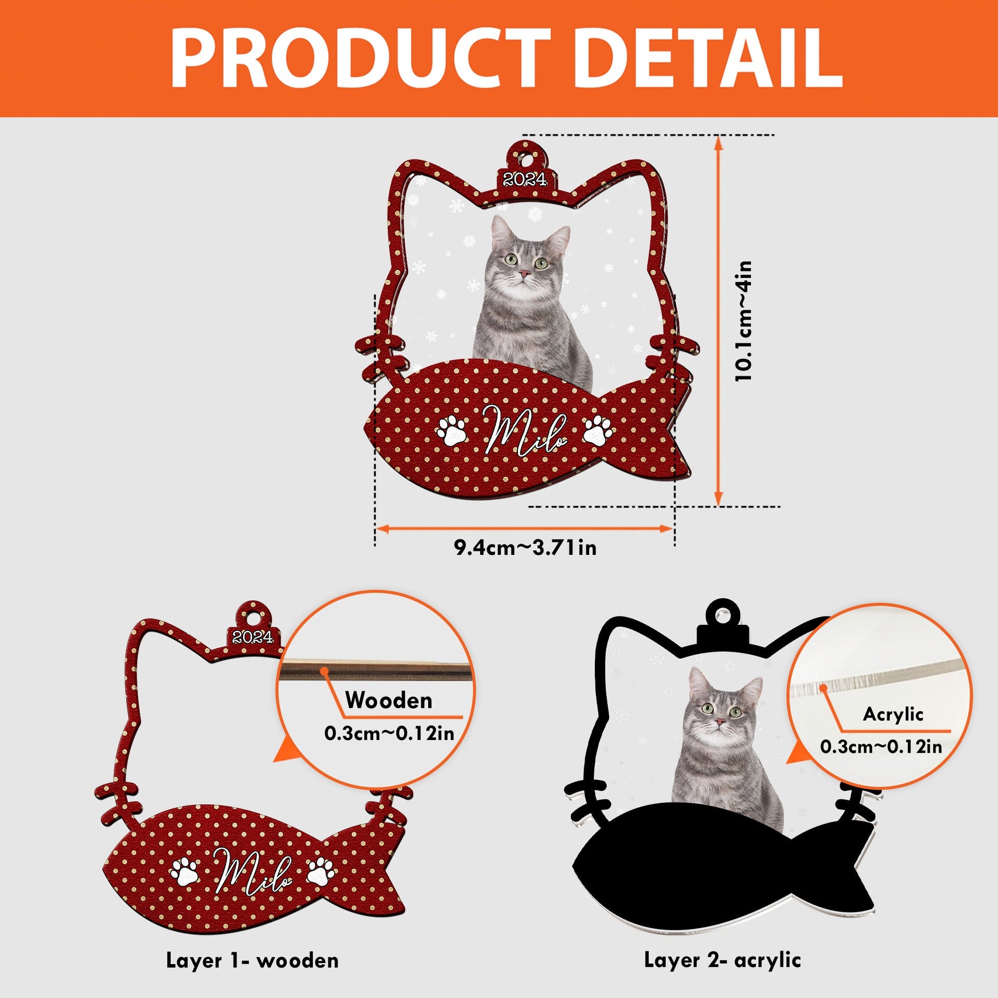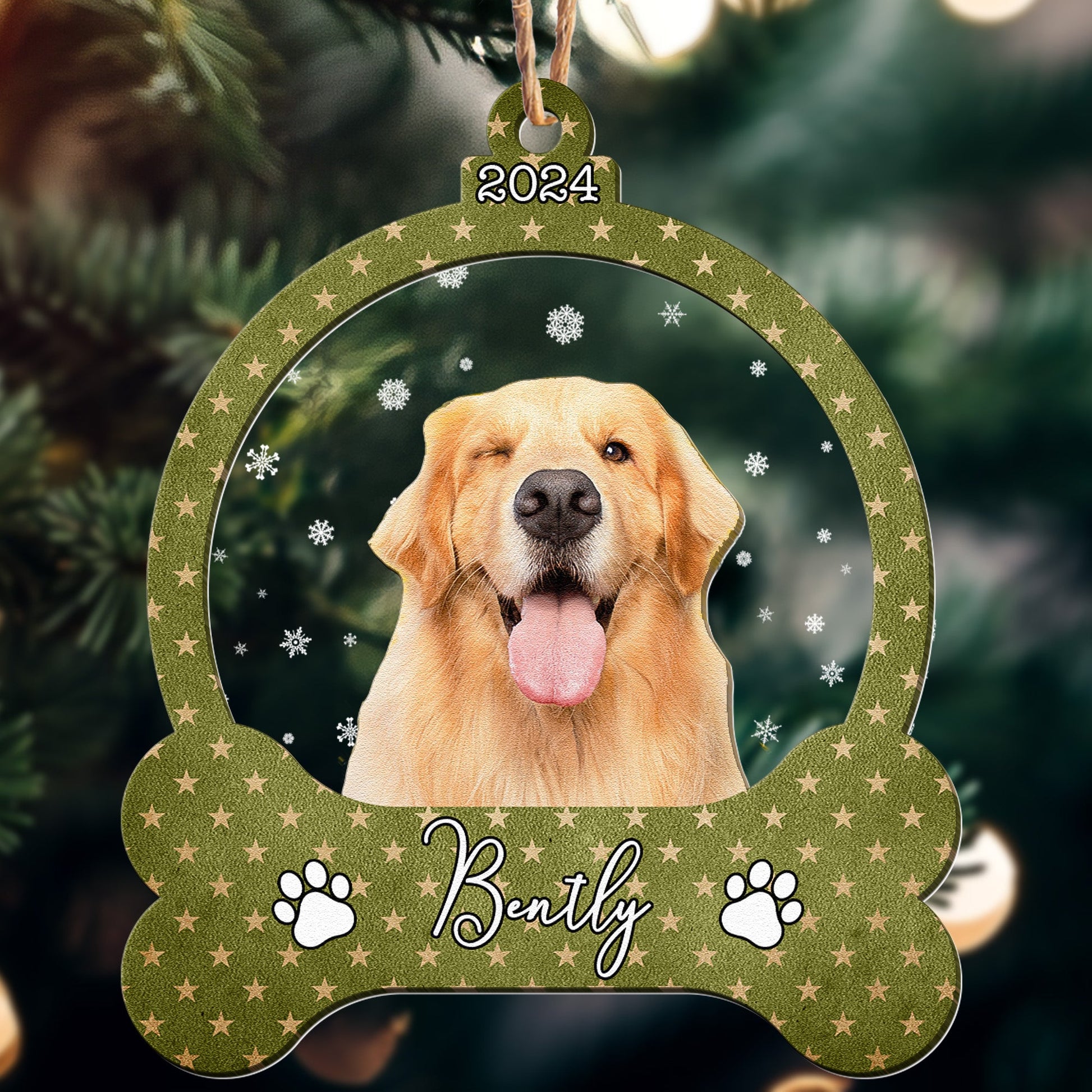 Custom Pet With Christmas Snow - Personalized Photo Wood And Acrylic Ornament