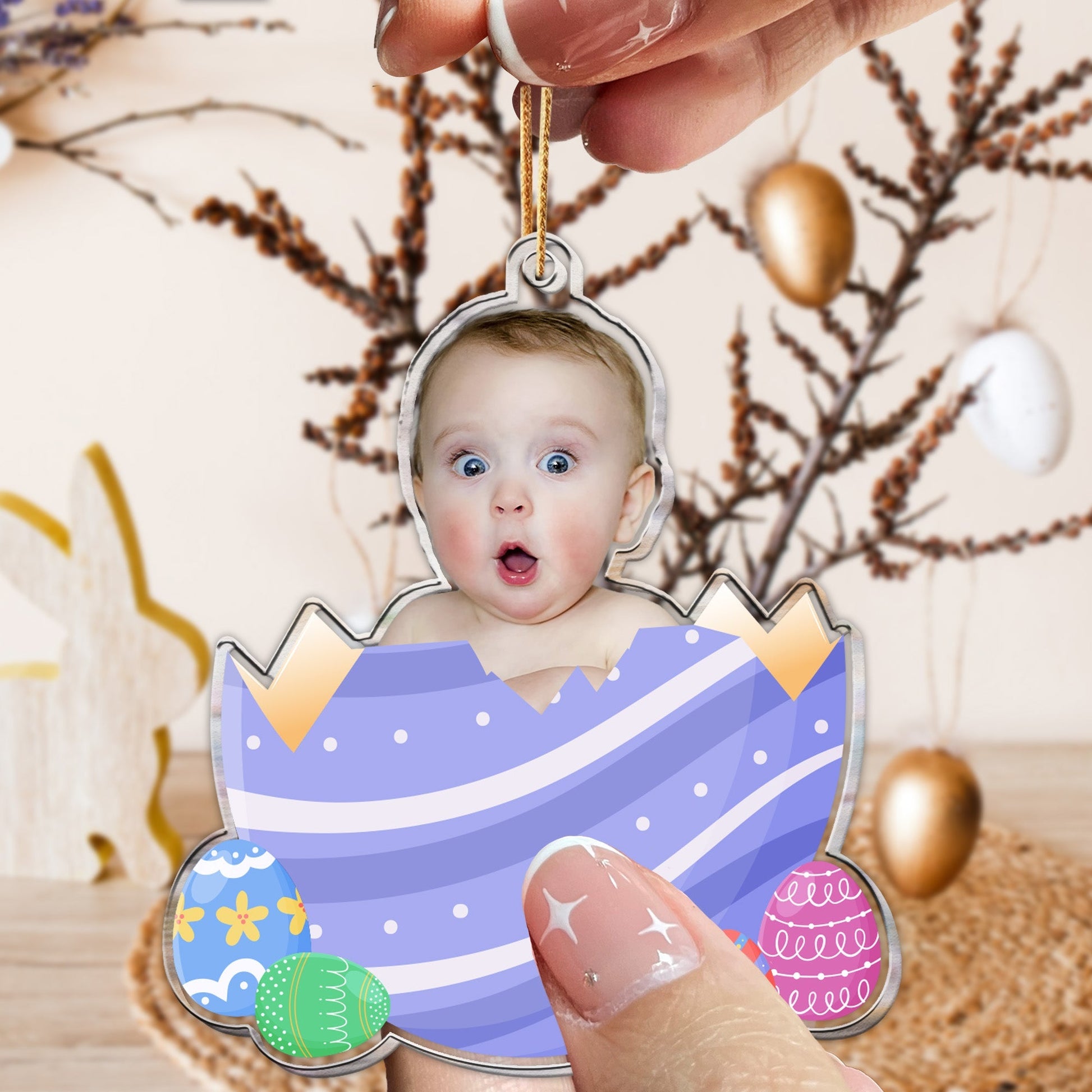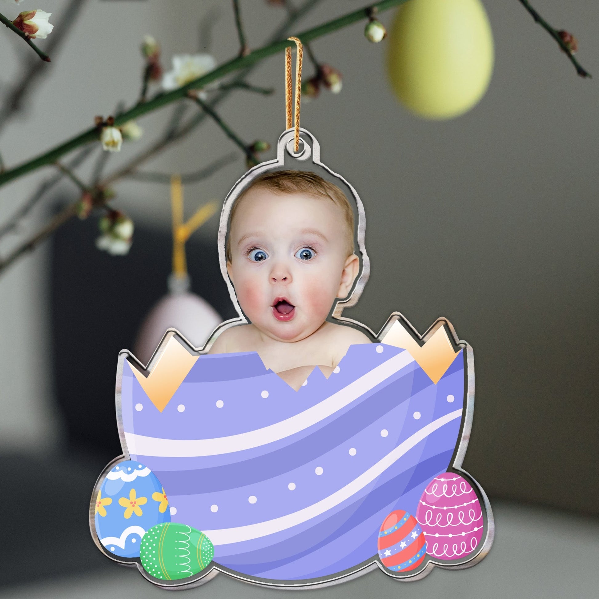 Custom Photo Egg Crack Easter Kid Family Gift - Personalized Photo Easter Ornament