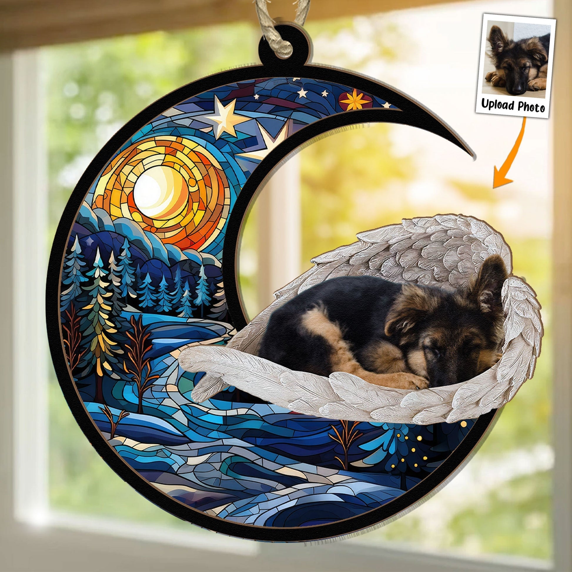 Custom Photo Pet With Angel Wings - Personalized Suncatcher Photo Ornament