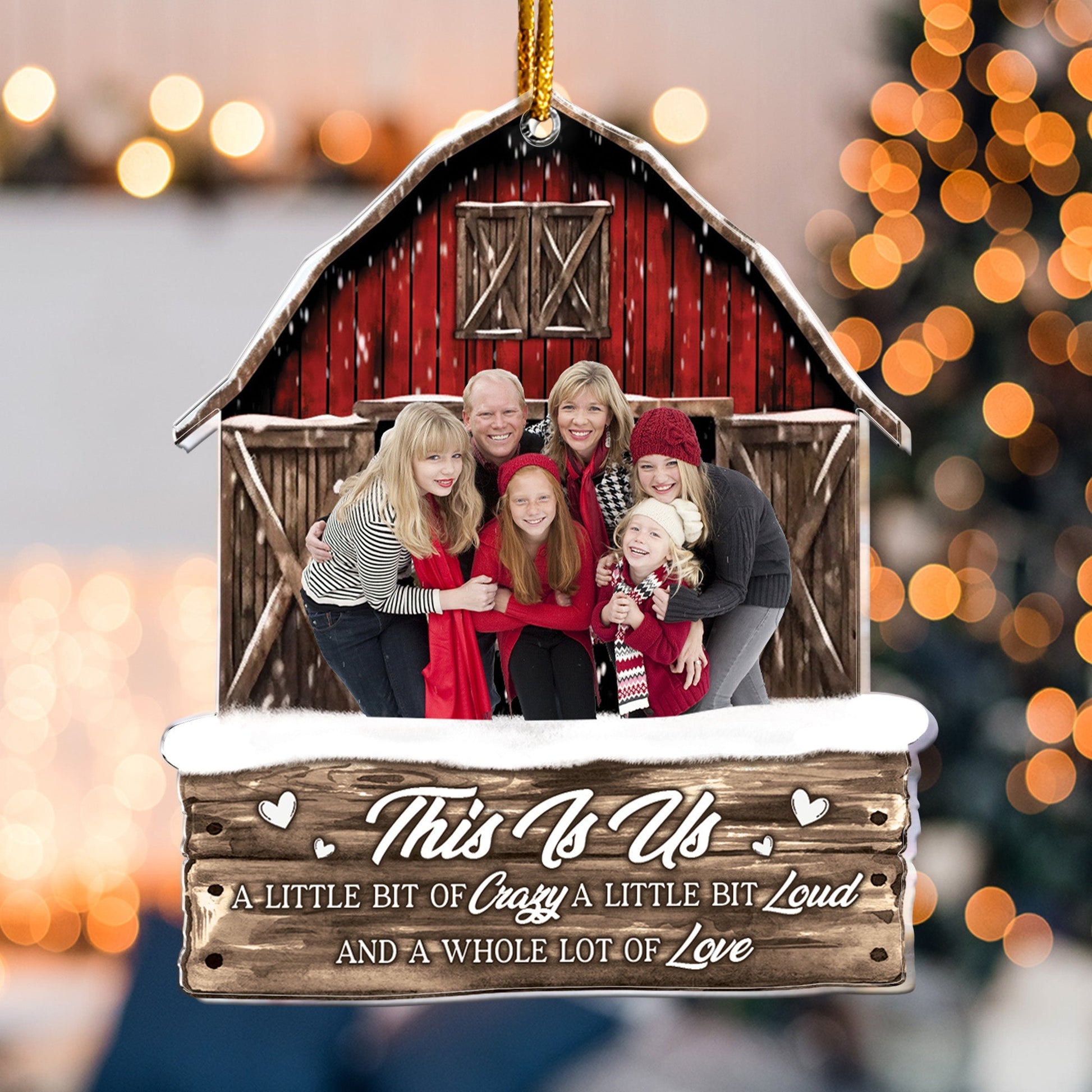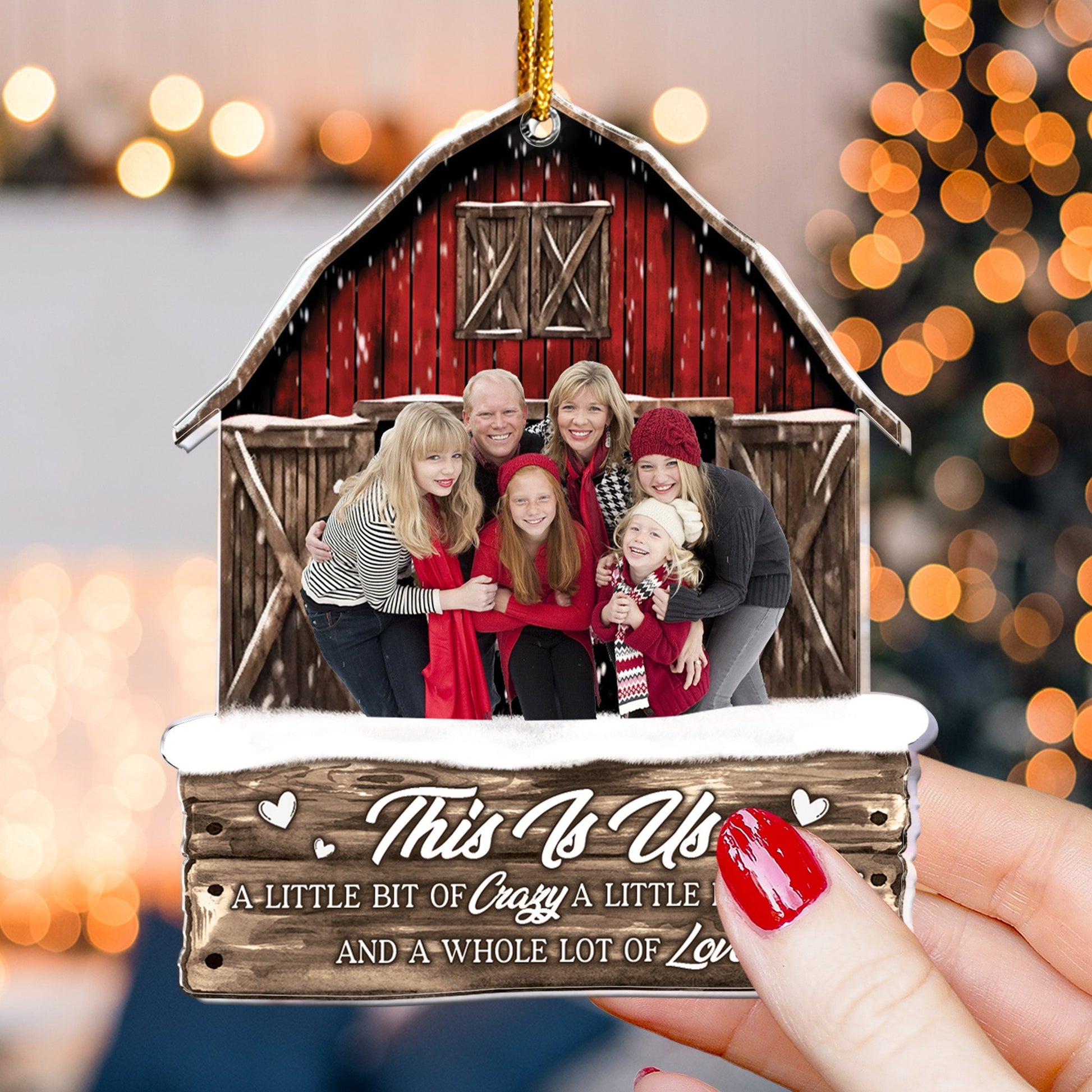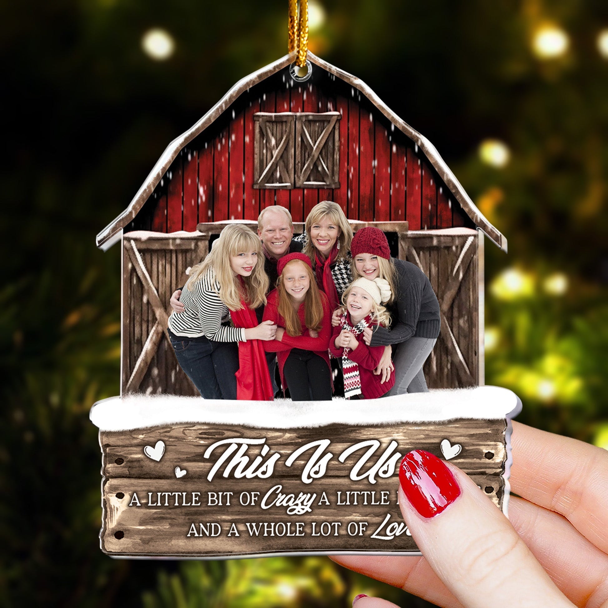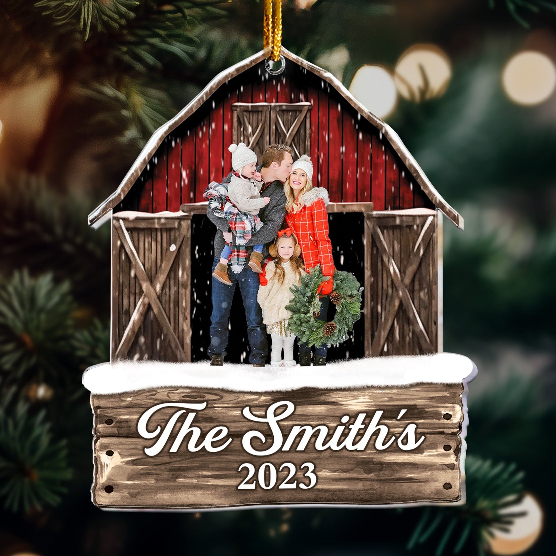 Custom Photo Red Barn Christmas Family - Personalized Acrylic Photo Ornament