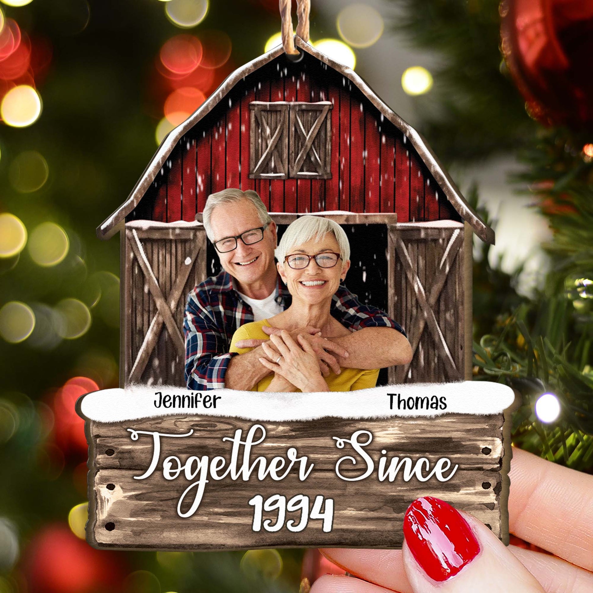 Custom Photo Together Since Couples Red Barn - Personalized Wooden Photo Ornament