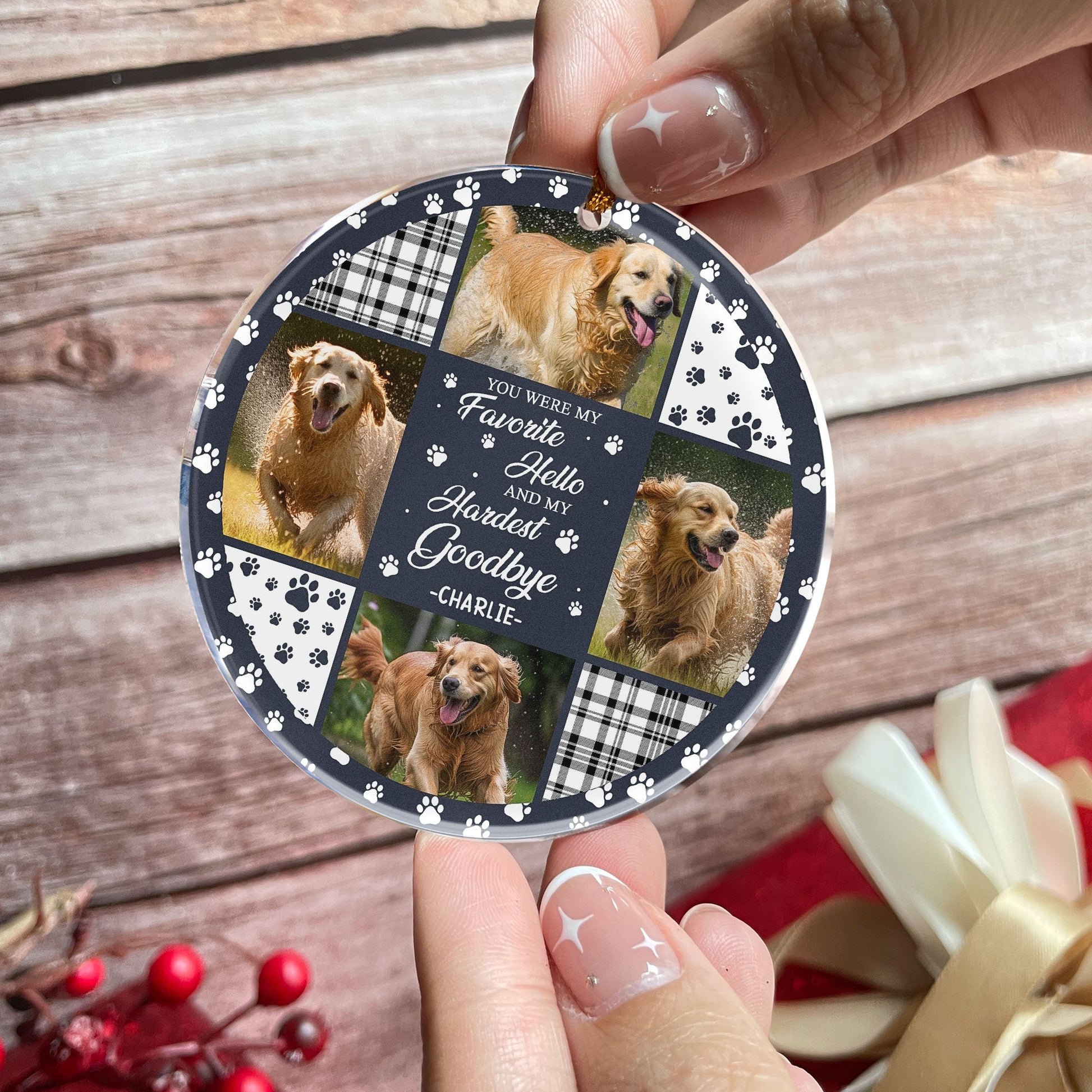 The Personalized Acrylic Photo Ornament is a heartfelt memorial and remembrance gift for pet lovers and owners. Customize it with their pet's name, photo, or a special message. Made of durable acrylic, it preserves their pet's memory for years to come. Its elegant design complements any decor, serving as a beautiful reminder of their cherished companion. This ornament brings comfort during difficult times and is a meaningful way to honor their beloved pet's life and the love they shared.