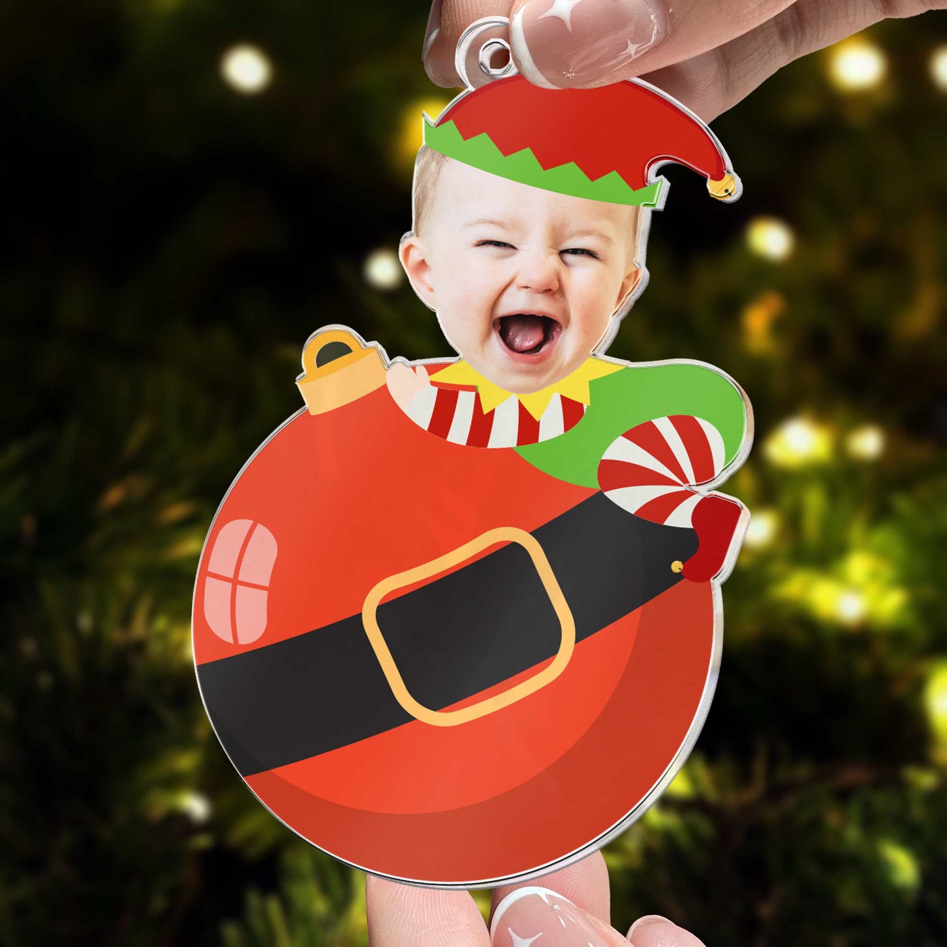 Cute Baby Elf Christmas - Personalized Babys Photo First Christmas Ornament