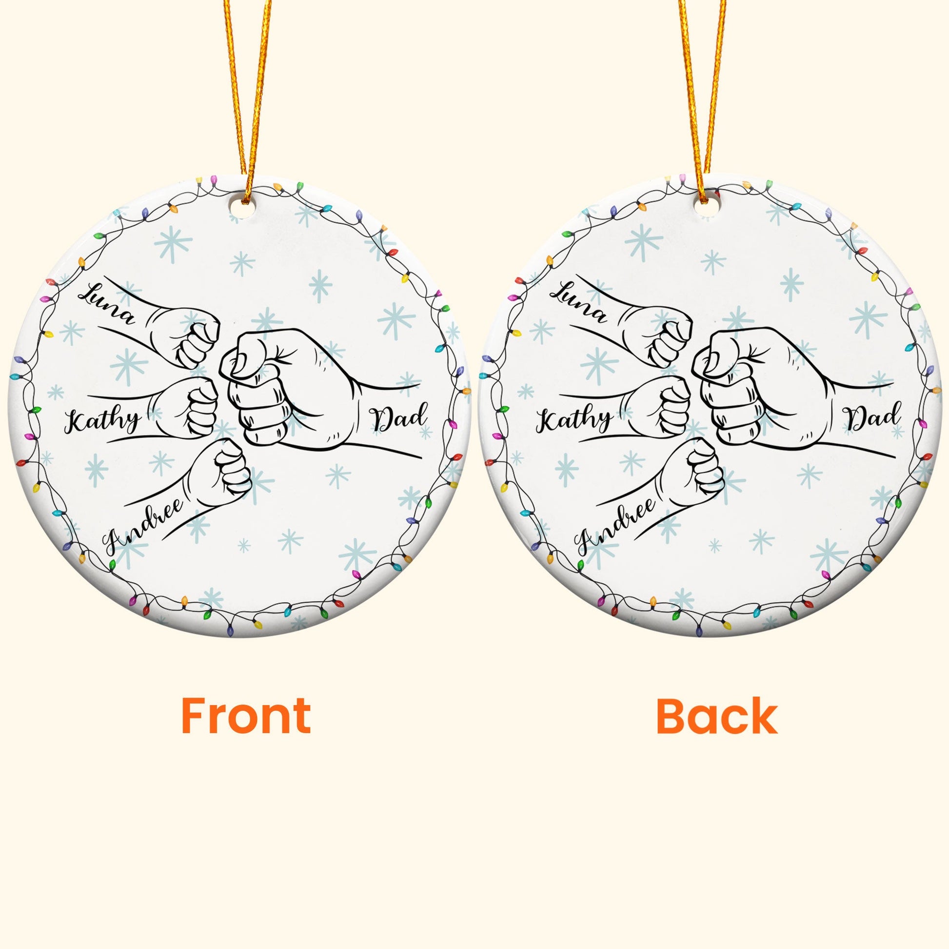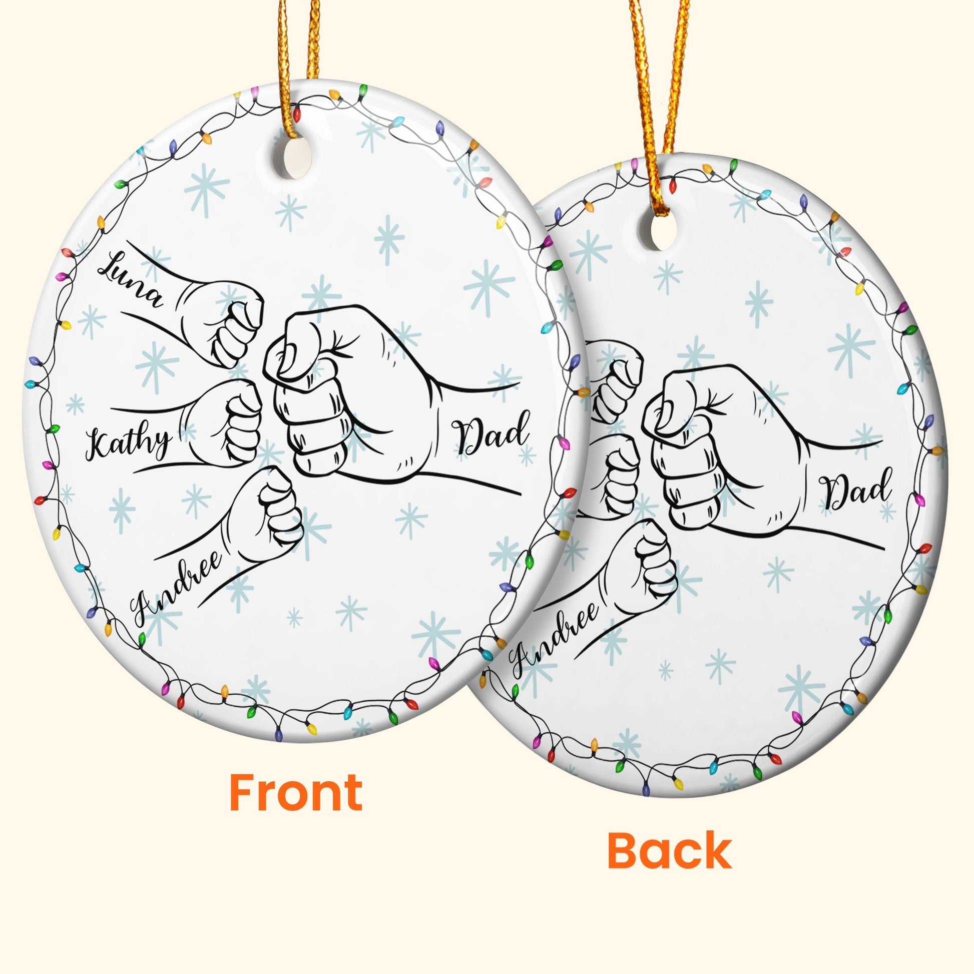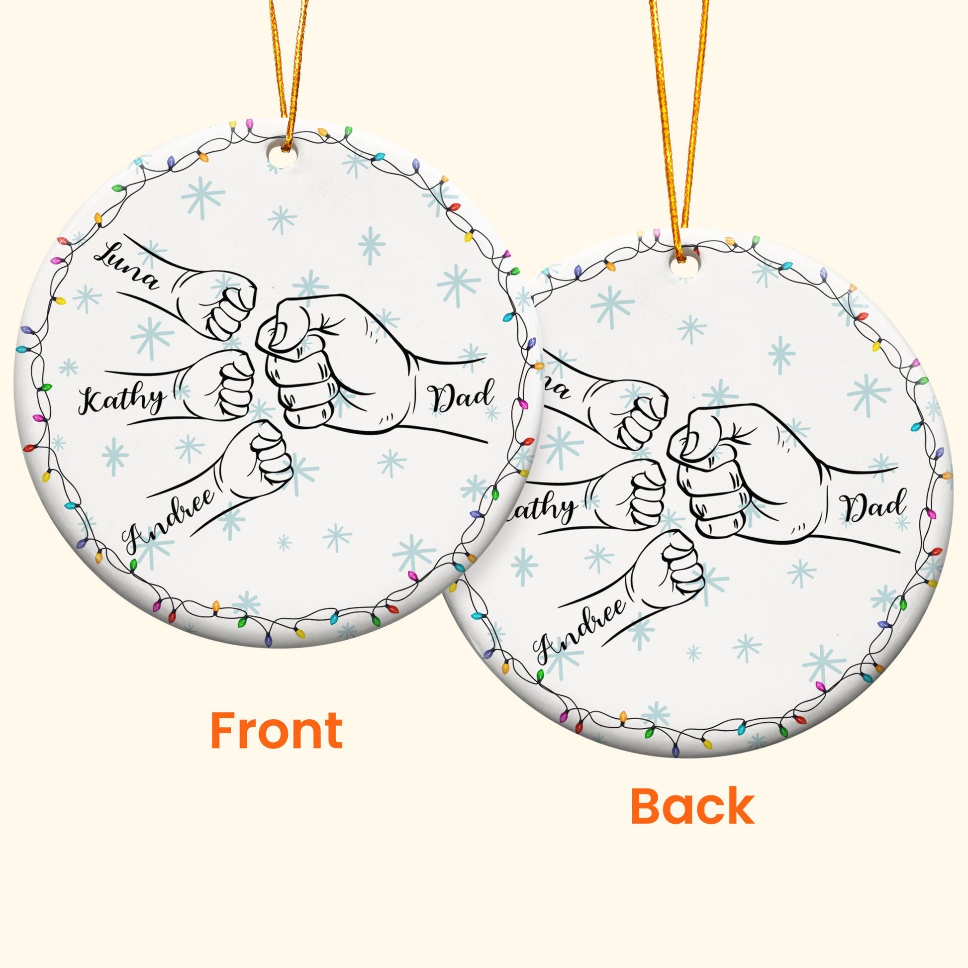Dad Hand Bump Kid Name Christmas Light - Personalized Ceramic Ornament