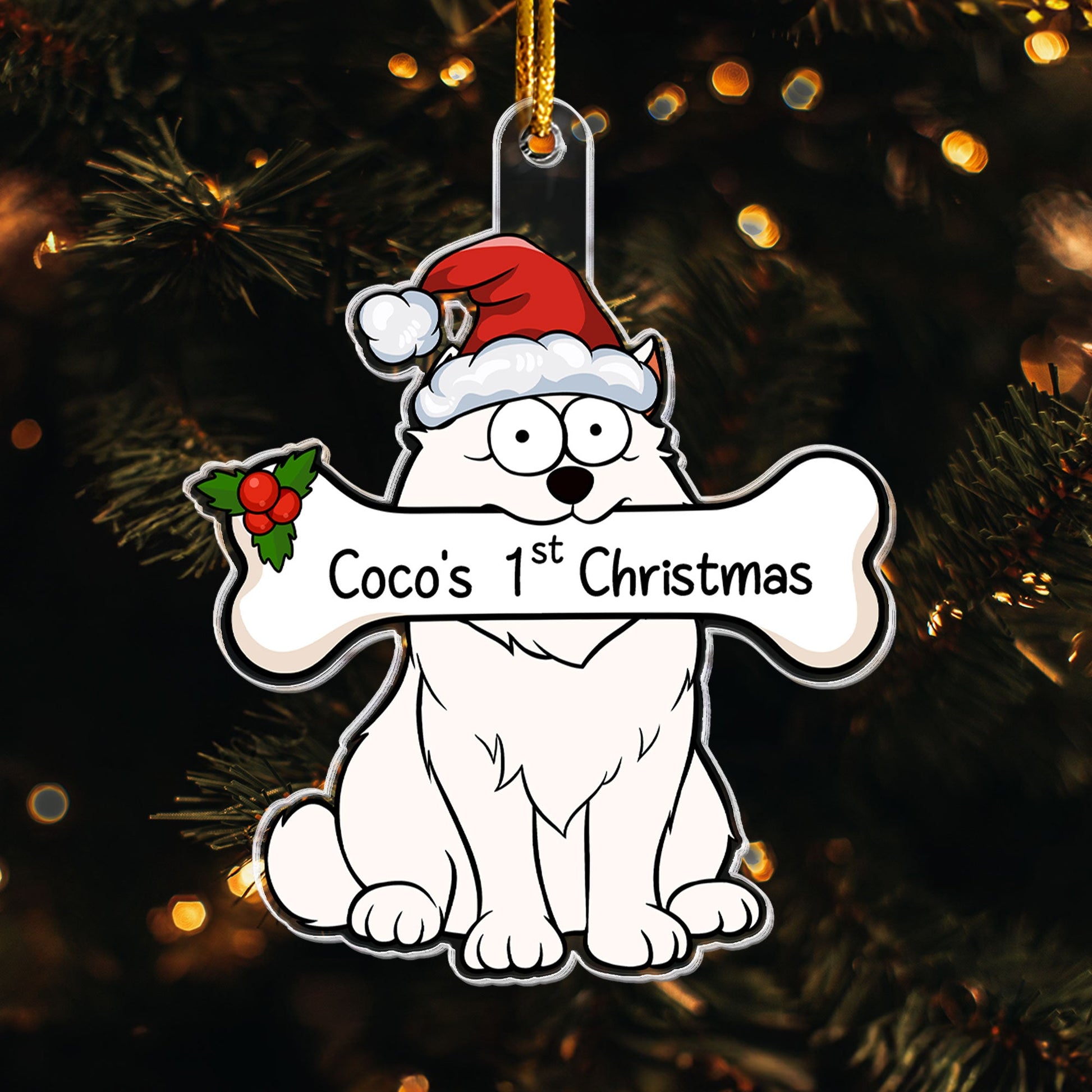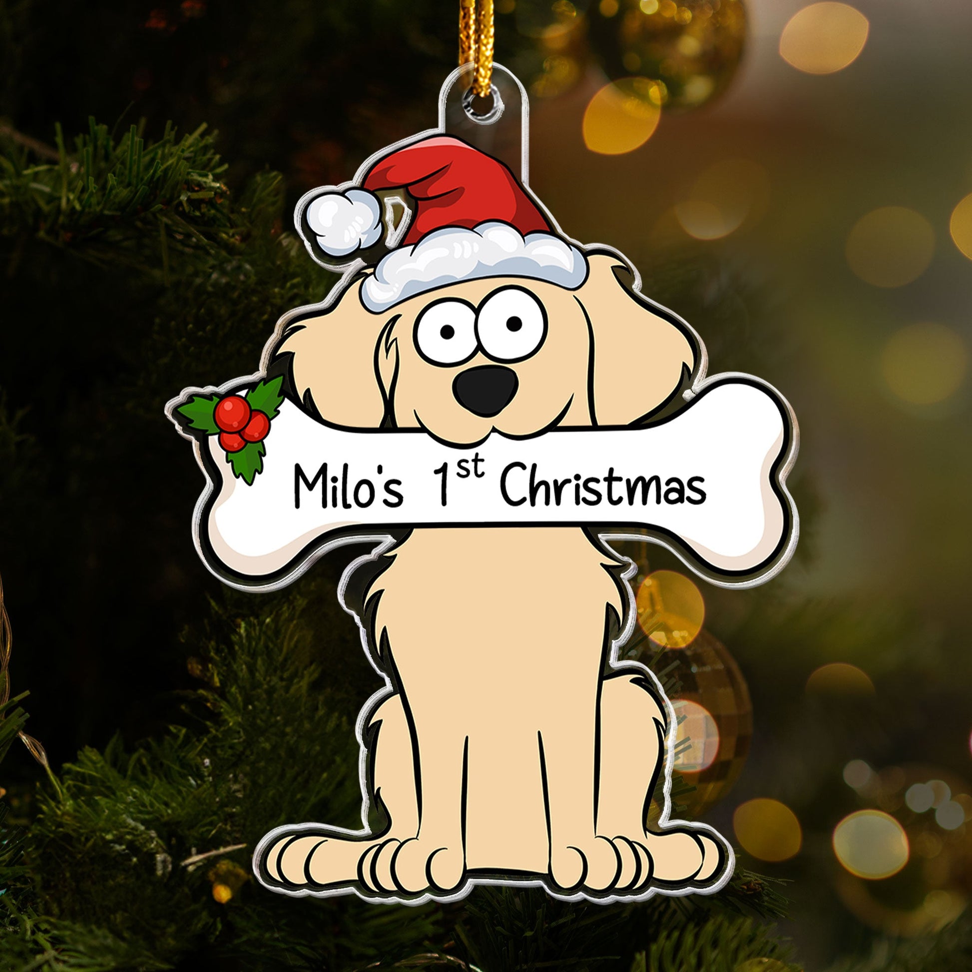 Dog Holding A Bone 1St Christmas - Personalized Acrylic Ornament