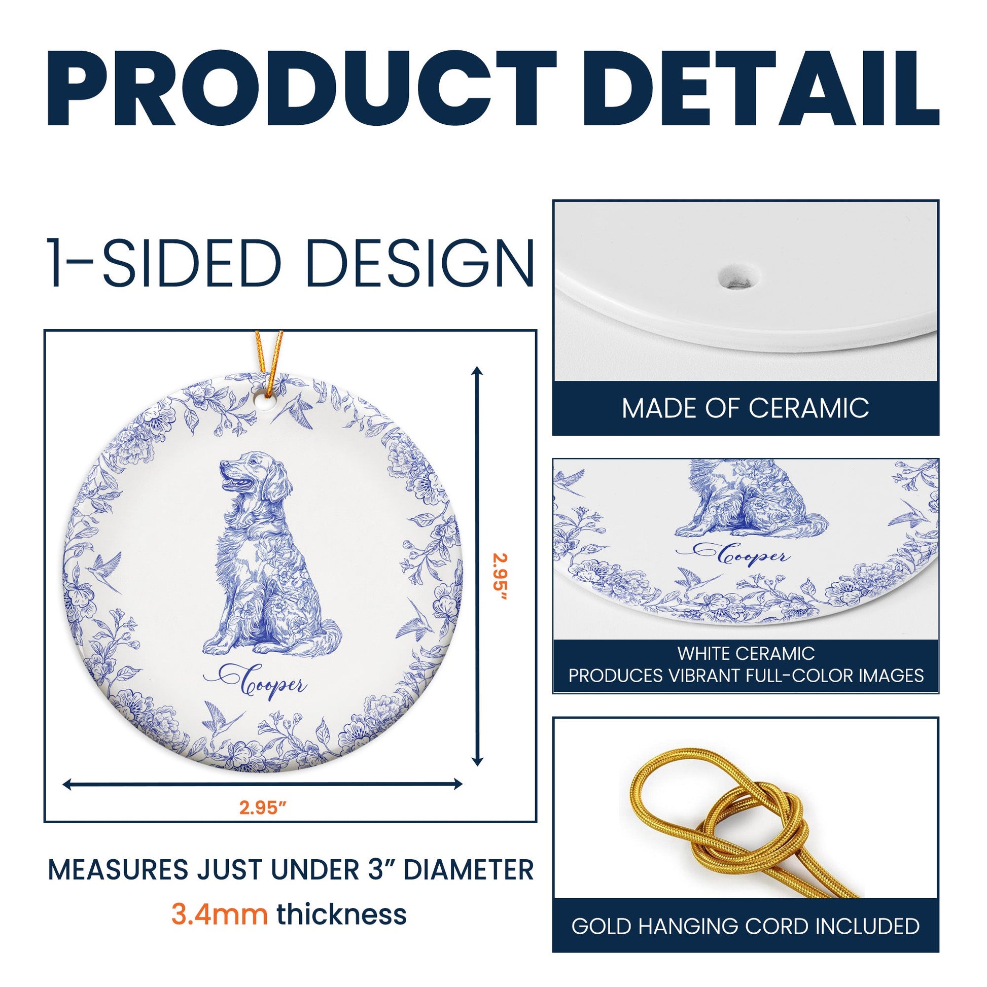 Cherish your bond with your furry friends with our Dog Lover Toile De Jouy Vintage French Style Gift. It's more than just a Ceramic Ornament; it's a testament to your love for your pet. Perfect for dog enthusiasts, this ornament allows you to celebrate your love for dogs with an intricate design that accelerates bonding and resemblance. It is ideal for any event, be it pet anniversary, birthday, or Christmas. It's also an excellent gift for friends or family who share the same affection towards dogs.