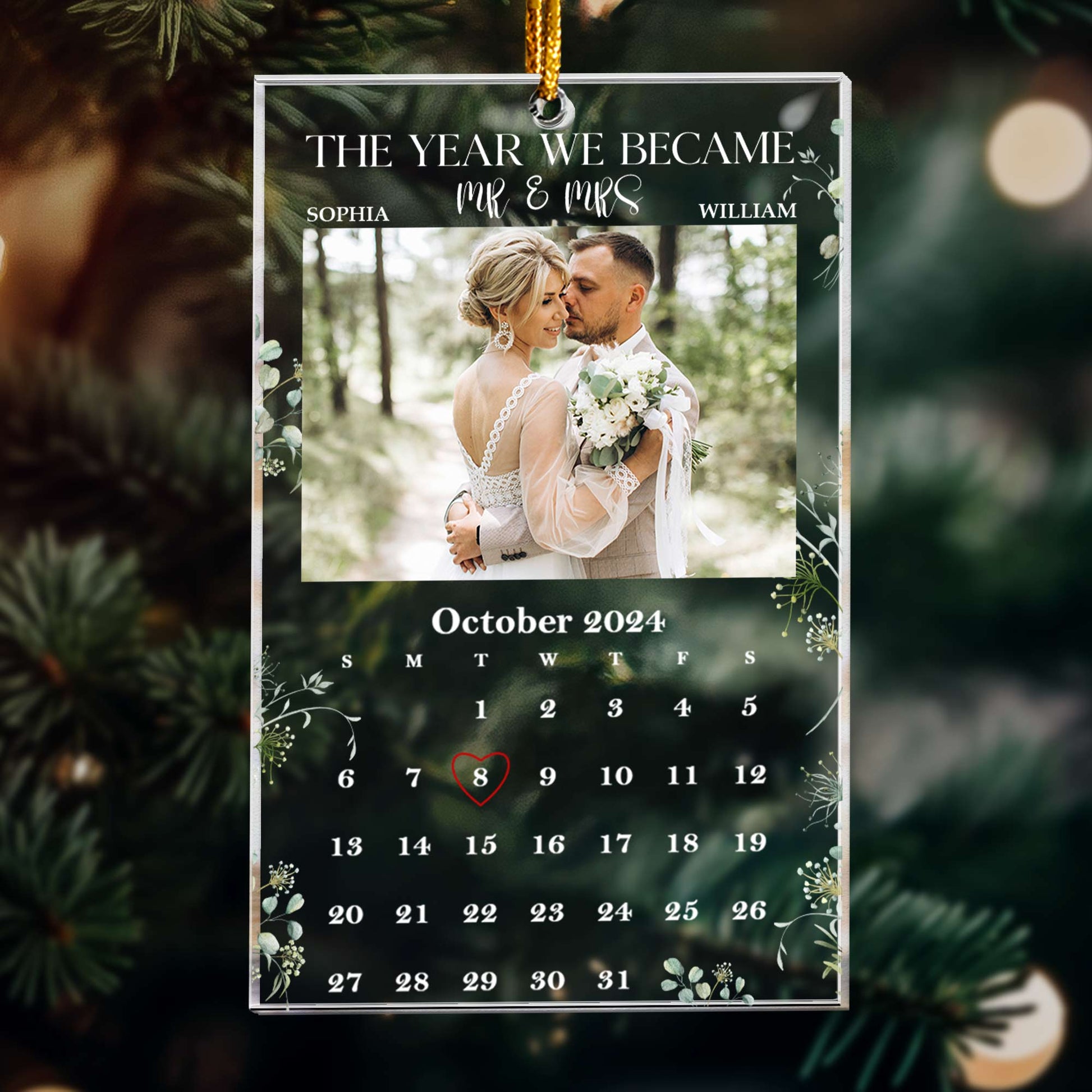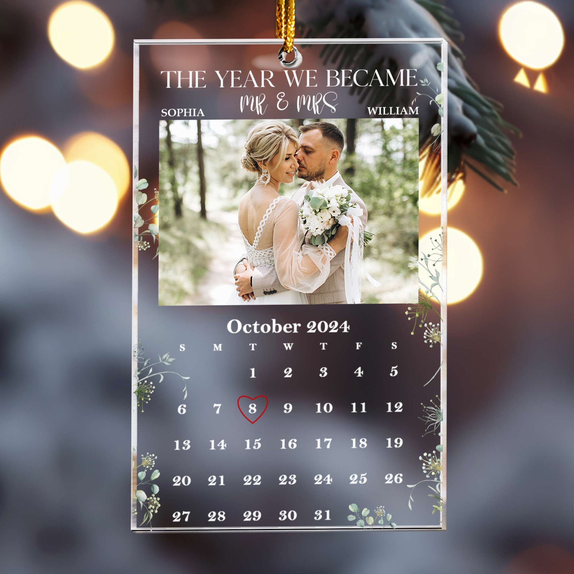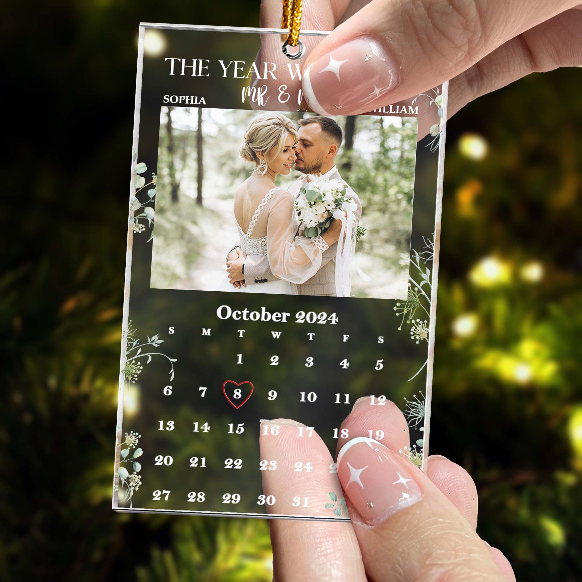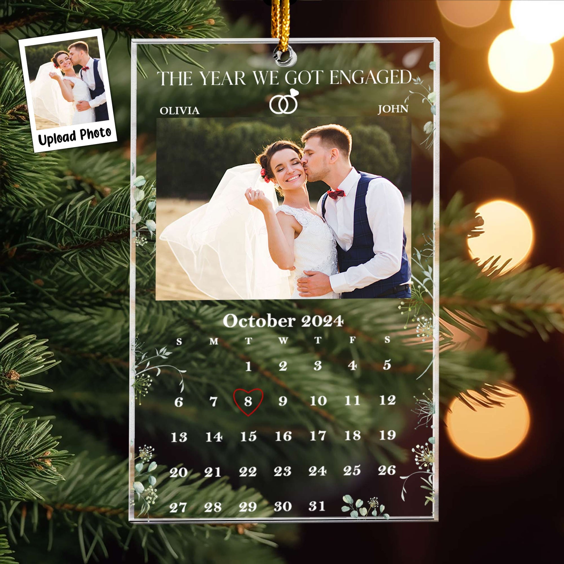 Engaged, Married Couple Custom Calendar - Personalized Acrylic Photo Ornament