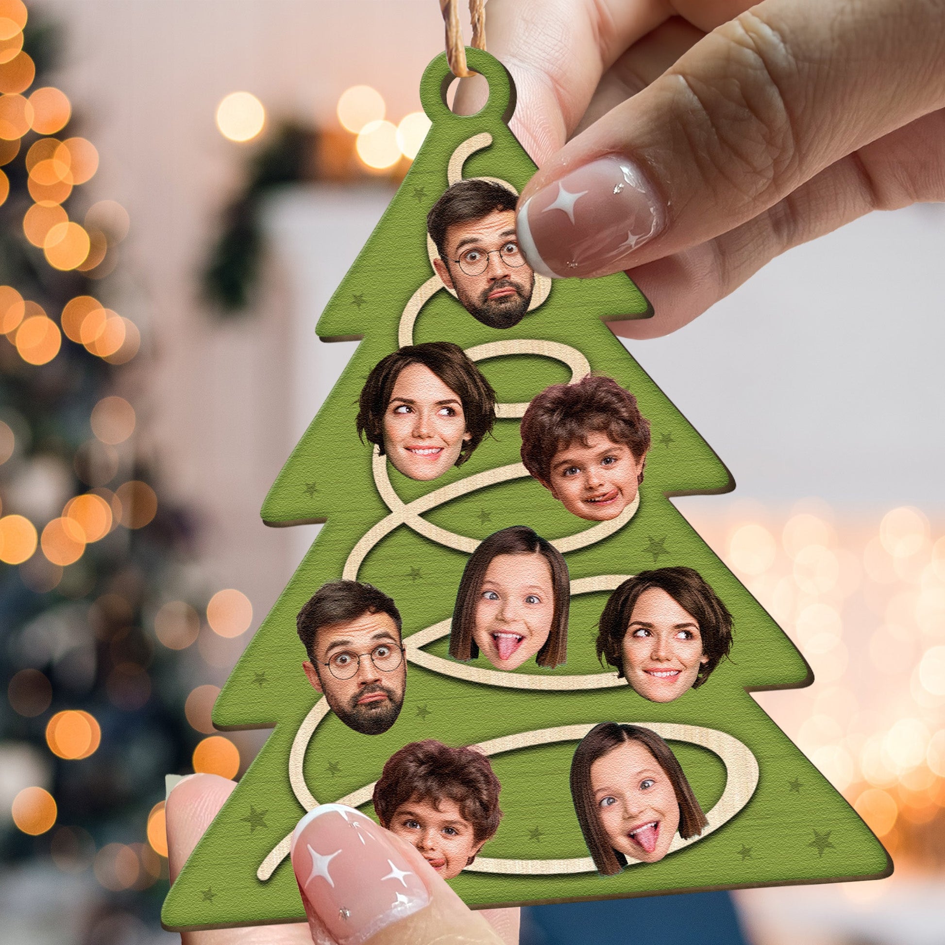 The "Family Christmas Tree With Star Ornament" Personalized Wooden Photo Ornament is a heartwarming way to celebrate family during the holidays. With the option to add a custom family name or family faces, this ornament makes the perfect Christmas gift for family, friends, and grandparents. Its thoughtful design, featuring a Christmas tree with a star on top, adds a festive charm to any tree while symbolizing love and unity. A truly personal keepsake, this ornament helps brighten up the Christmas tree and celebrate the special moments shared together.