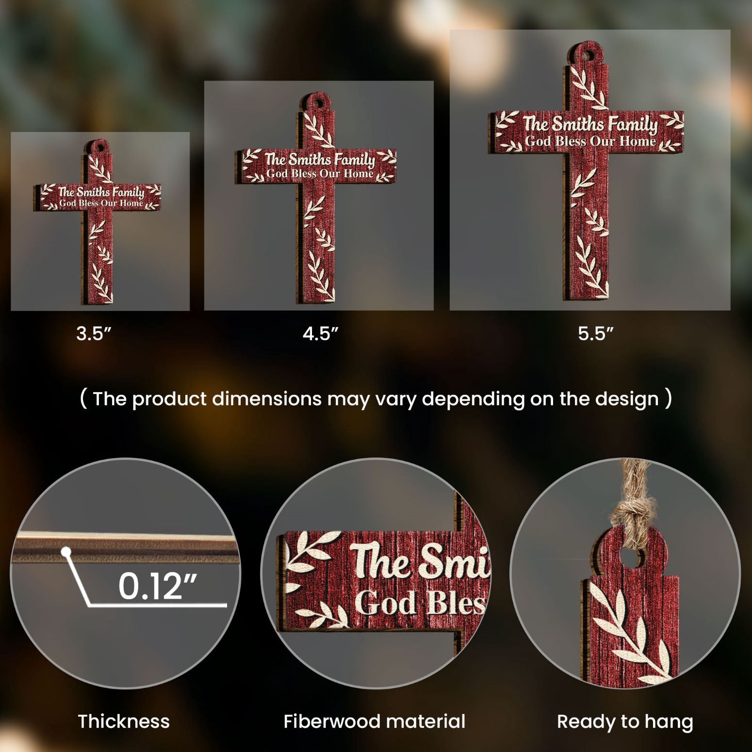 Introducing our Family Cross, God Bless Our Home - Personalized Wooden Ornament, a custom shaped wooden adornment specially designed to bring warmth and spirituality to your household. Crafted with the utmost care, it renews the sanctity of home and ensures protective blessings for your loved ones. This ornament is not just for Christmas, but it transcends all occasions, from birthdays to anniversaries or any special event that calls for a thoughtful gift. It truly is a perfect symbol of faith for Christian parents and matches wonderfully with the message of divine security and trust in His divine plan it carries.