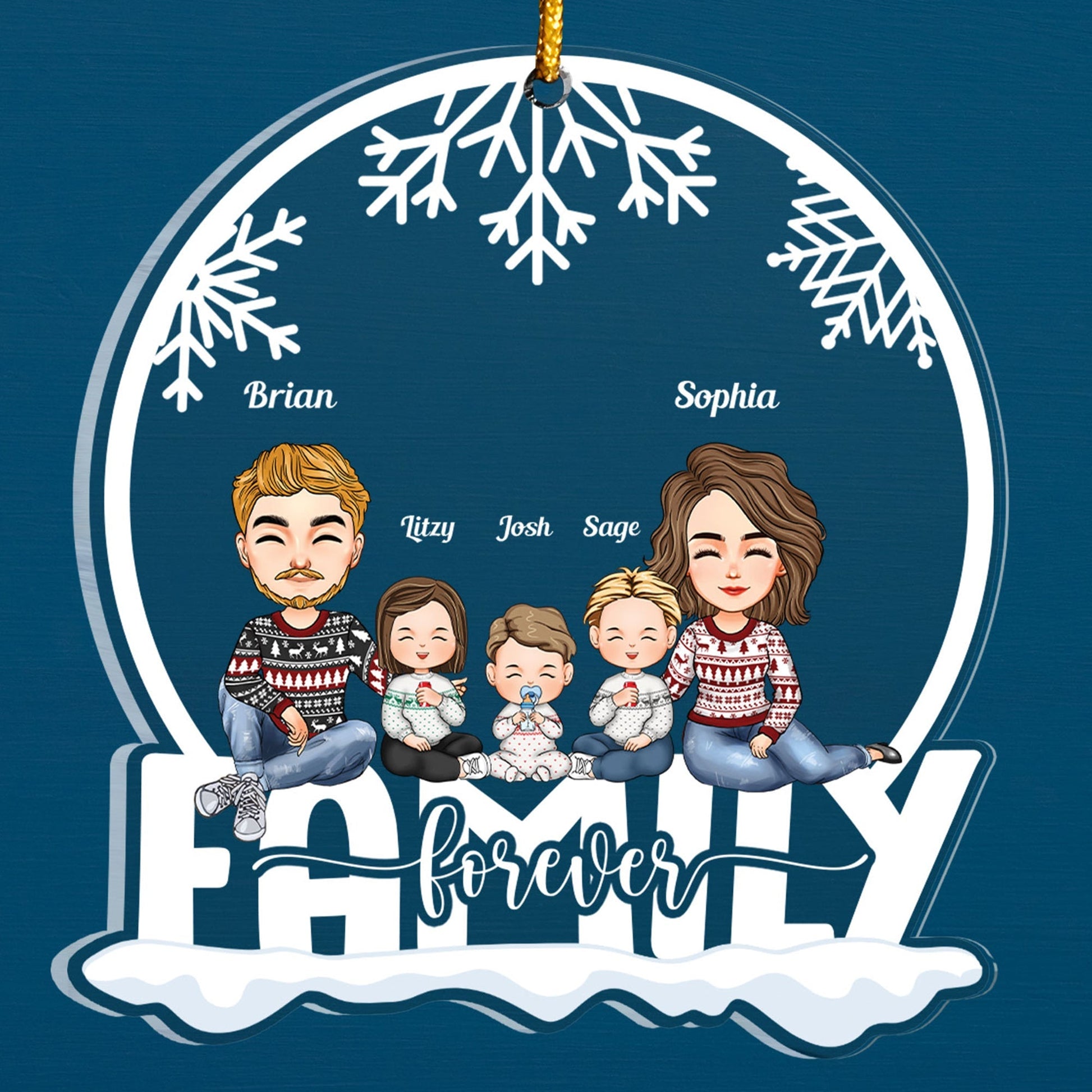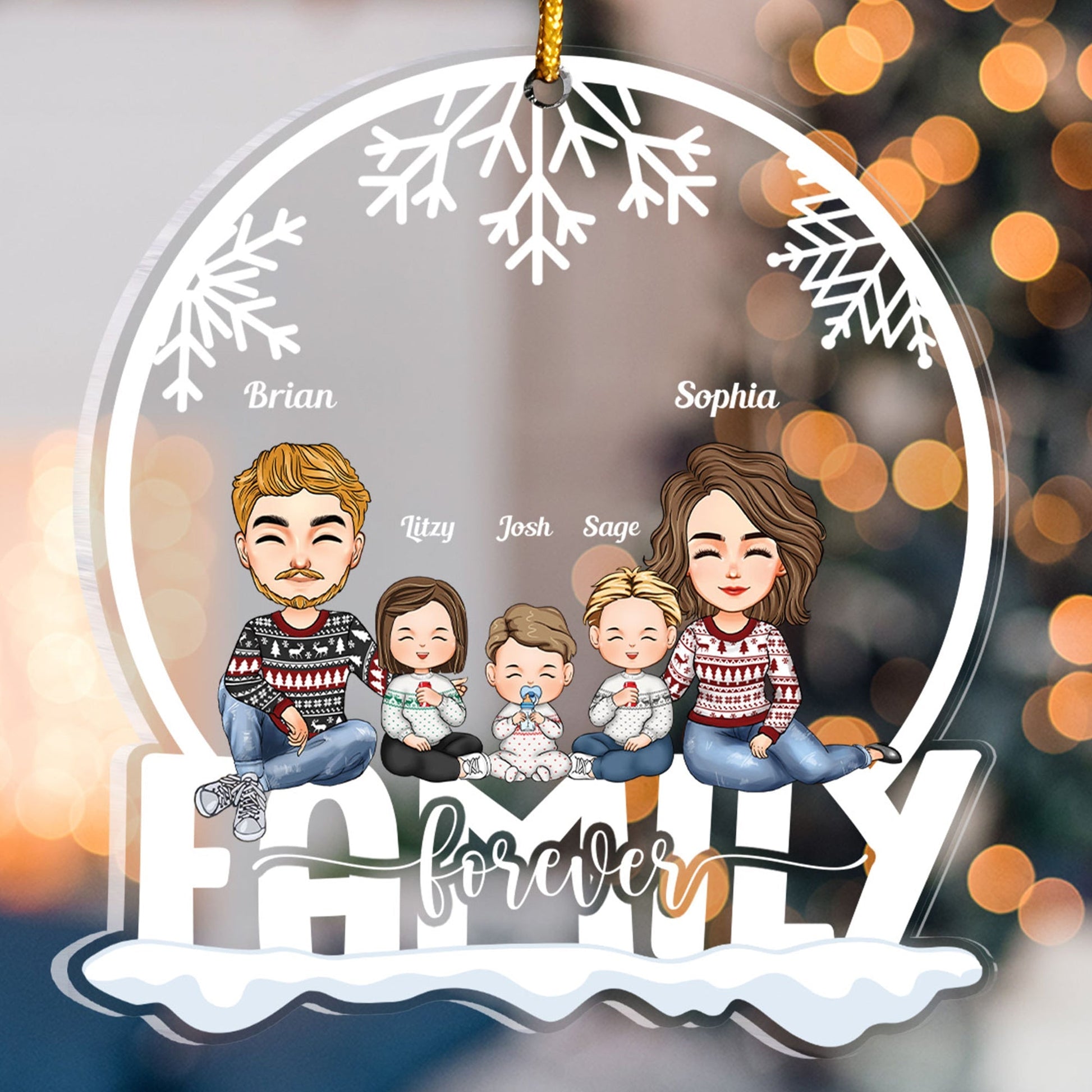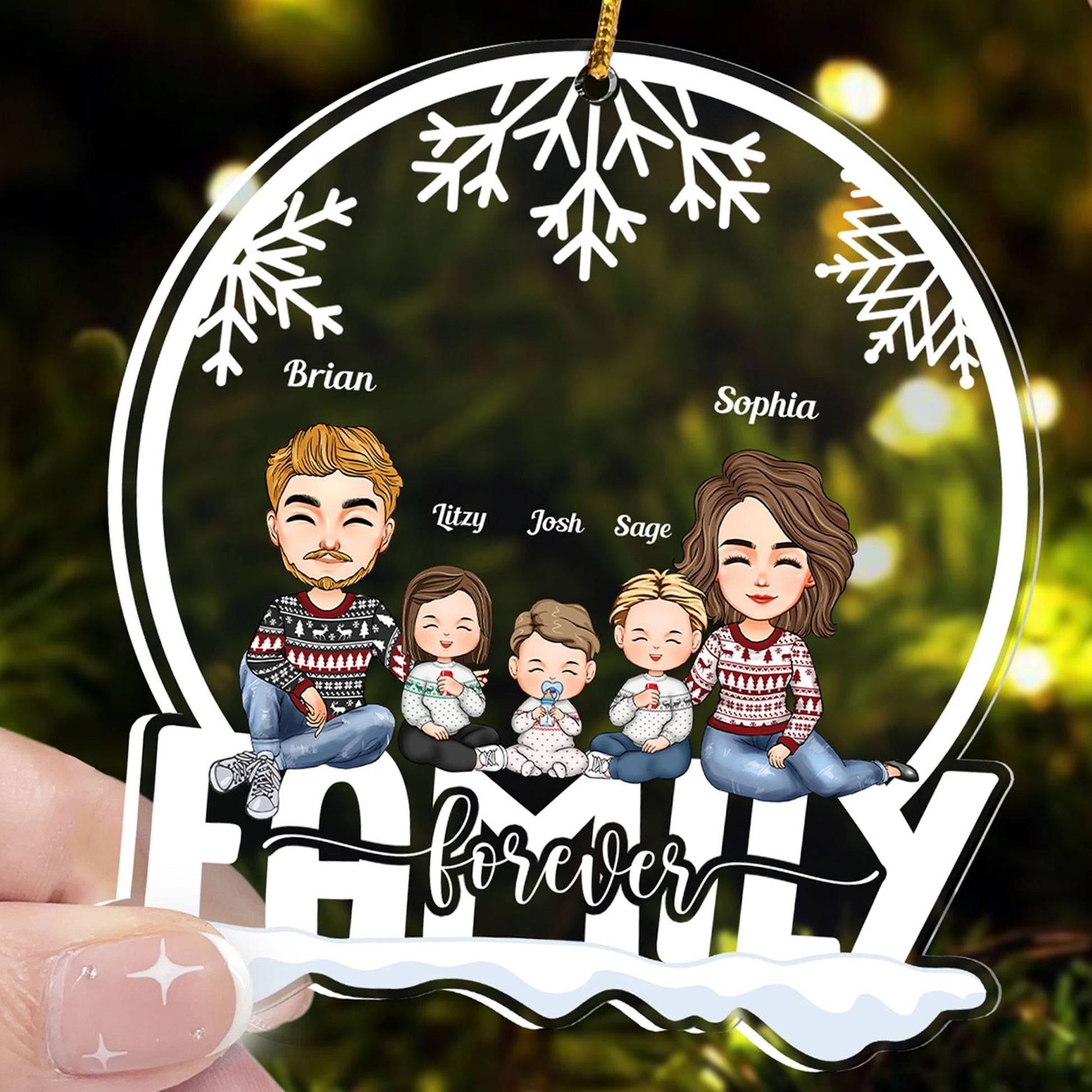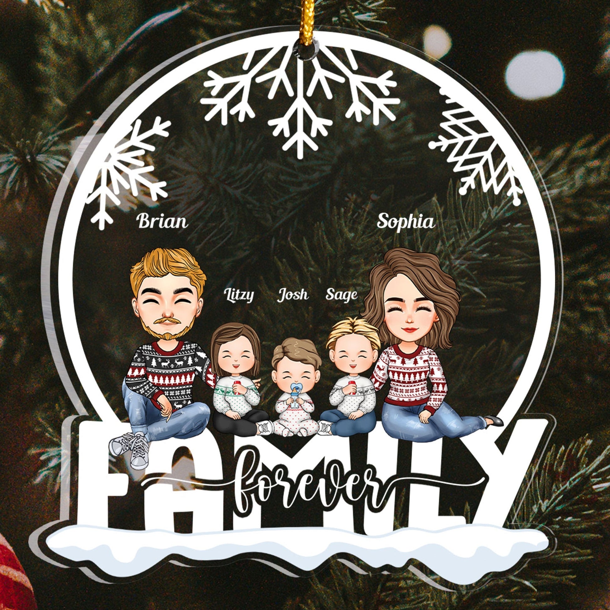 Family Forever - Cartoon Family - Personalized Snow Globe Shaped Acrylic Ornament