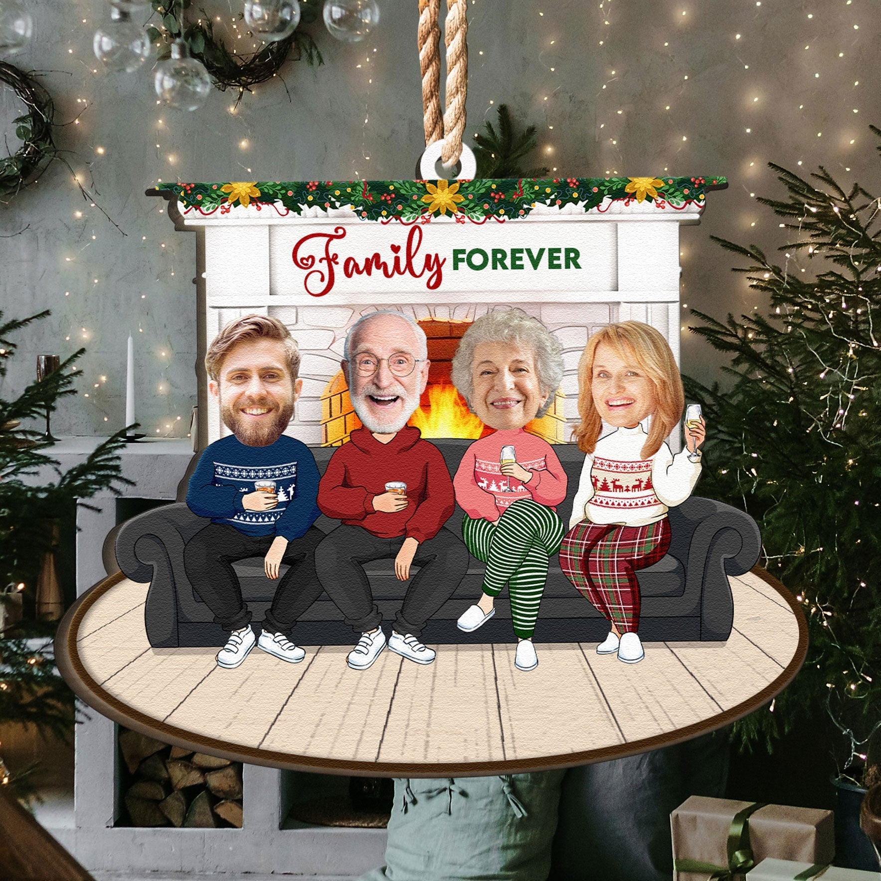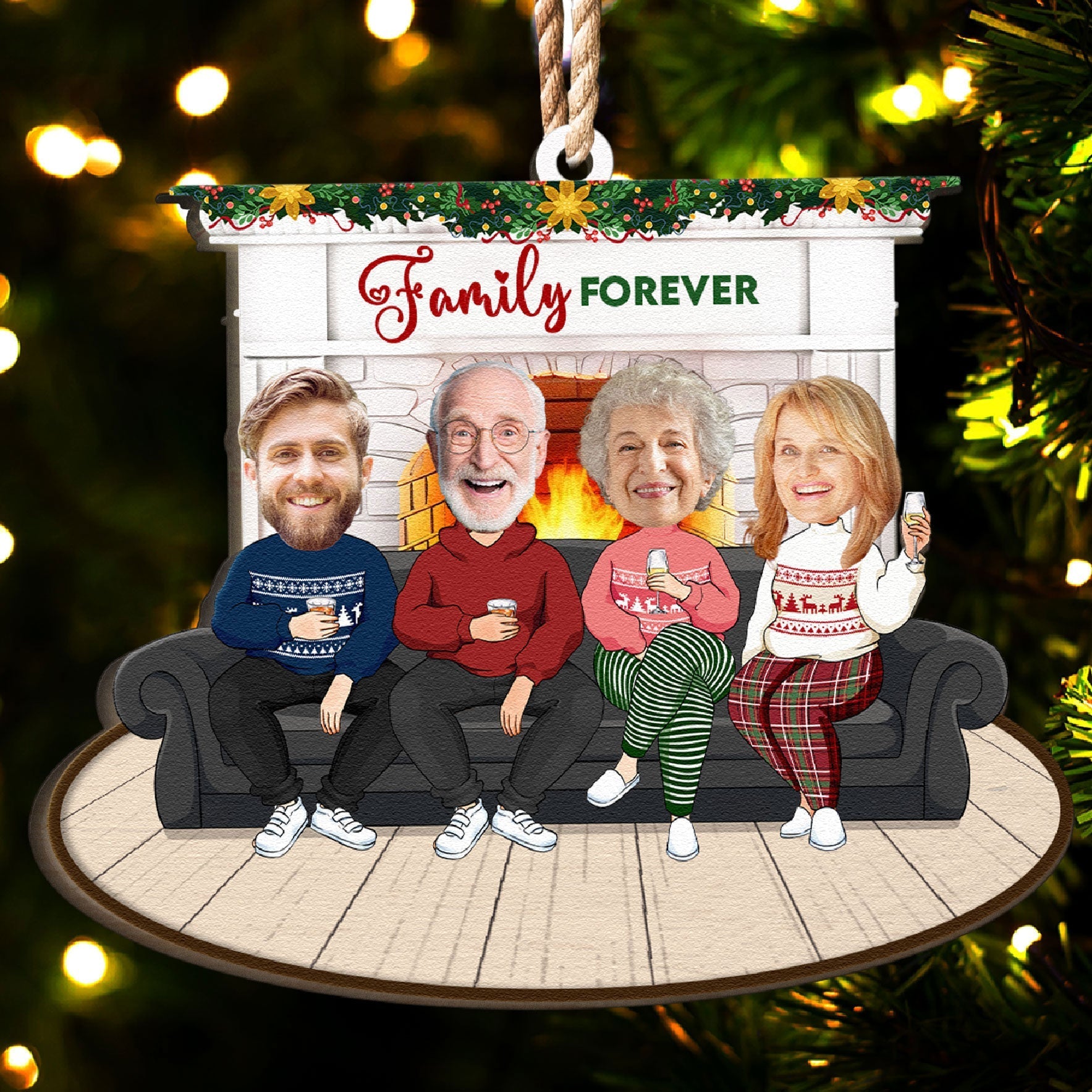 The ornament features the name and the characters of your family members. You can choose from different styles, colors, and sizes to make a cartoon-like representation of your family. You can also customize the ornament with their photo. This is a way of showing your family how much you love them and how special they are.