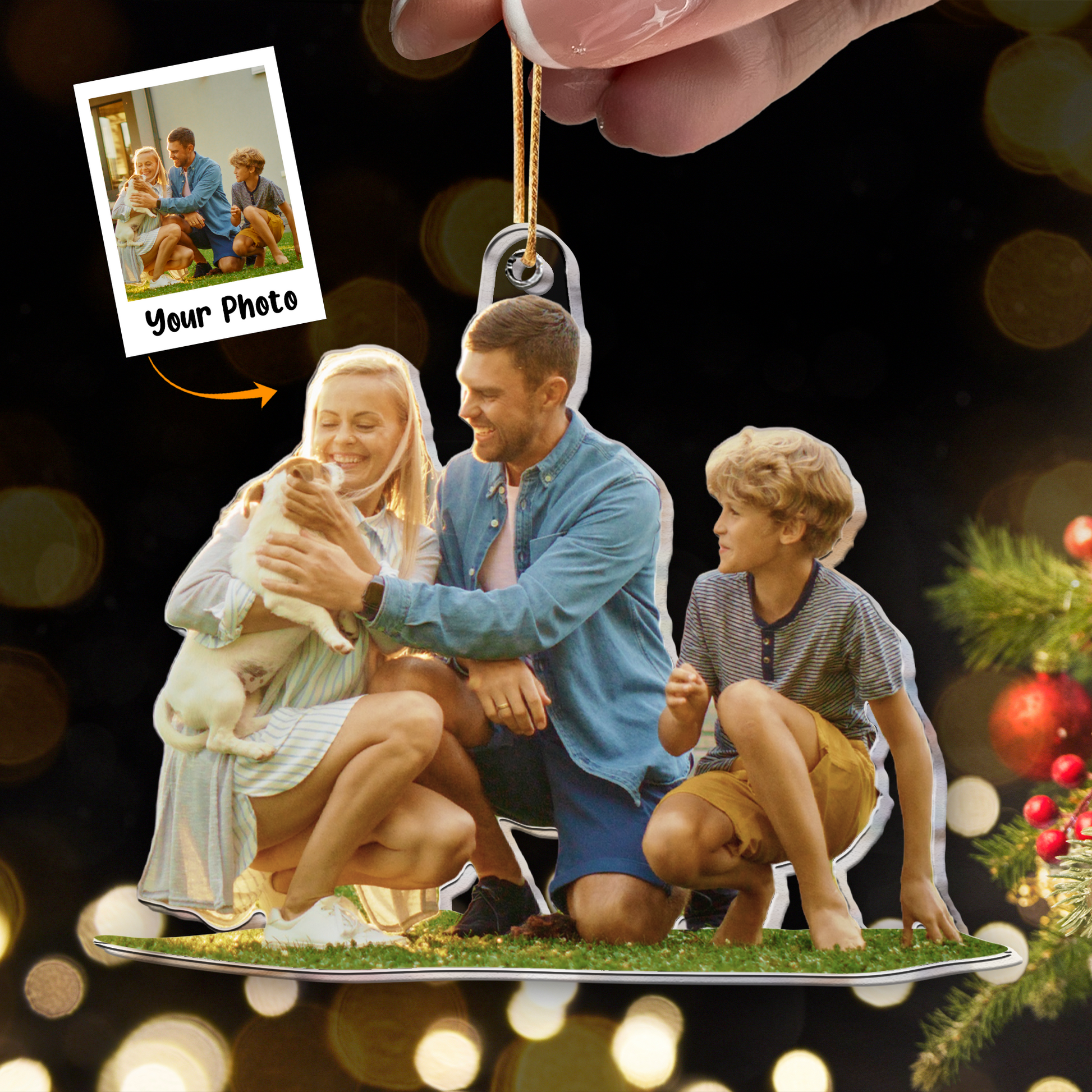 Warm hearts and celebrate togetherness with this custom acrylic photo ornament depicting your close-knit family. The perfect sentimental Christmas gift idea for parents.