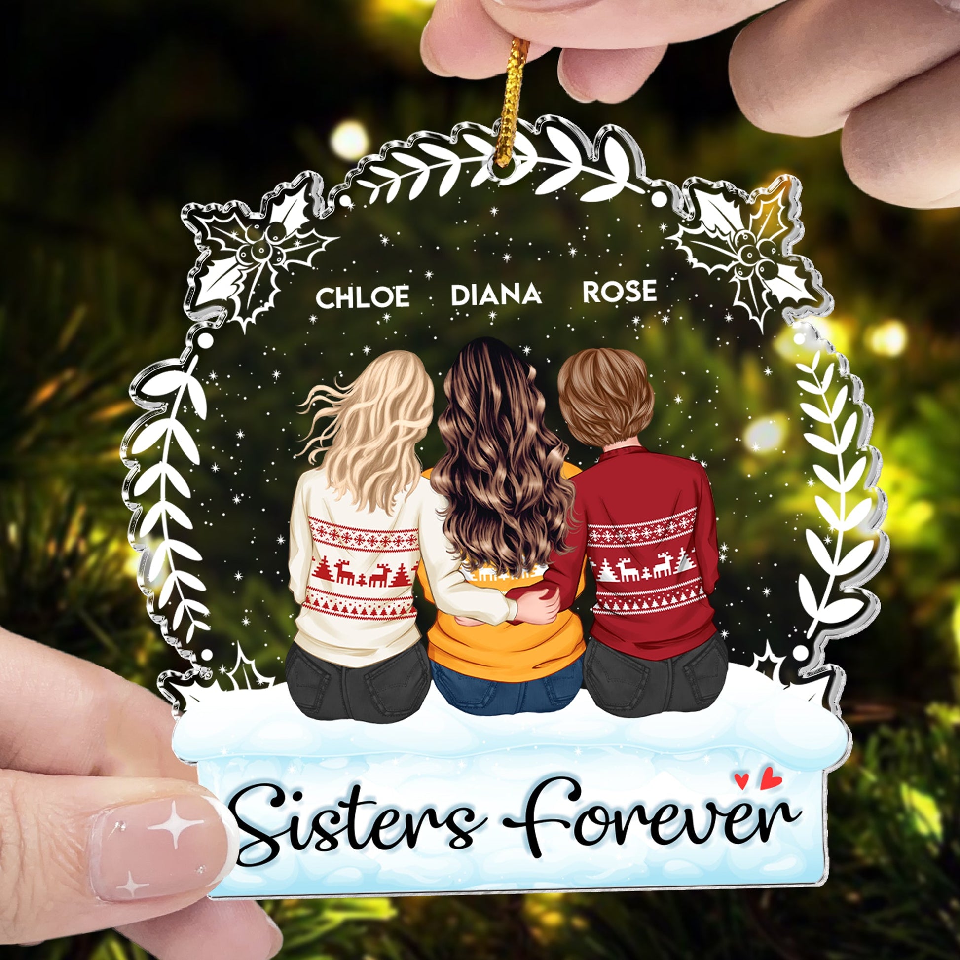 Celebrate the special bond of sibling love with our Personalized Custom Shaped Acrylic Ornament, beautifully inscribed with the heartfelt message. This unique ornament allows you to customize characters to represent you and your siblings, making it a cherished keepsake for family members. Perfect for sisters and brothers alike, it adds a personal touch to your holiday decor.