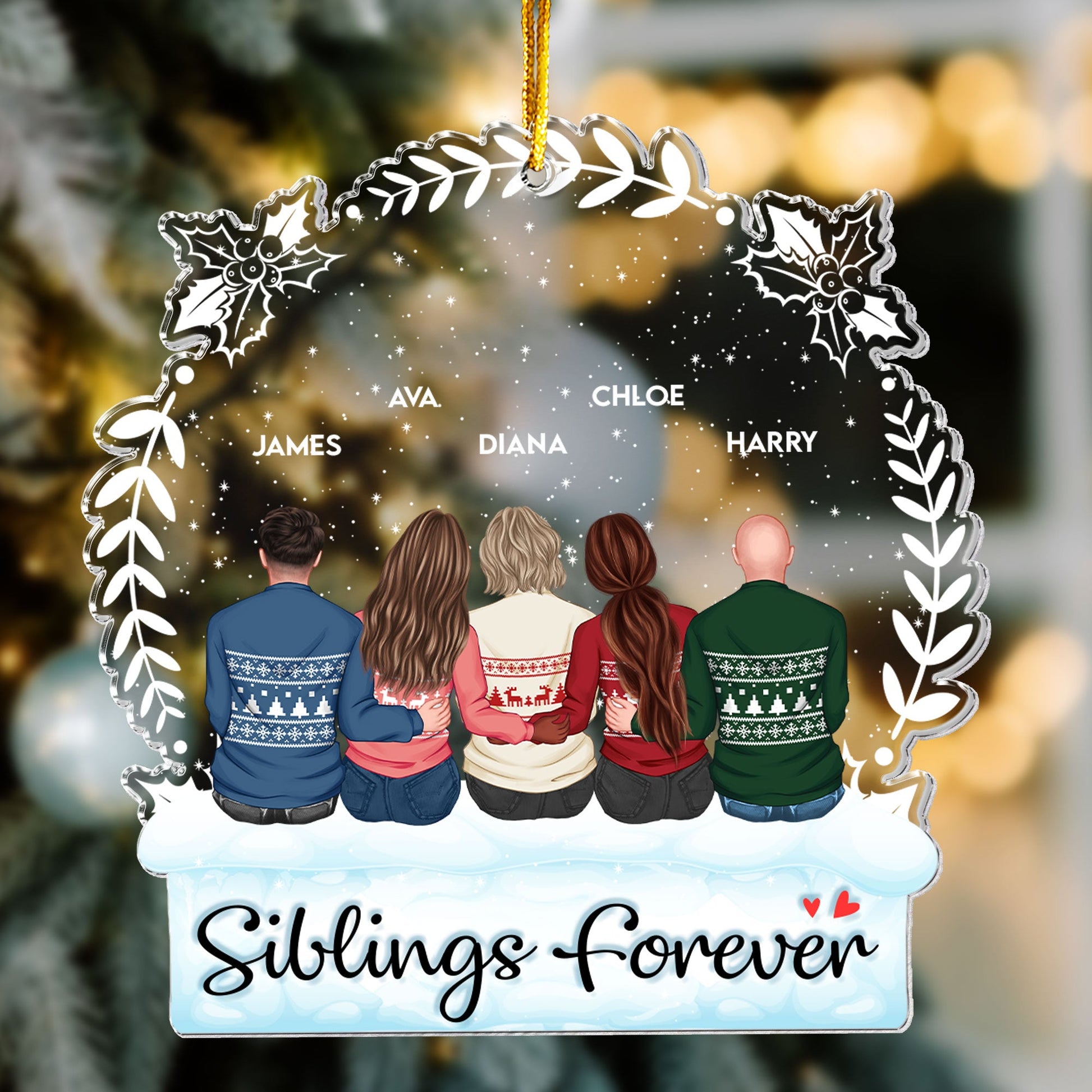 Hang it on your Christmas tree or give it as a thoughtful gift that honors the special connection shared between siblings. Ideal as a Christmas or winter gift, this heartwarming ornament will bring joy and warmth to any home, reminding everyone of the love and laughter shared throughout the years. Celebrate your family's unique story with this beautiful hanging decoration that will be treasured for years to come.