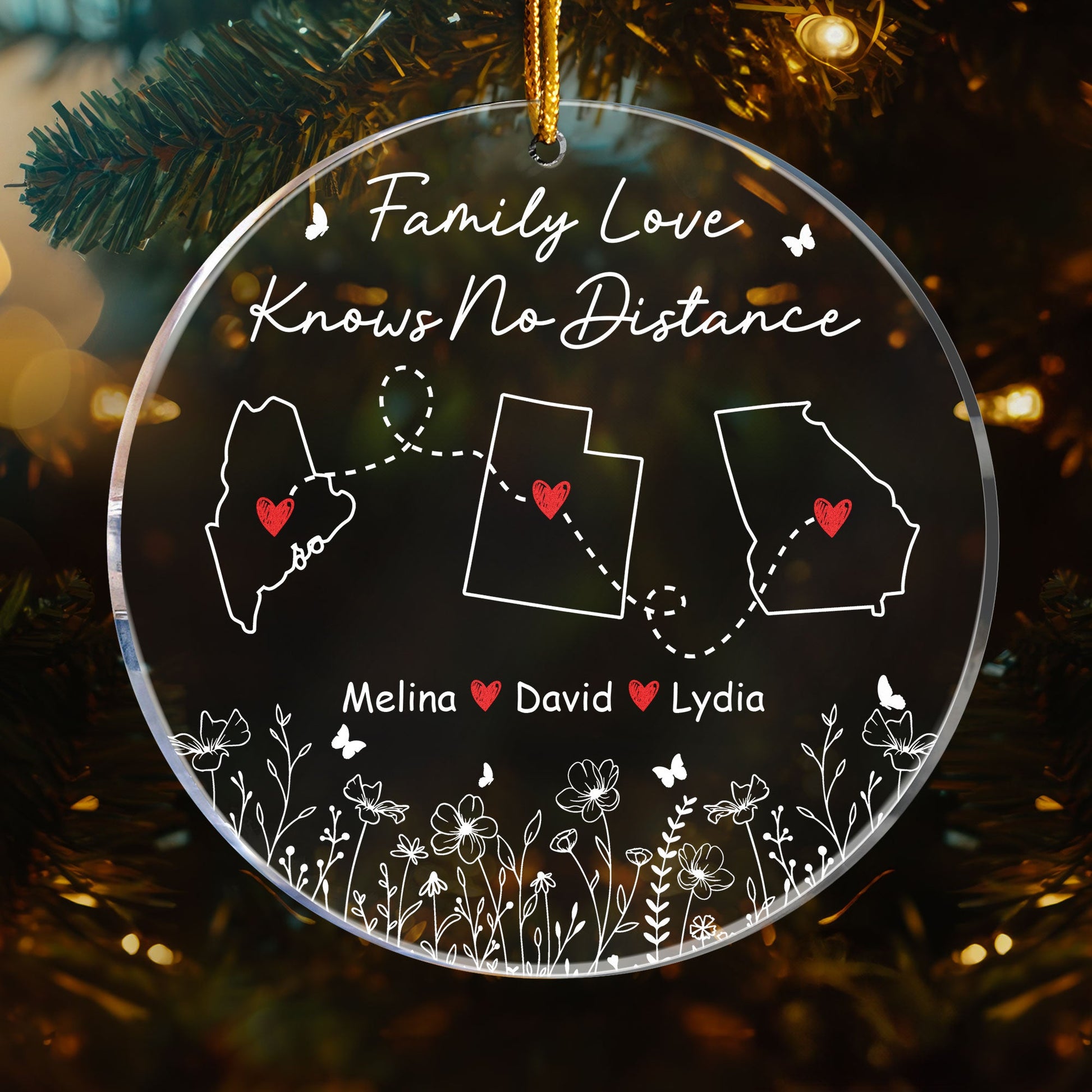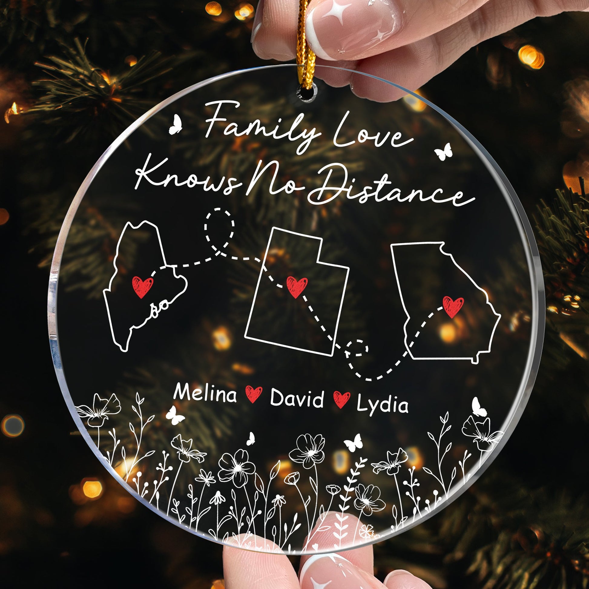 Family Love Knows No Distance - Personalized Acrylic Ornament