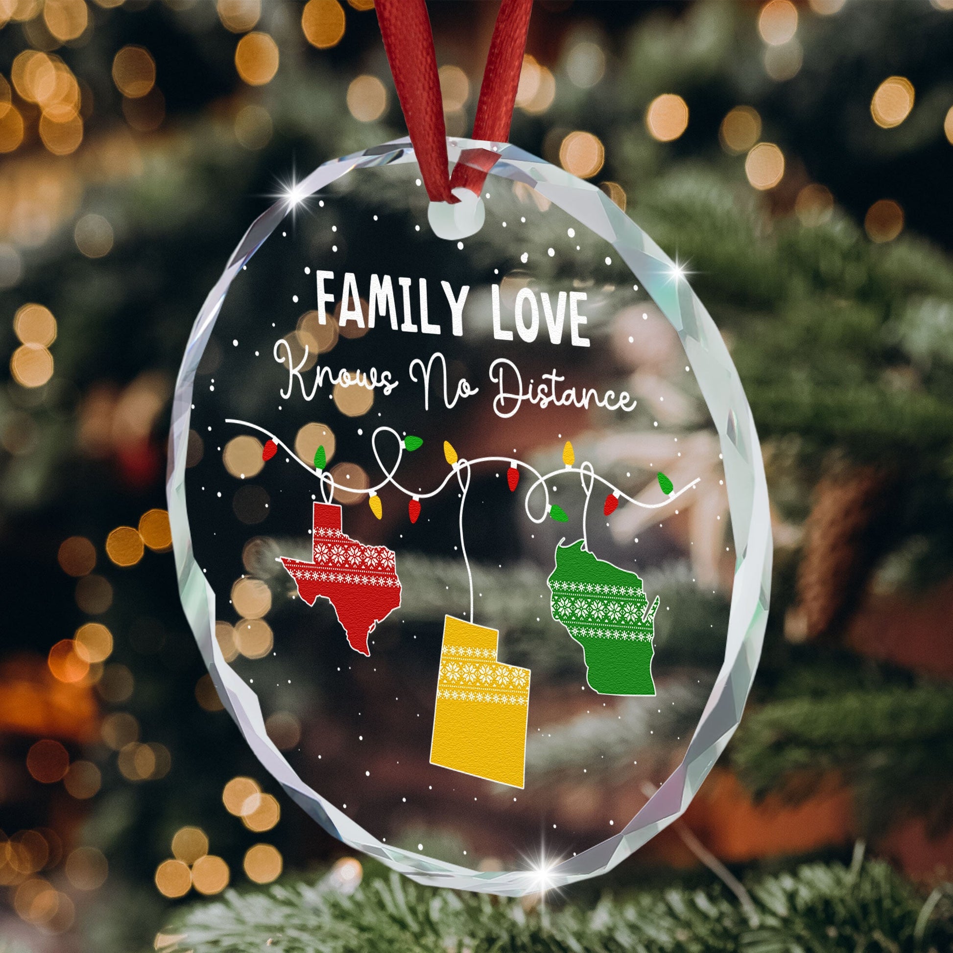 Add a heartfelt touch to your gifts with our Family Love Knows No Distance Personalized Glass Ornament. This precious memento beautifully encapsulates the bond that persists in a family, no matter how great the geographic distance is between its members. Perfect for birthdays, Christmas, anniversaries, or any occasion, this ornament is a wonderful expression of the love that remains unbroken across miles.