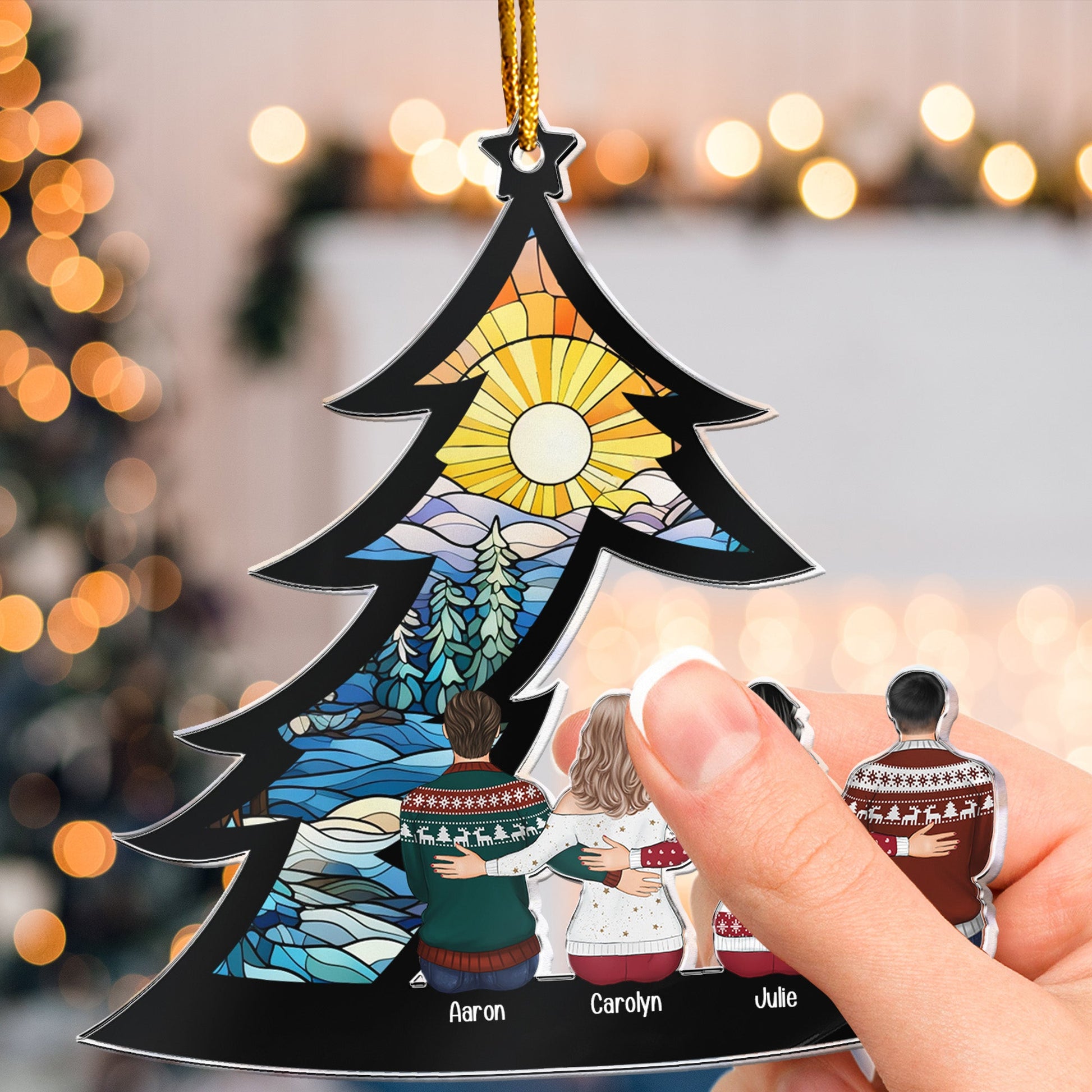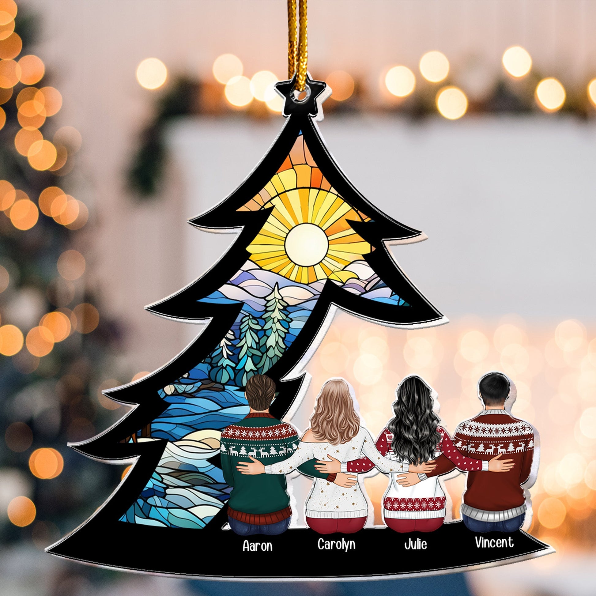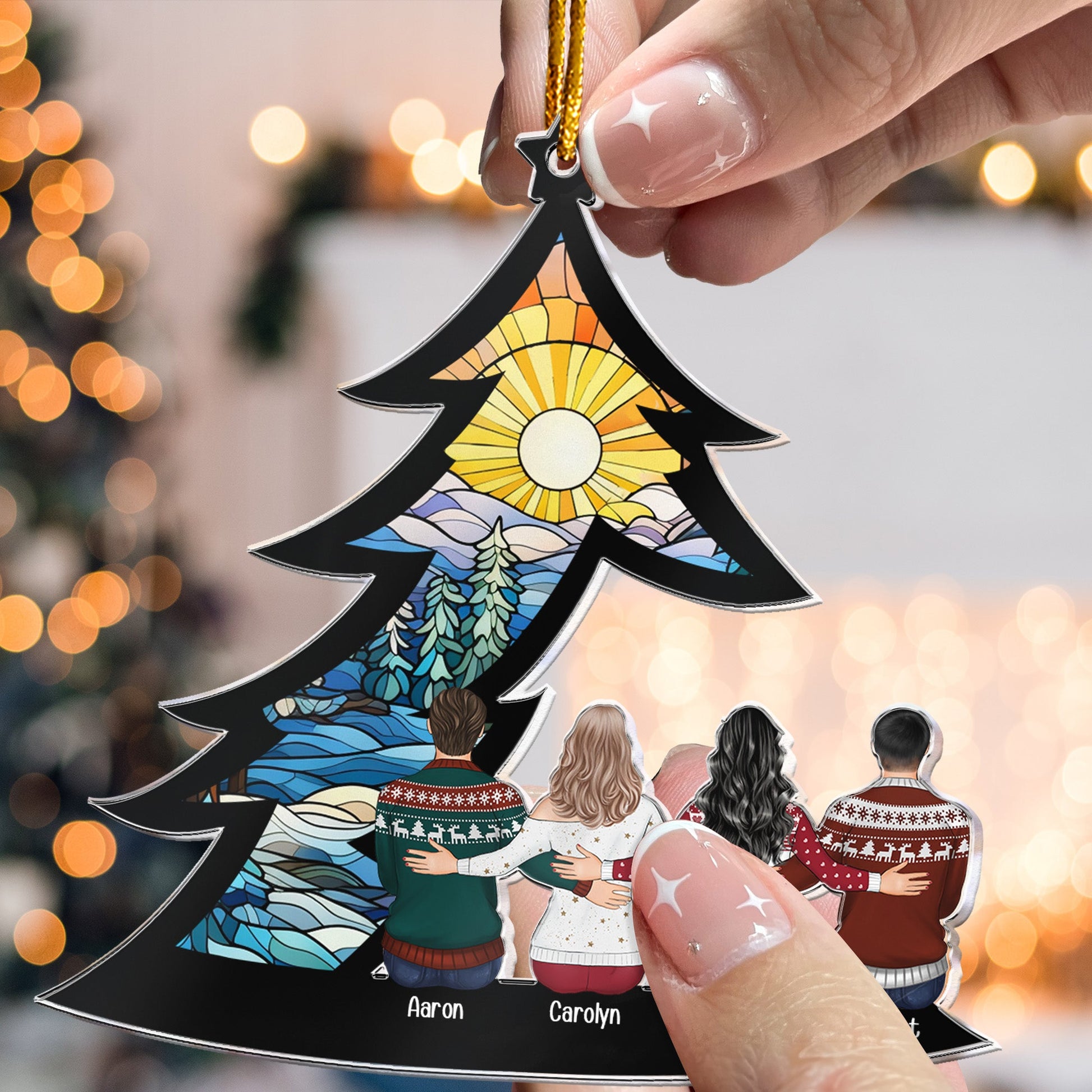 Family, Siblings, Friends Sitting Under Christmas Tree - Personalized Acrylic Ornament