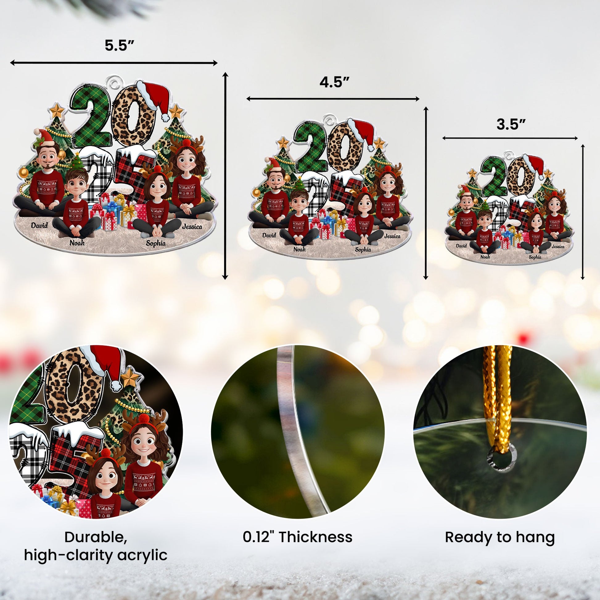 Show your family just how much they mean to you with our Family Sitting 2025 Cartoon Version - Personalized Acrylic Ornament. This custom-shaped acrylic ornament not only beautifies your space but also fosters family bond and resemblance. Perfect for families who love to spend time together, this ornament is an unique representation of togetherness and love. It's an ideal gift for any occasion be it birthdays, anniversaries, and especially for Christmas holiday.