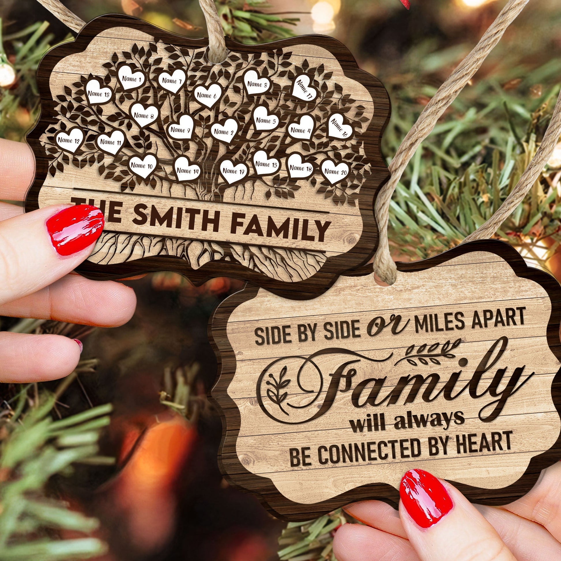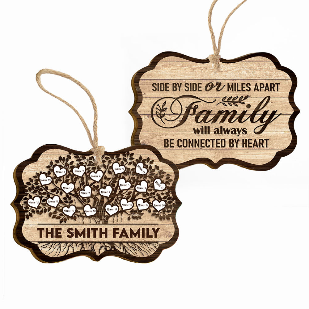 Family Will Always Be Connected By Heart - Personalized Two-Sided Wooden Ornament - Christmas Gift For Fathers, Mothers, Daughters & Sons