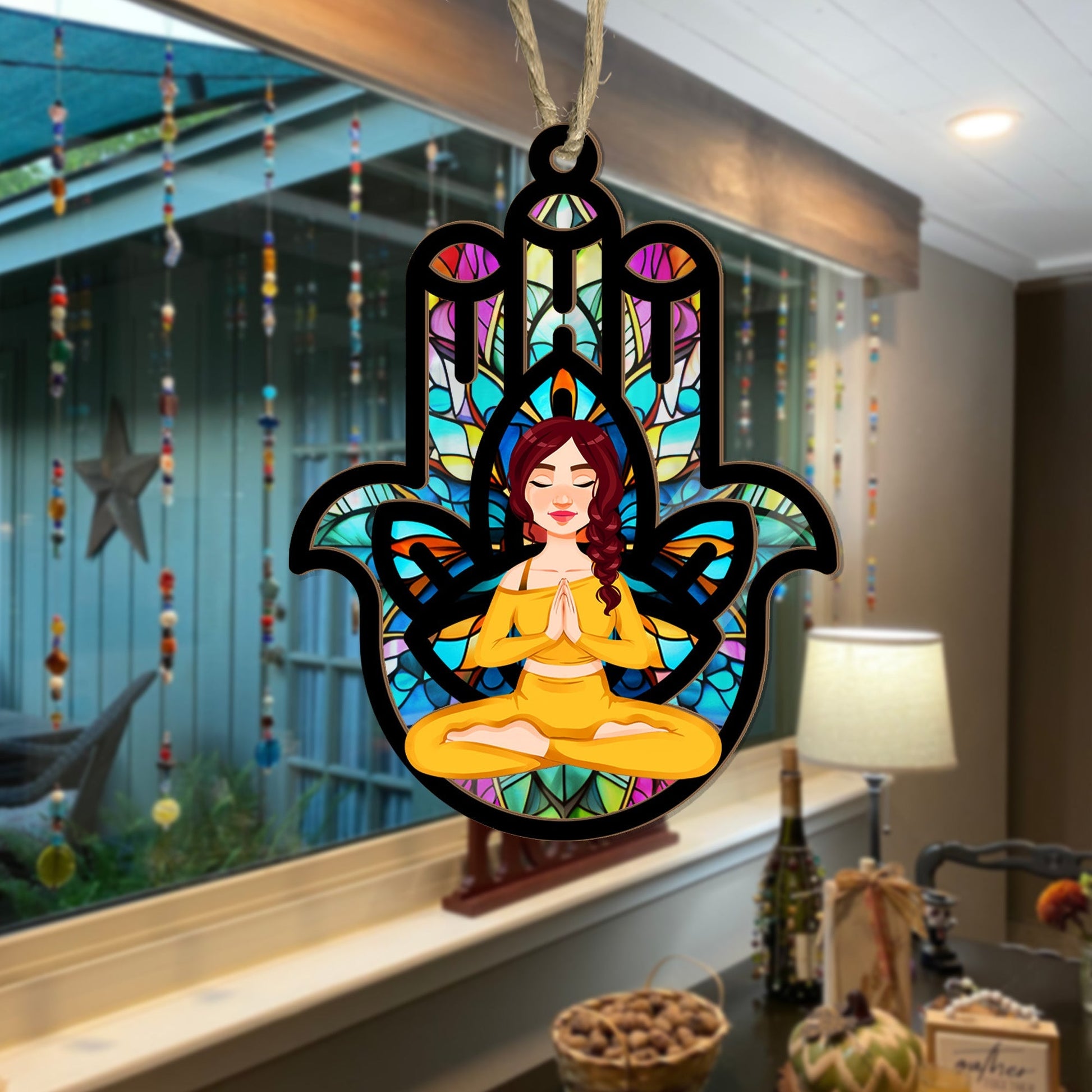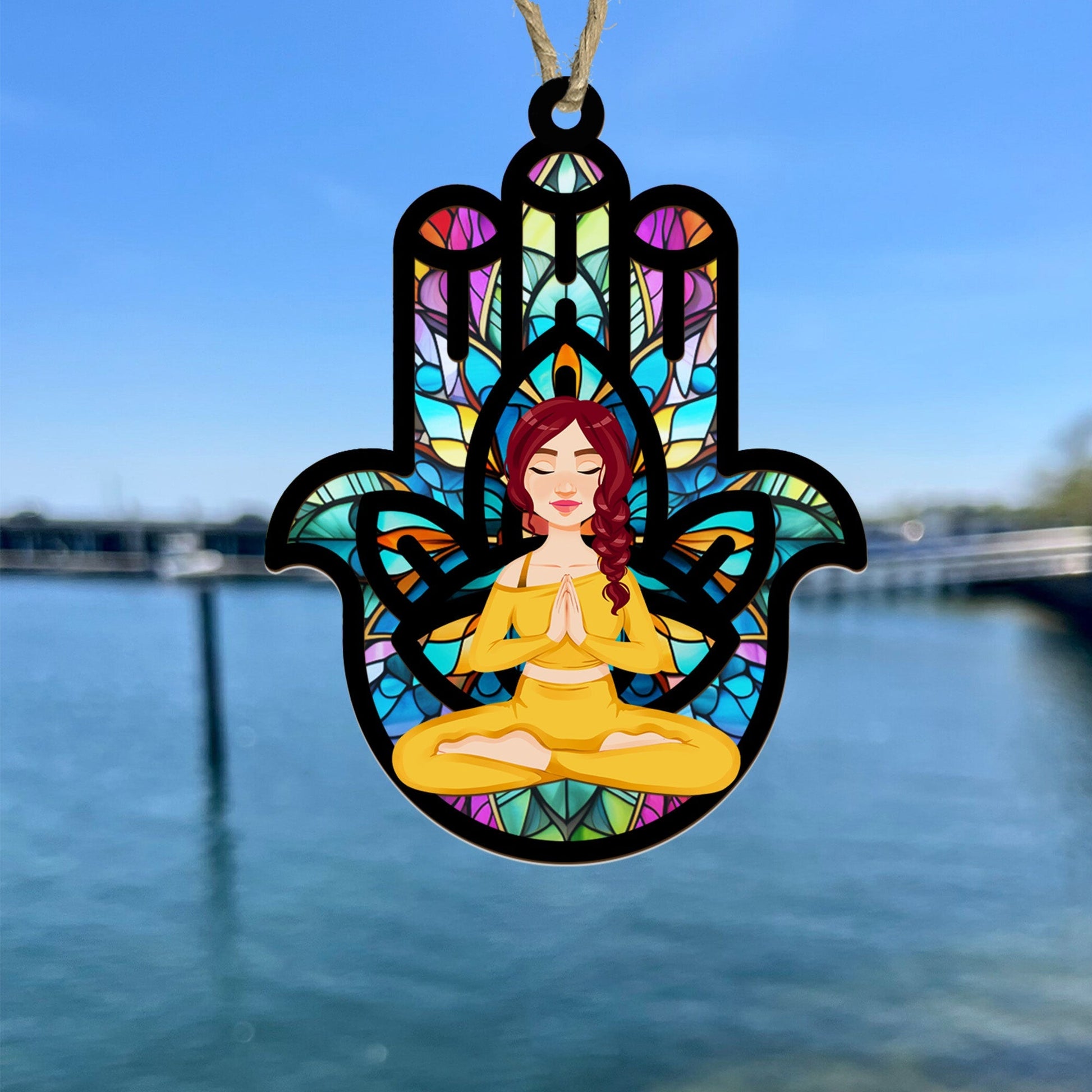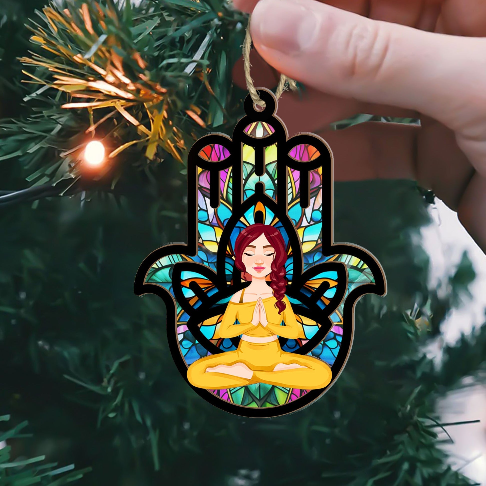 Introducing the Fatima Chakra Personalized Suncatcher Ornament, a unique and versatile gift perfect for yoga enthusiasts and holiday celebrations like Christmas. This beautifully crafted suncatcher ornament not only adds a touch of spiritual serenity to any space but also serves as a thoughtful, personalized gift option. Its intricate design features the Fatima Hand and a radiant chakra symbol, making it an ideal choice for those seeking balance and positive energy in their lives. Whether it's for a yoga's meditation space or a festive Christmas tree ornament, the Fatima Chakra Suncatcher is a meaningful and delightful present that captures the essence of both tranquility and holiday spirit.