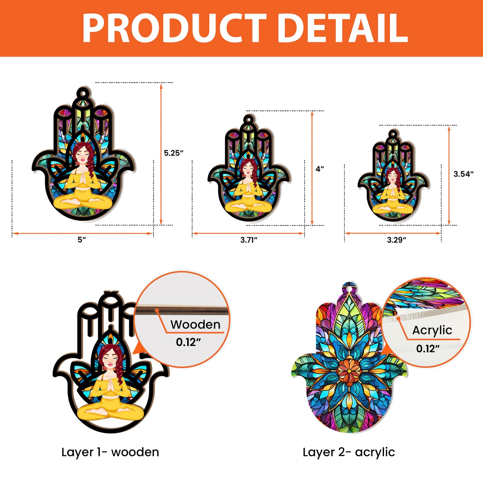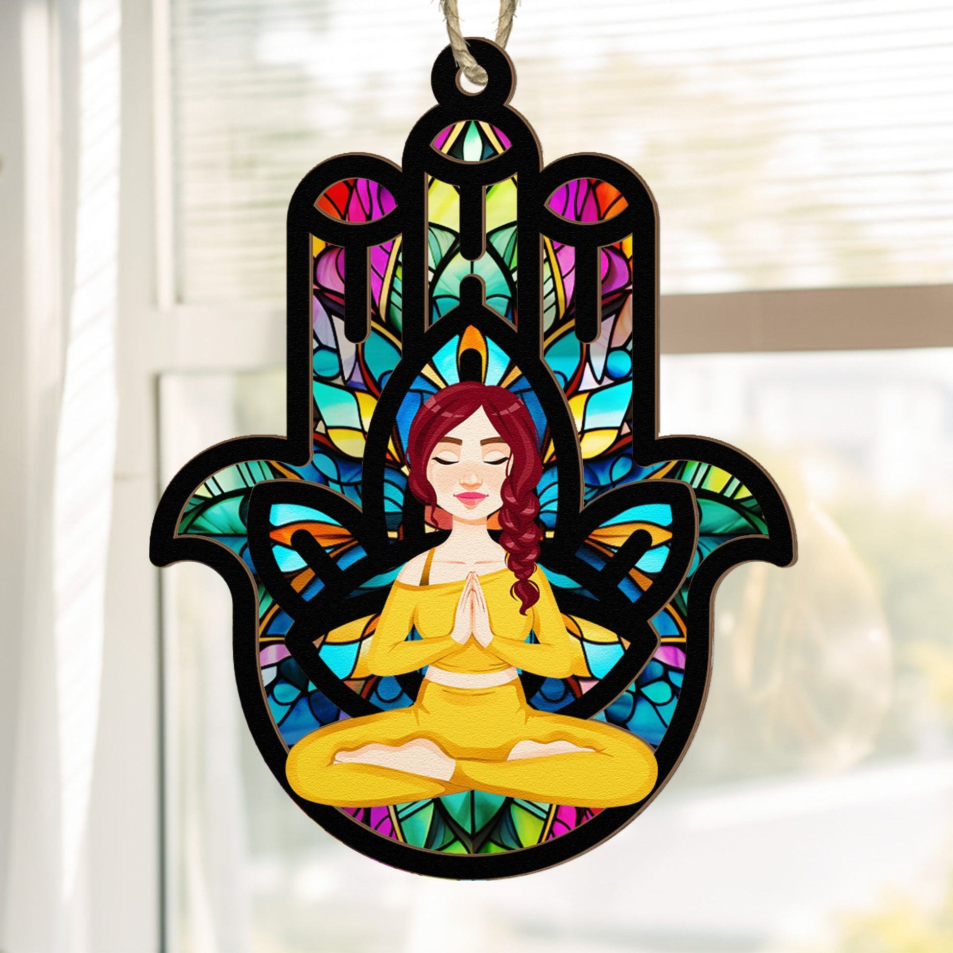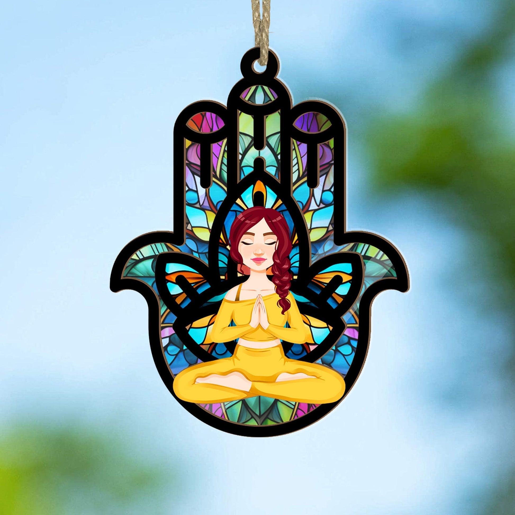 Introducing the Fatima Chakra Personalized Suncatcher Ornament, a unique and versatile gift perfect for yoga enthusiasts and holiday celebrations like Christmas. This beautifully crafted suncatcher ornament not only adds a touch of spiritual serenity to any space but also serves as a thoughtful, personalized gift option. Its intricate design features the Fatima Hand and a radiant chakra symbol, making it an ideal choice for those seeking balance and positive energy in their lives. Whether it's for a yoga's meditation space or a festive Christmas tree ornament, the Fatima Chakra Suncatcher is a meaningful and delightful present that captures the essence of both tranquility and holiday spirit.