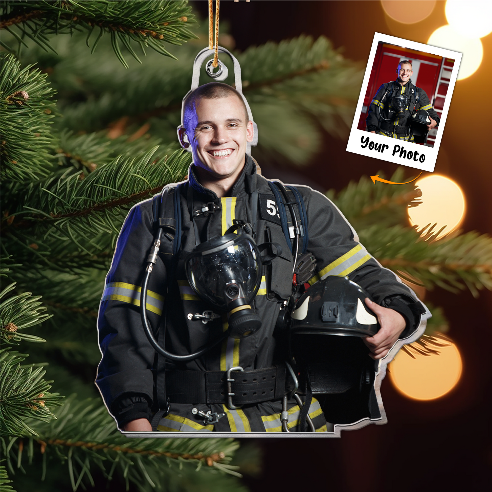 Introducing our Custom Photo Firefighter Ornament, a Personalized Acrylic Keepsake that honors firefighters' heroism over the holiday season. This ornament, expertly created, captures the bravery of firefighters in a treasured memory. It symbolizes the selflessness of first responders and is ideal for families and as a thoughtful Christmas gift for firefighters. This ornament, designed for firefighting memories, turns into an eternal symbol of bravery and service, preserving recollections with an artistic touch. This personalized masterpiece is a poignant tribute to the heroes in your life that will brighten the holiday season for years to come.