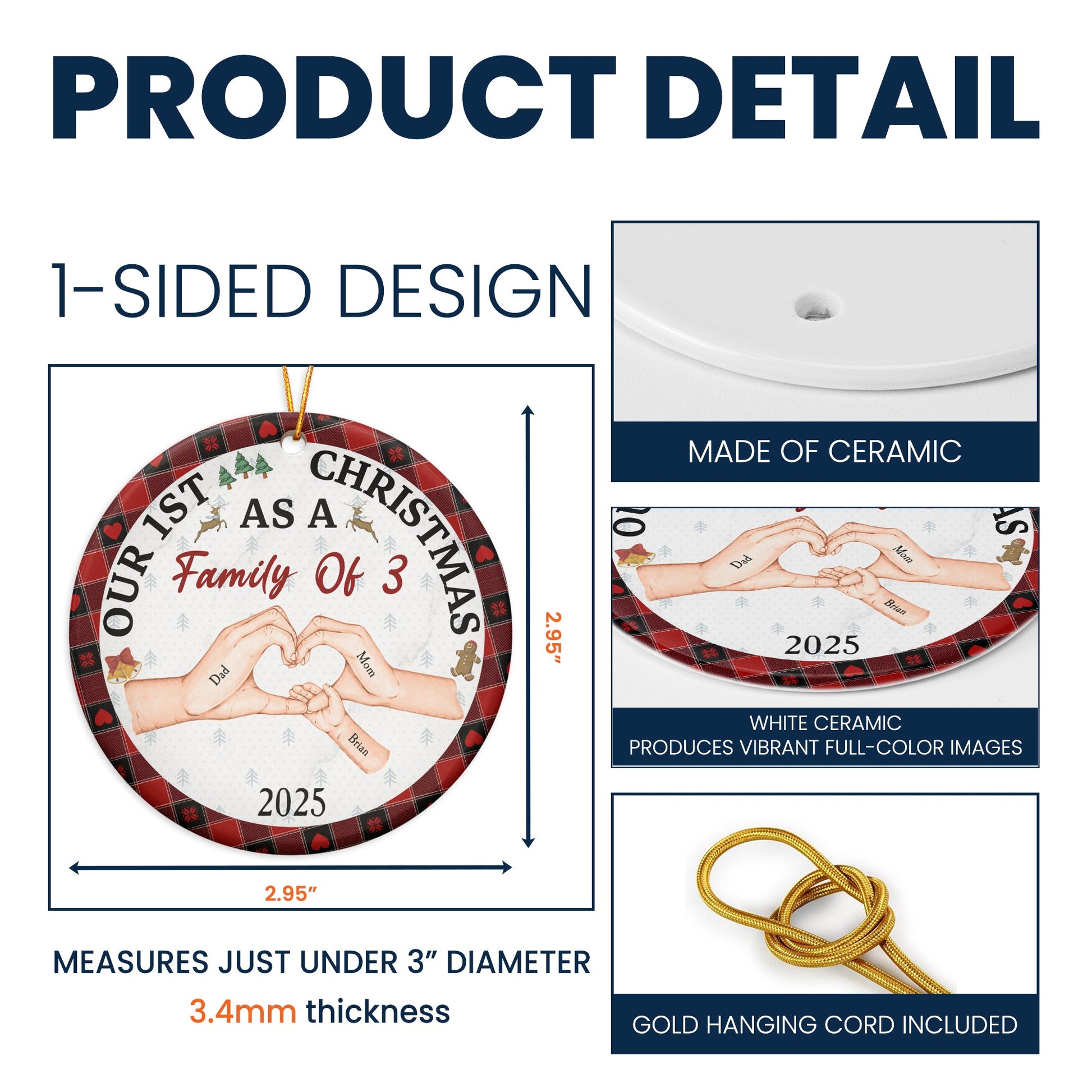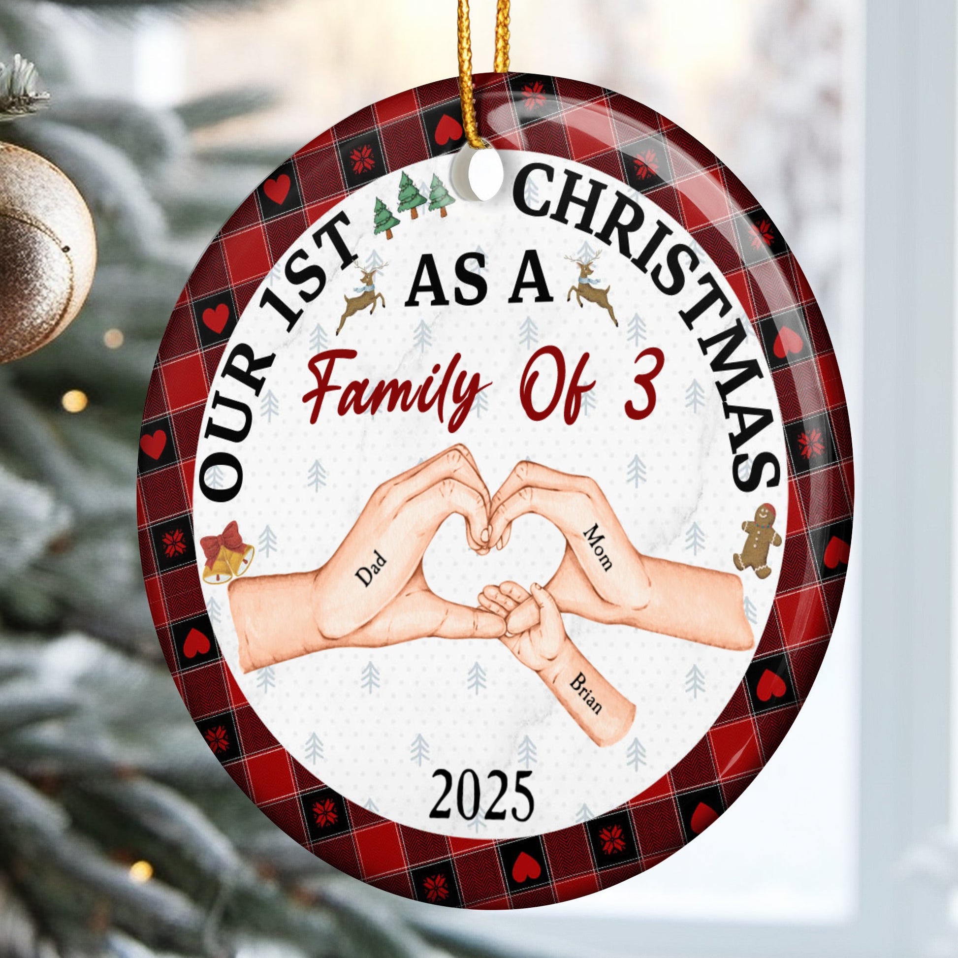 First Christmas As A Family Of Three - Personalized Ceramic Ornament