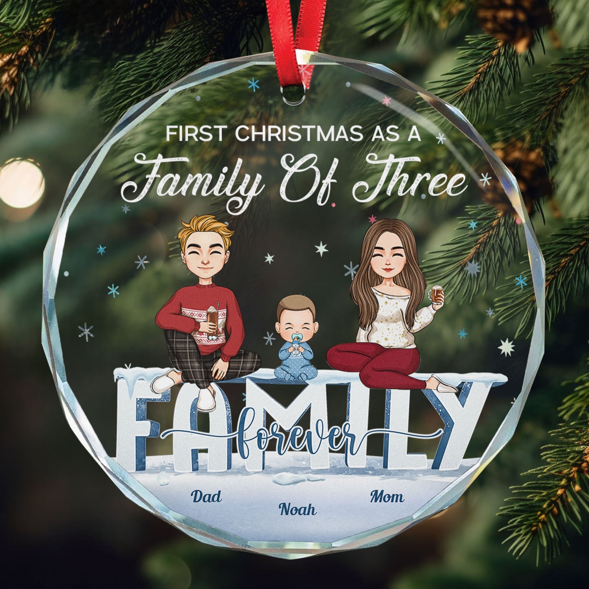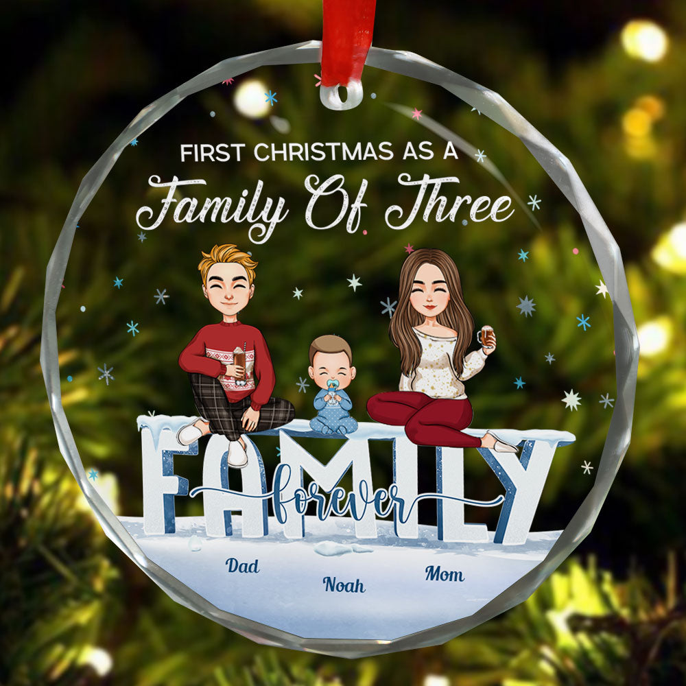 First Christmas As A Family Of Three - Personalized Glass Ornament