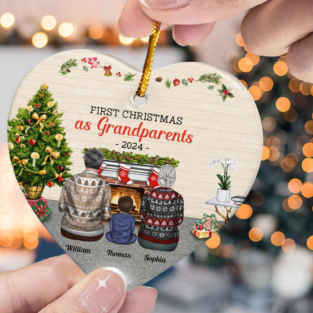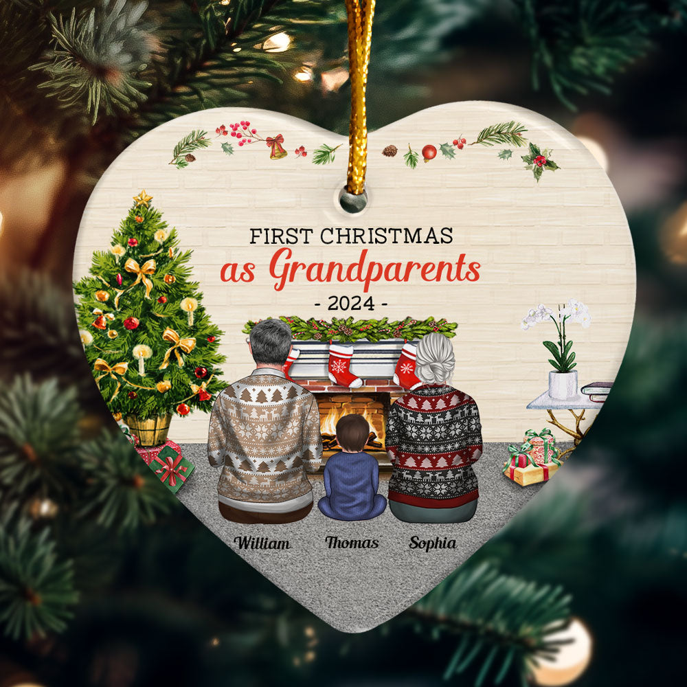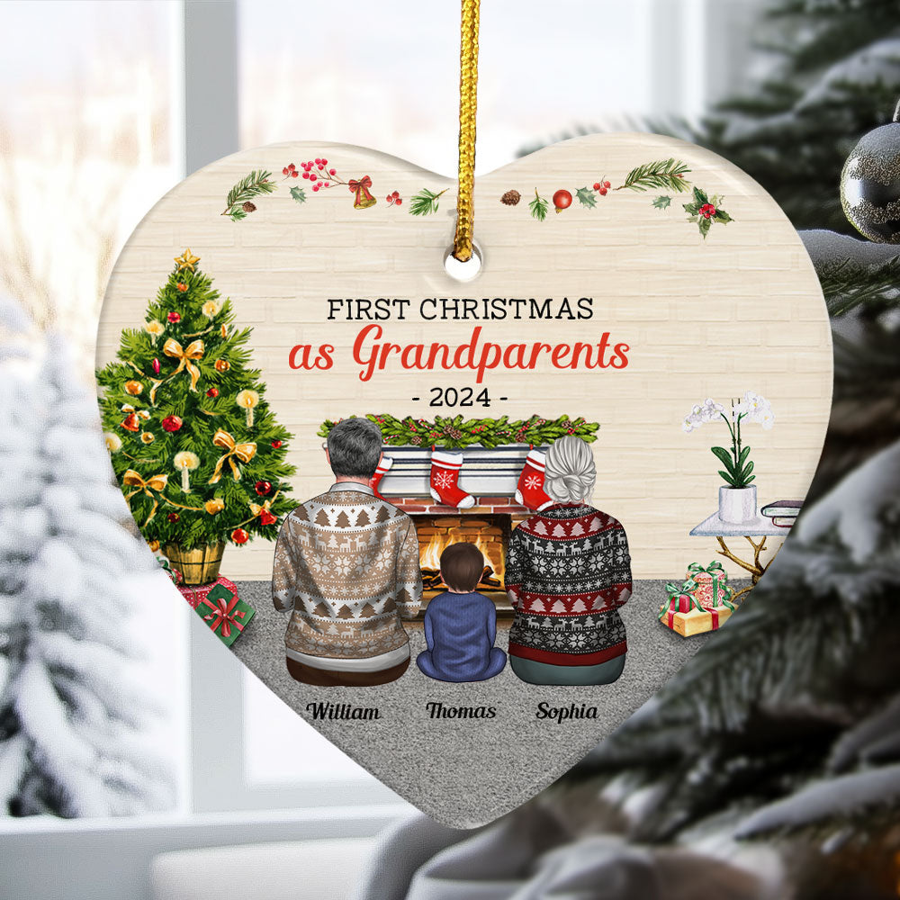First Christmas As Grandparents - Personalized Heart Shaped Ceramic Ornament