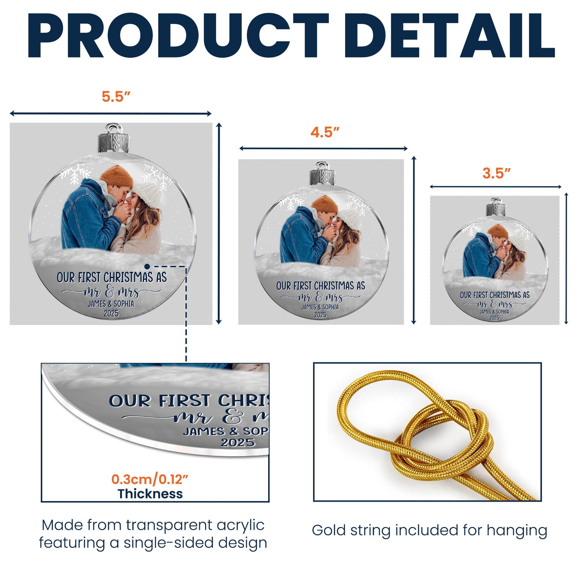 First Christmas As Mr & Mrs Christmas Globe - Personalized Acrylic Photo Ornament