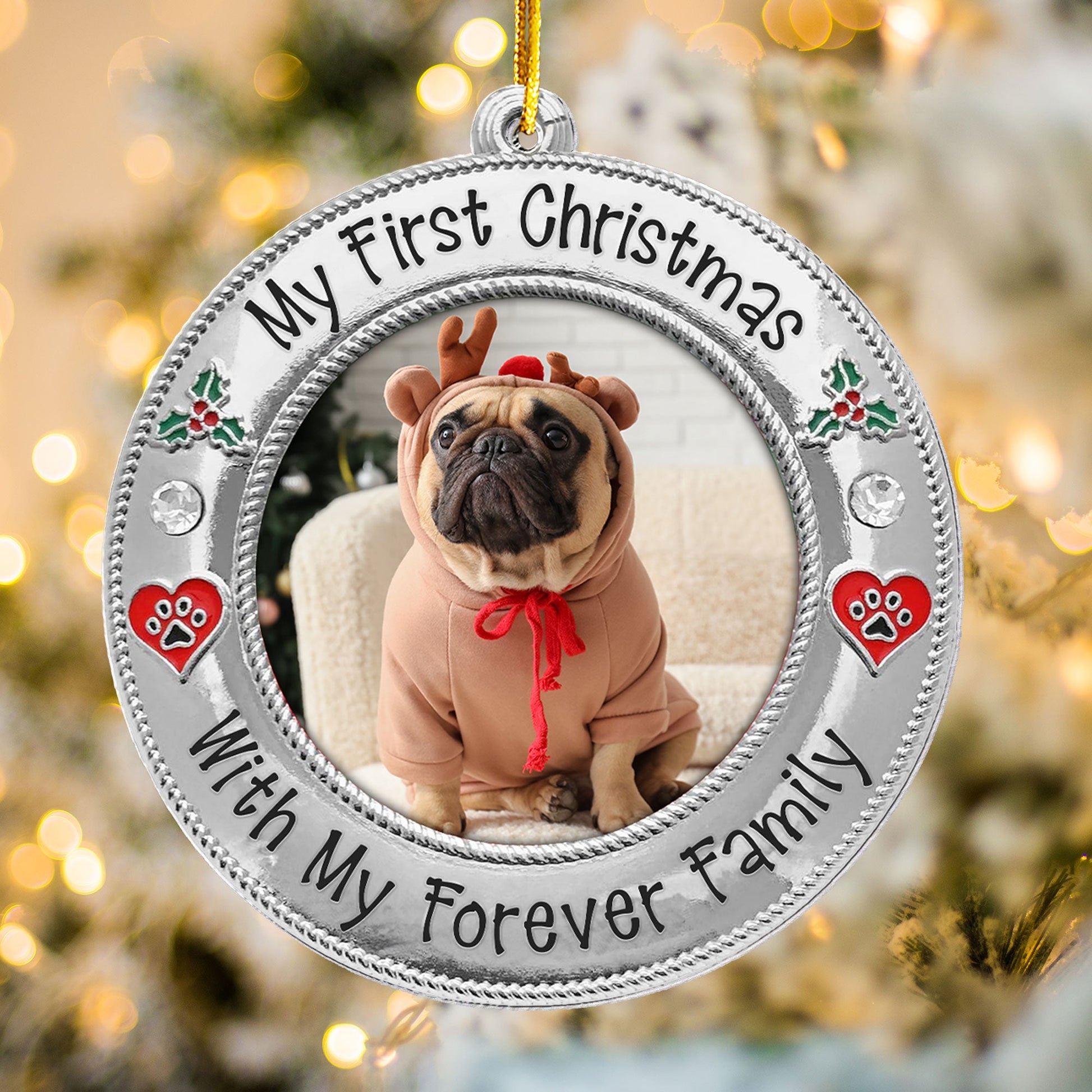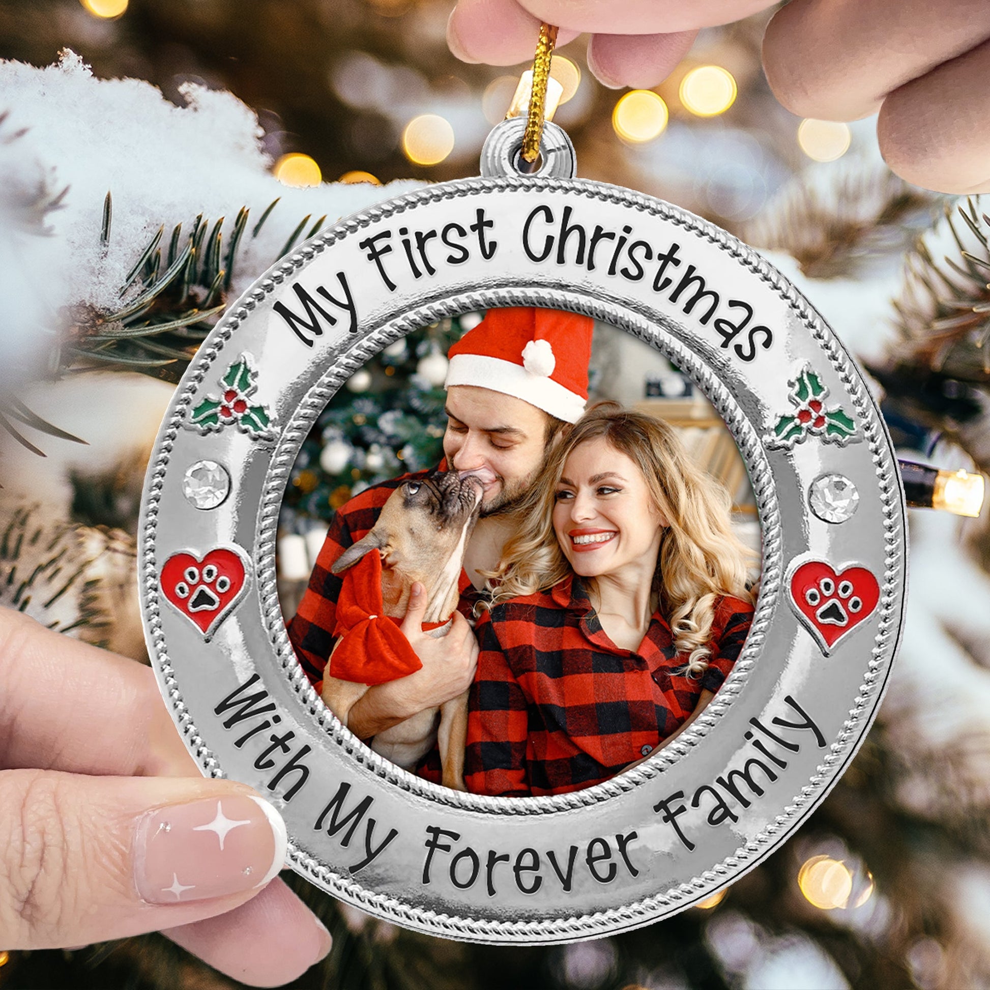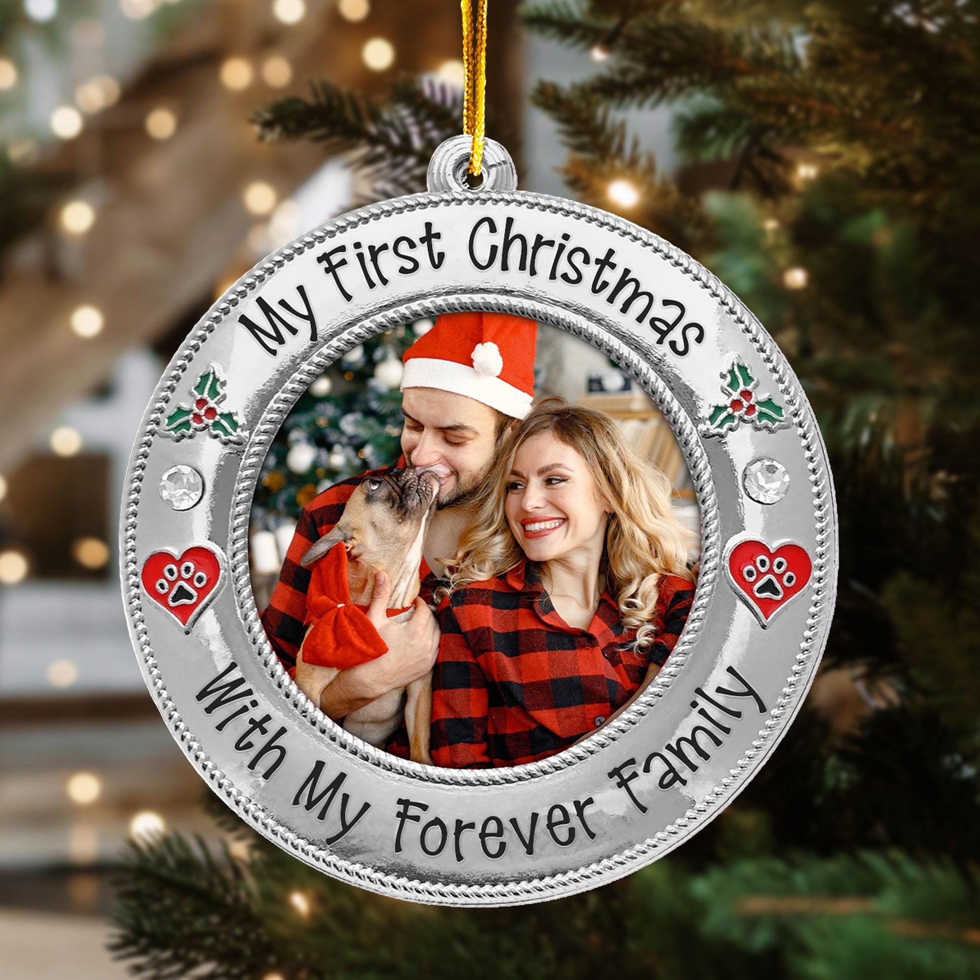 Celebrate your furry friend's first holiday with their forever family using our Personalized Custom Shaped Acrylic Photo Ornament! Featuring the cute message, this ornament allows you to customize it with your pet’s photo, whether you’ve adopted a mischievous cat or a lovable dog. It’s the perfect way to mark your pet’s first Christmas in their new home.