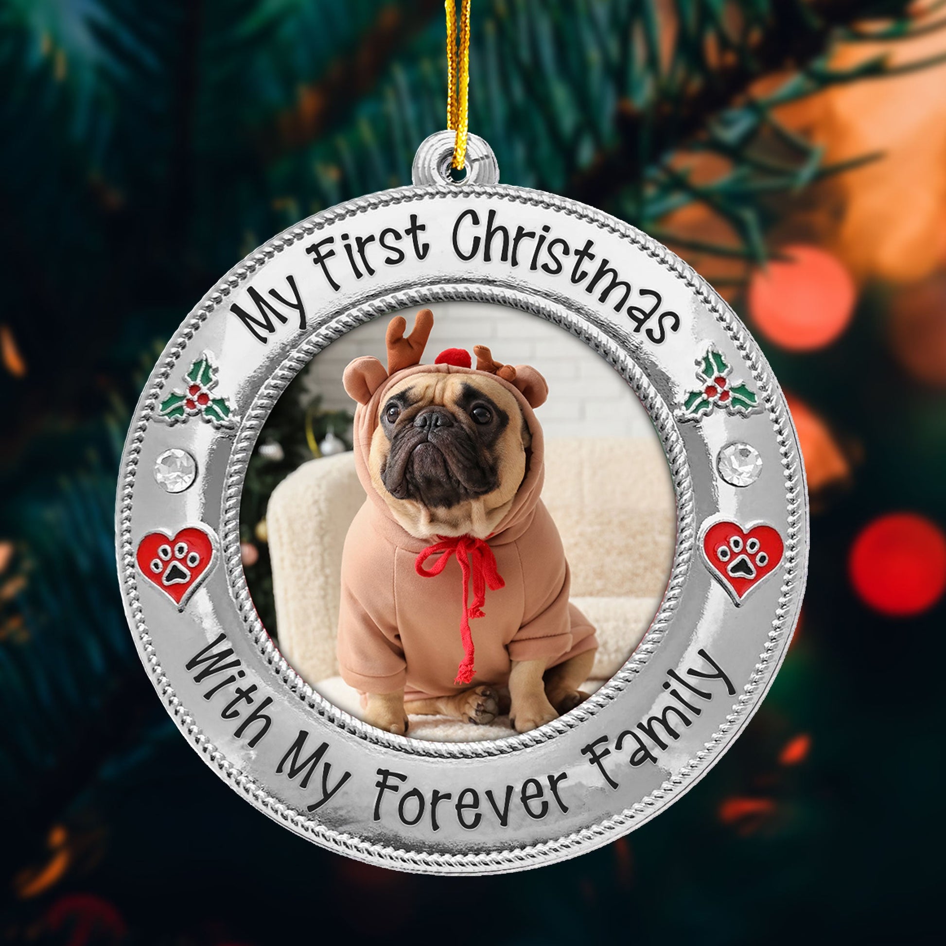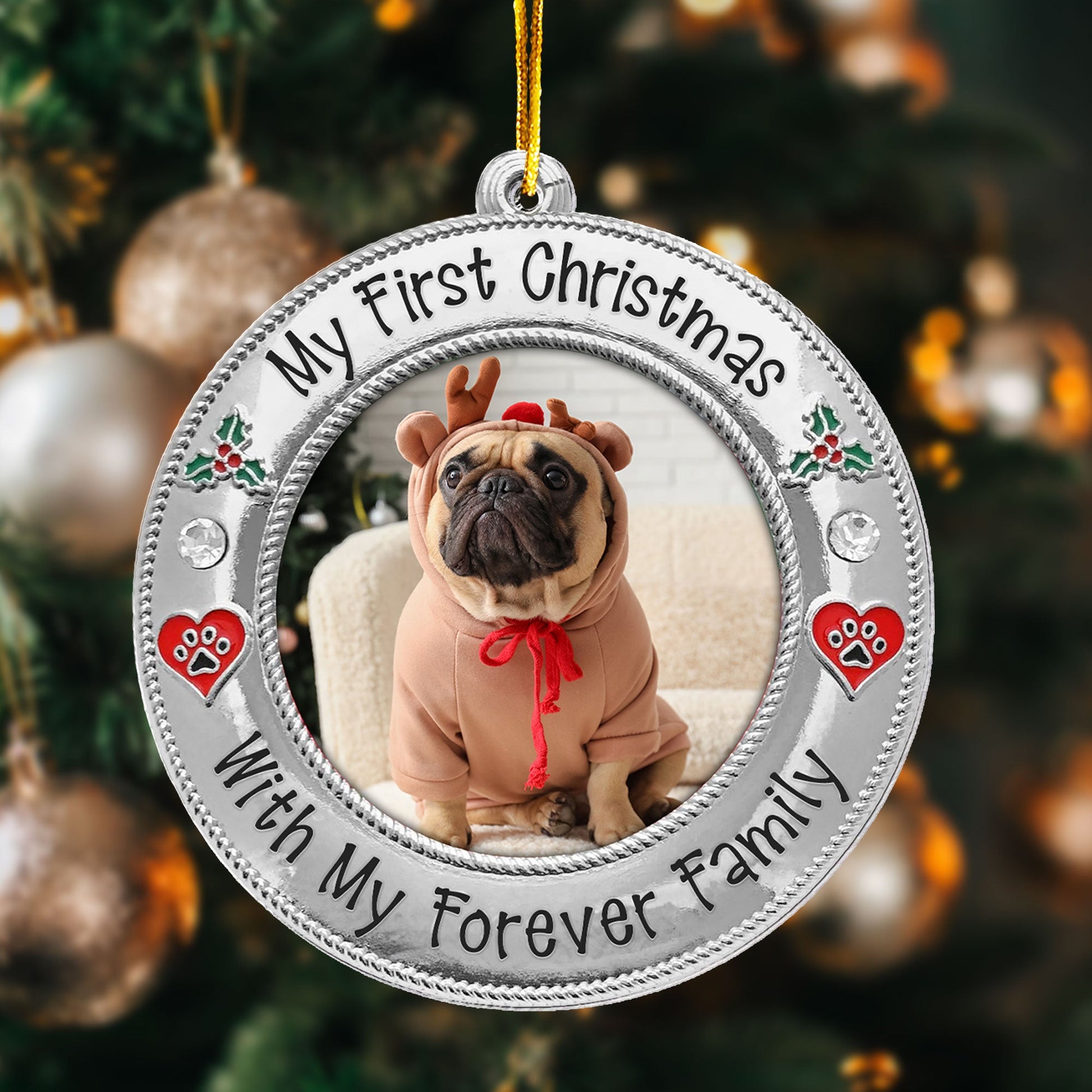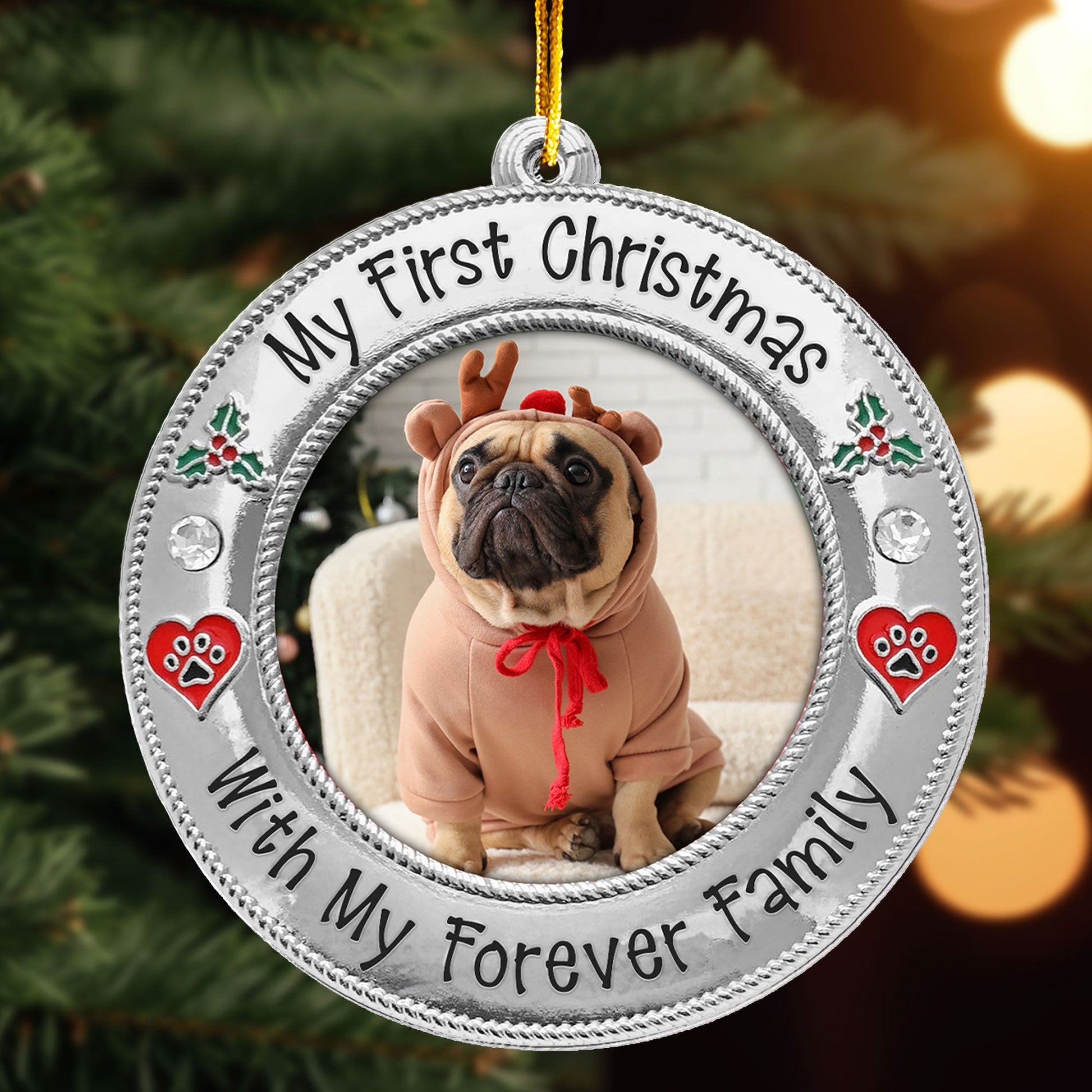 Celebrate your furry friend's first holiday with their forever family using our Personalized Custom Shaped Acrylic Photo Ornament! Featuring the cute message, this ornament allows you to customize it with your pet’s photo, whether you’ve adopted a mischievous cat or a lovable dog. It’s the perfect way to mark your pet’s first Christmas in their new home.