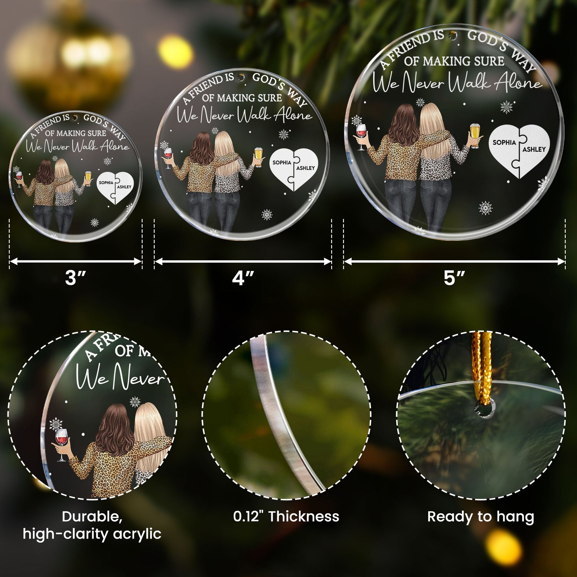 Friend Is God's Way Making Sure We Never Walk Alone - Personalized Acrylic Ornament