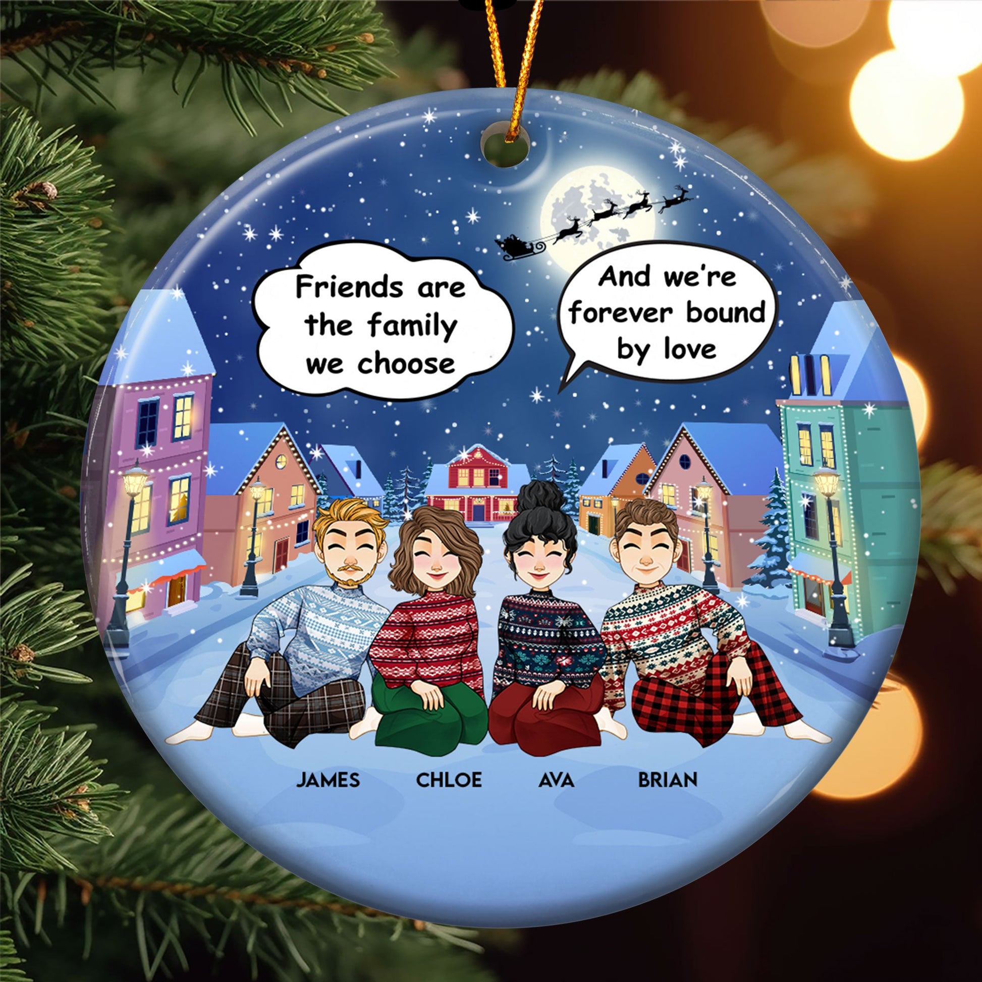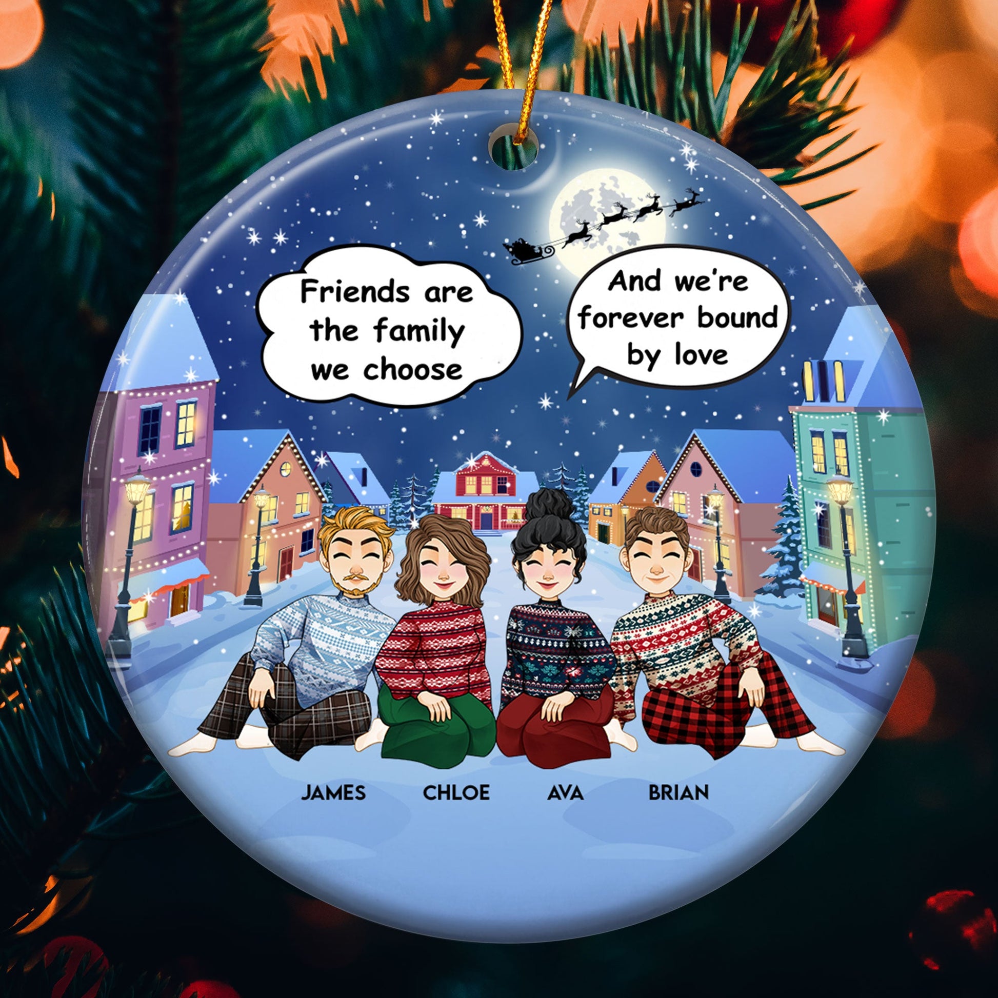 Celebrate your friendship in a special way with our Personalized Ceramic Ornament! This festive ornament allows you to customize up to 8 characters to perfectly match your friends. It’s a heartwarming addition to your Christmas tree, bringing a joyful and personal touch to your holiday decorations. Whether you’re gifting it to a loved one or adding it to your own collection, this ornament is a wonderful way to capture the special bond of you and your friends during the festive season. Hang it proudly on your tree and let it become a cherished keepsake that celebrates the bond you share. Perfect as a Christmas gift or as a personalized decoration, this ornament brings warmth, happiness, and a touch of love to your holiday celebrations.