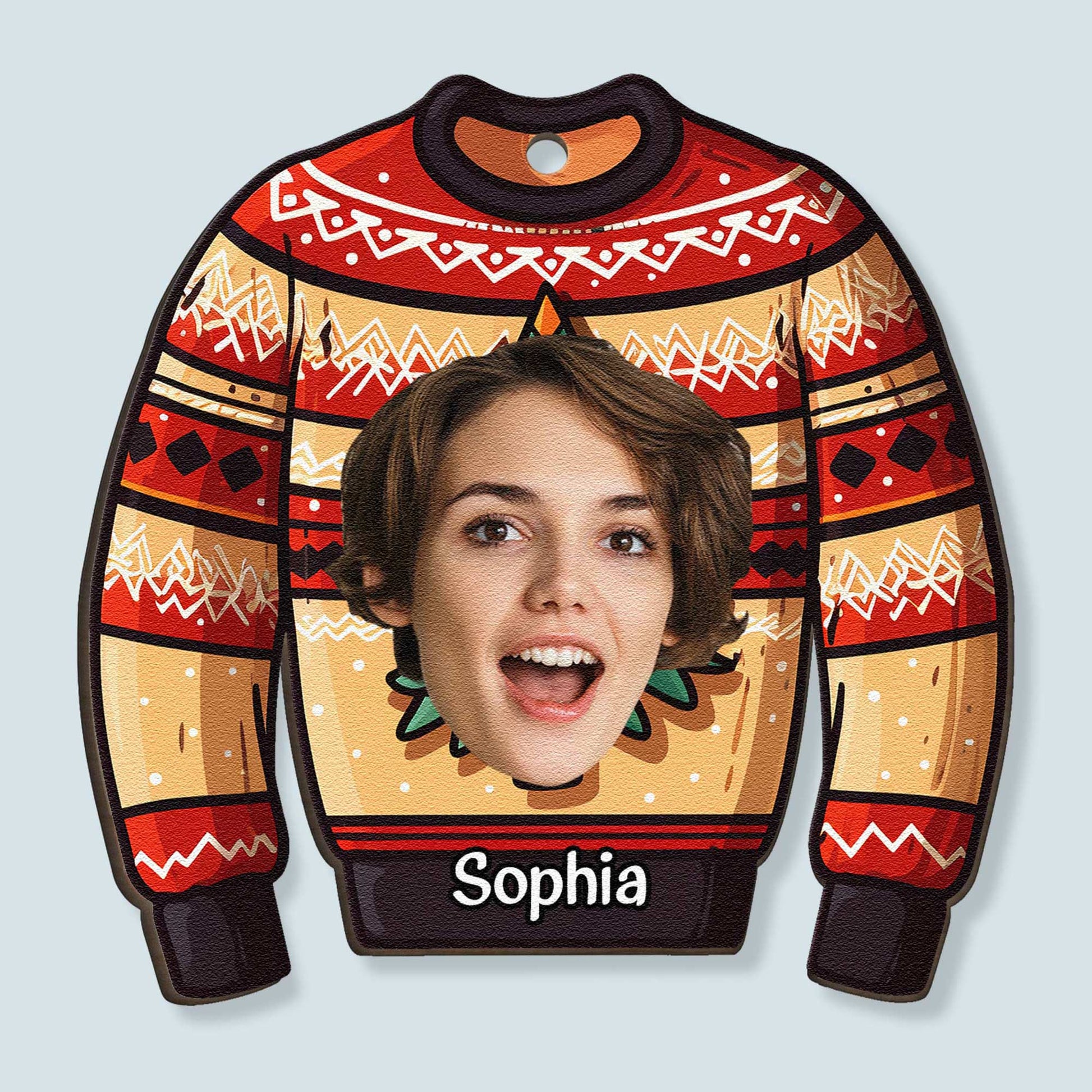 Funny Family Ugly Sweater - Personalized Wooden Photo Ornament