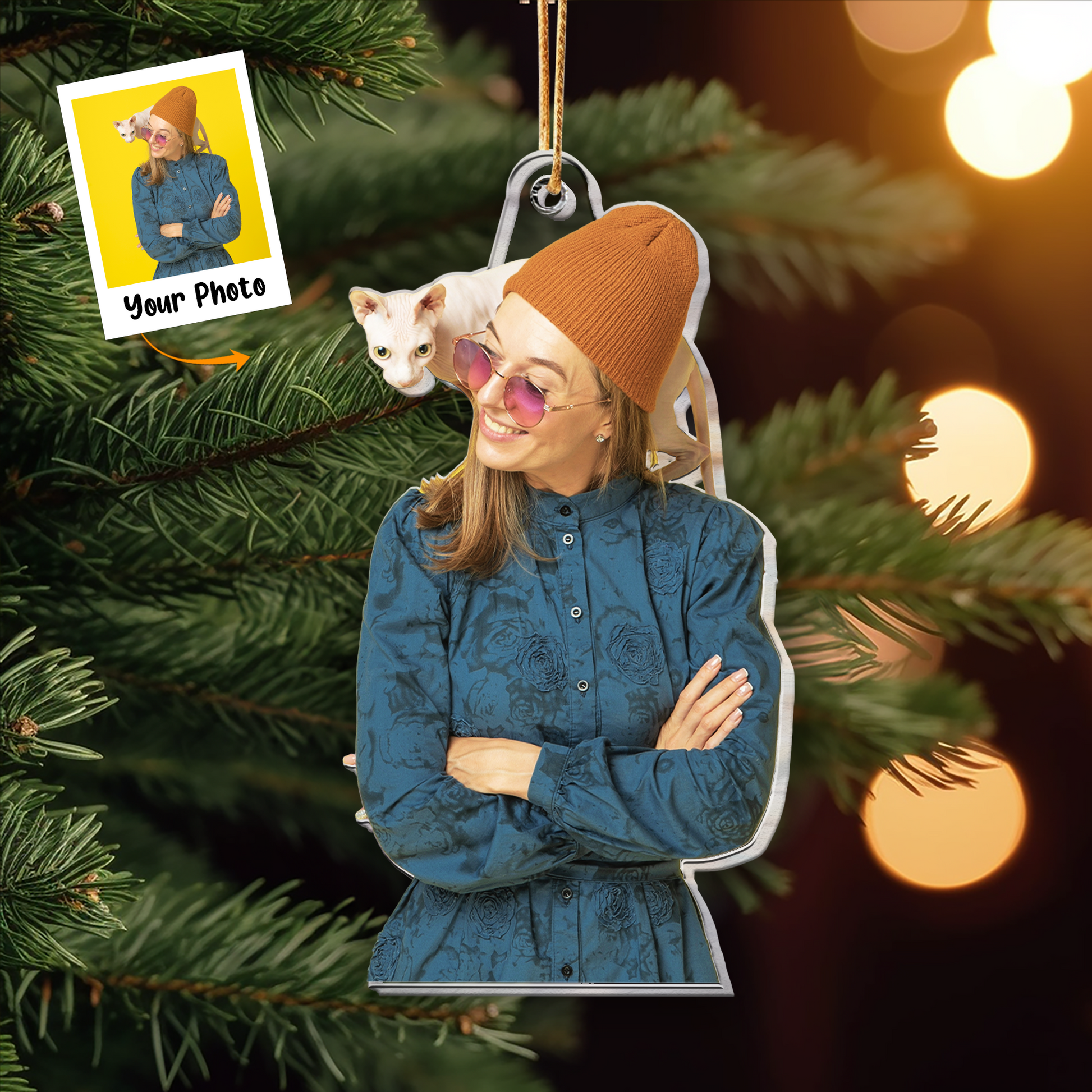 Treat the feline-obsessed person in your life to this custom acrylic photo ornament featuring their favorite furry friend.