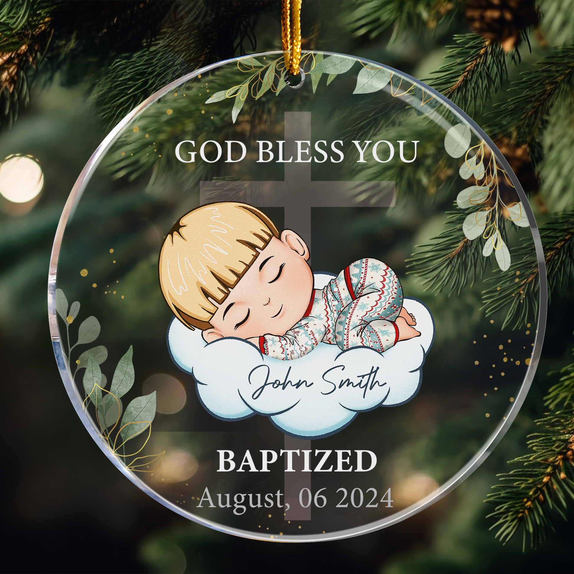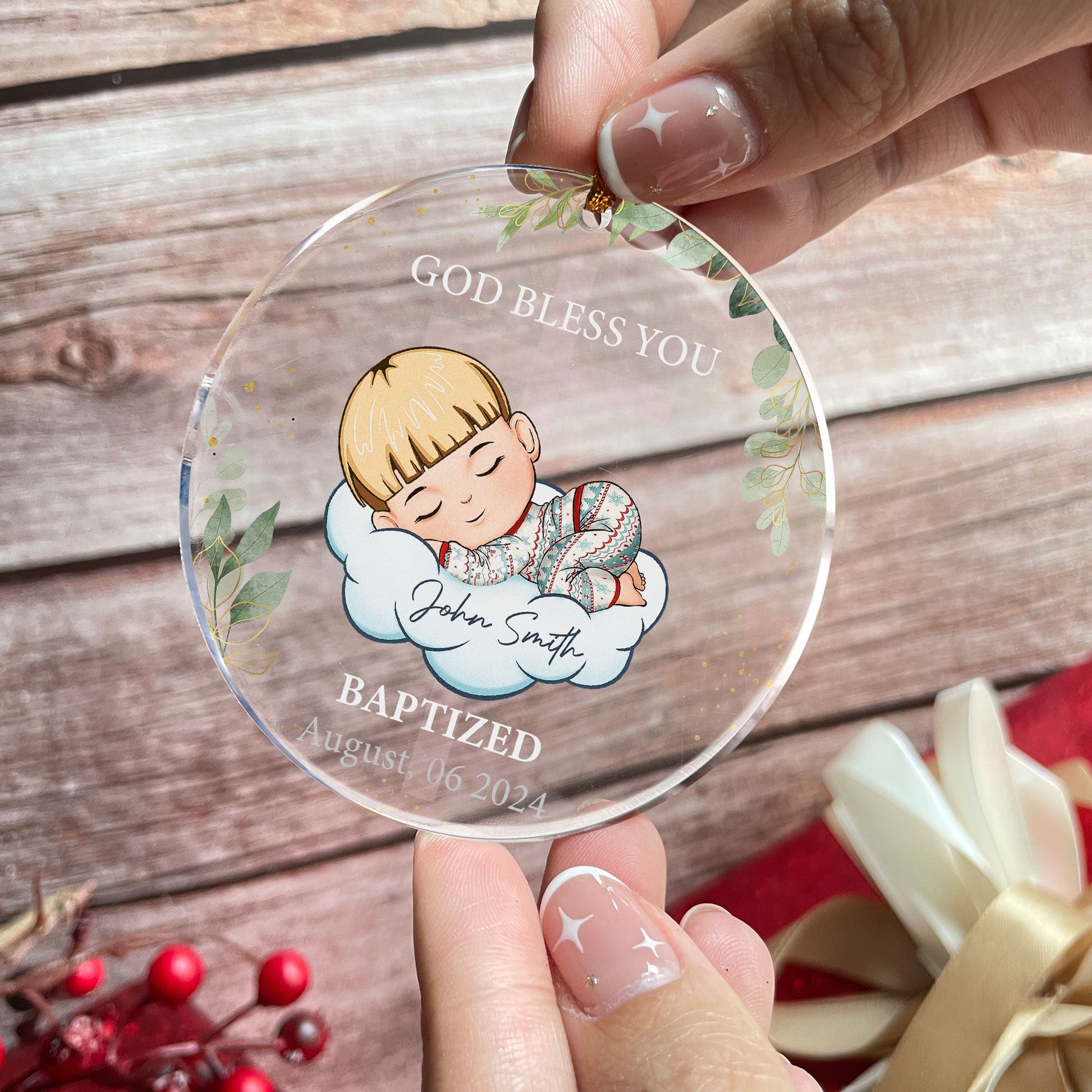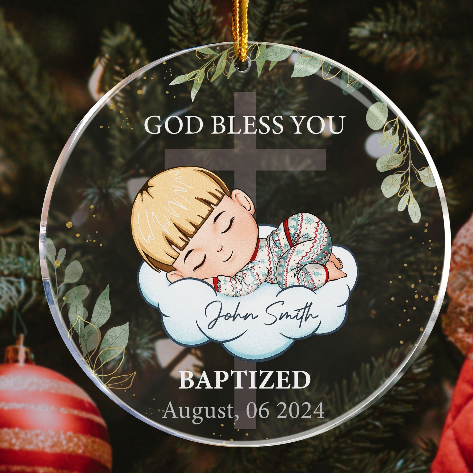 God Bless You Baptism Gift - Personalized Circle Acrylic Ornament