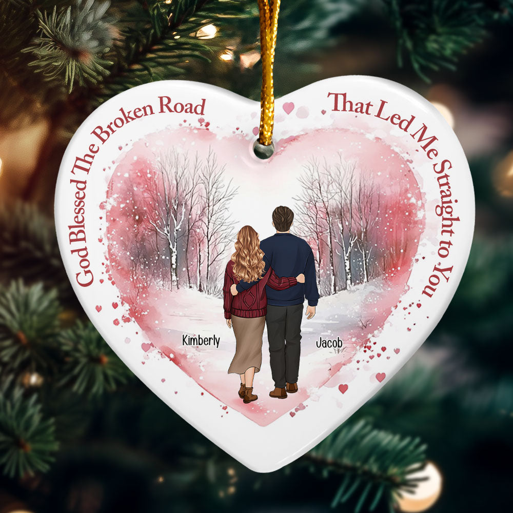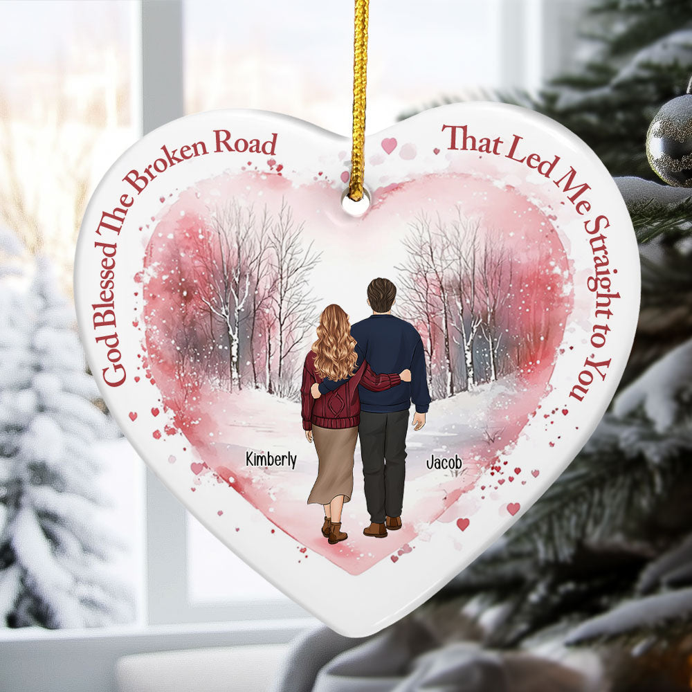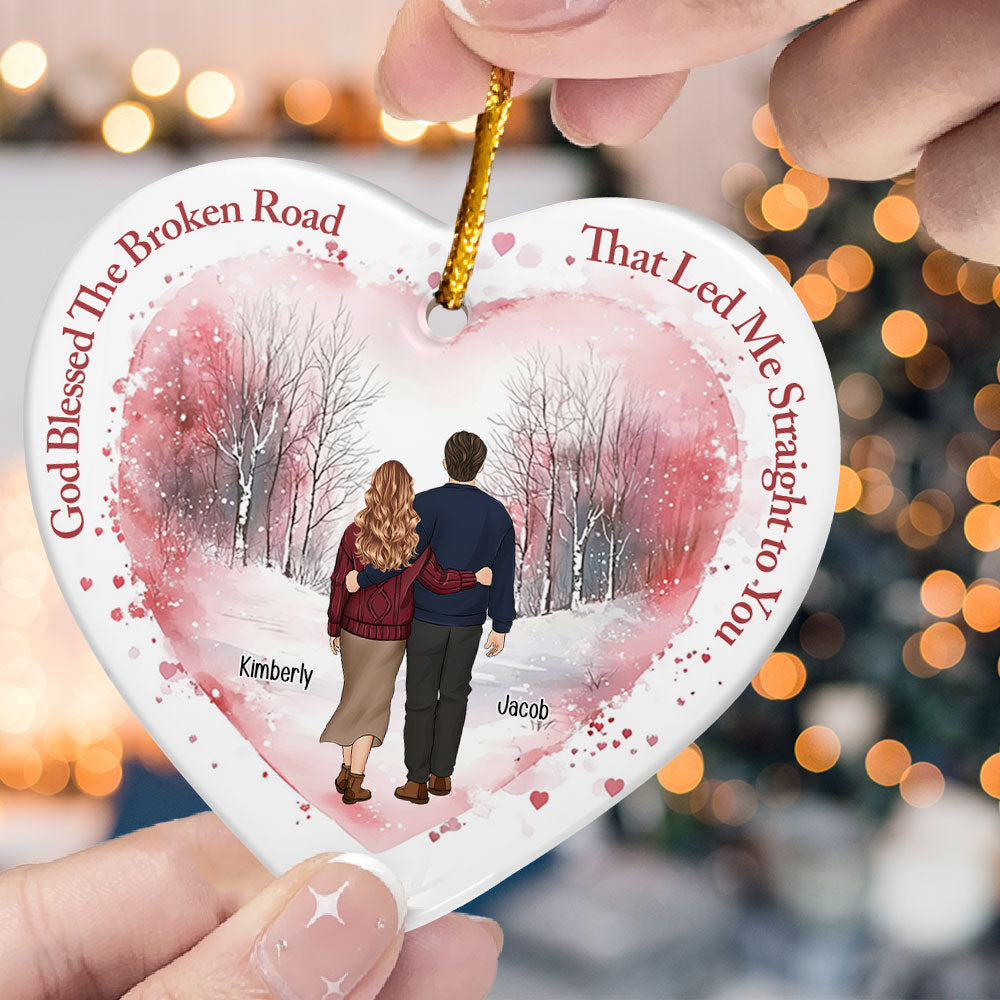 God Blessed The Broken Road - Personalized Ceramic Ornament