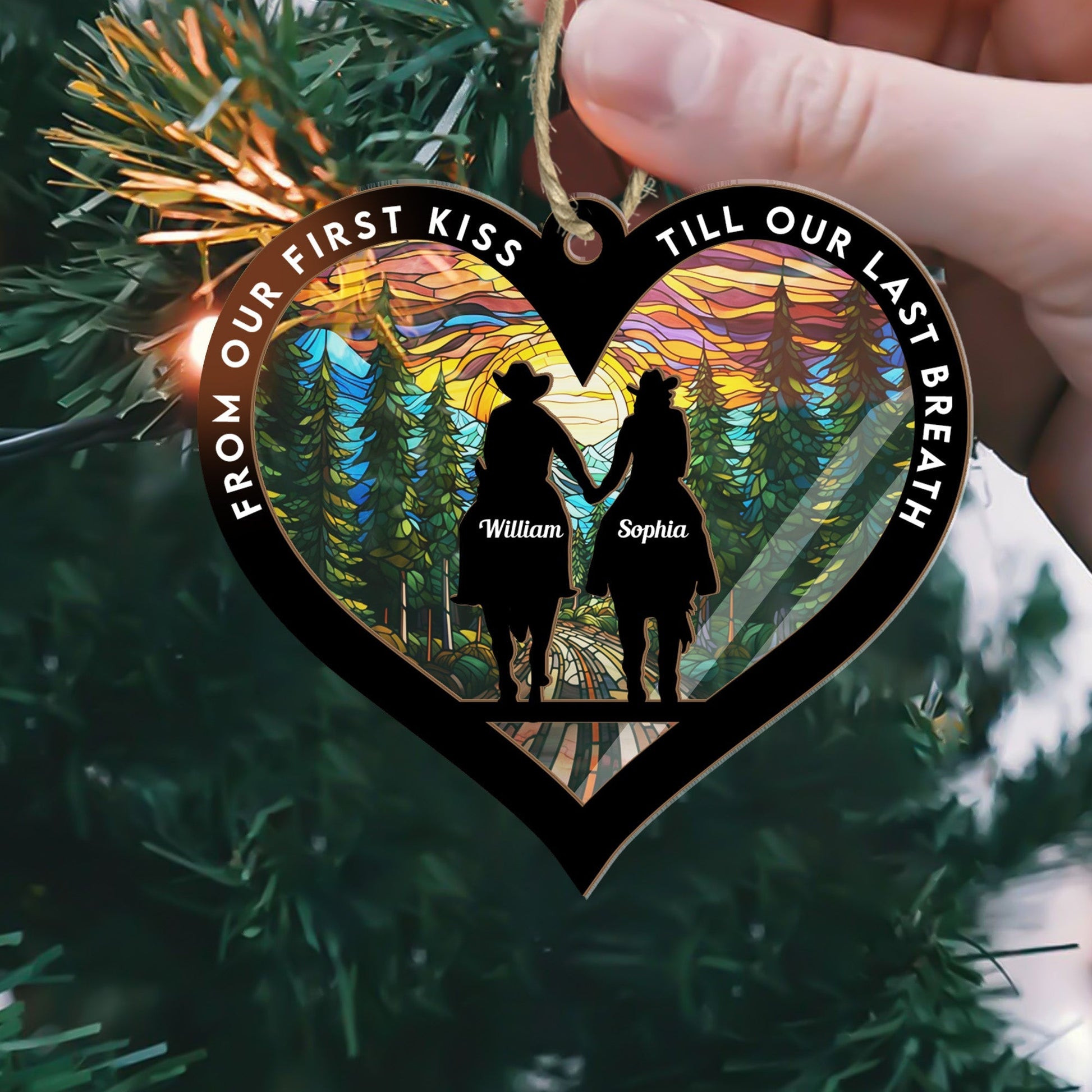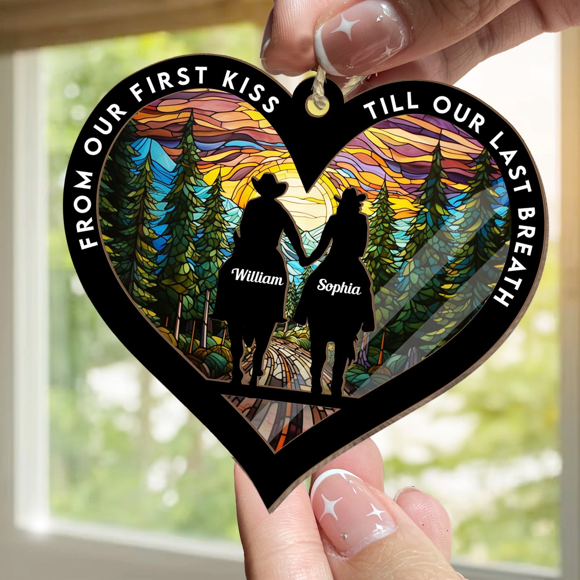 Embrace the beauty of growing old together with our 'God Blessed The Broken Road That Led Me To You - Personalized Suncatcher Couple Ornament. This touching anniversary gift is designed for old couples who have shared a lifetime of love. Celebrate your enduring journey, whether it's your 20th, 40th, or even 60th anniversary. Personalize it for him or her, your husband, wife, or cherished partner. This suncatcher ornament, accompanied by a heartfelt card, symbolizes the timeless love that has bound you both. Hang it in your window and let it catch the light, illuminating your lasting commitment and the promise of even brighter days ahead.