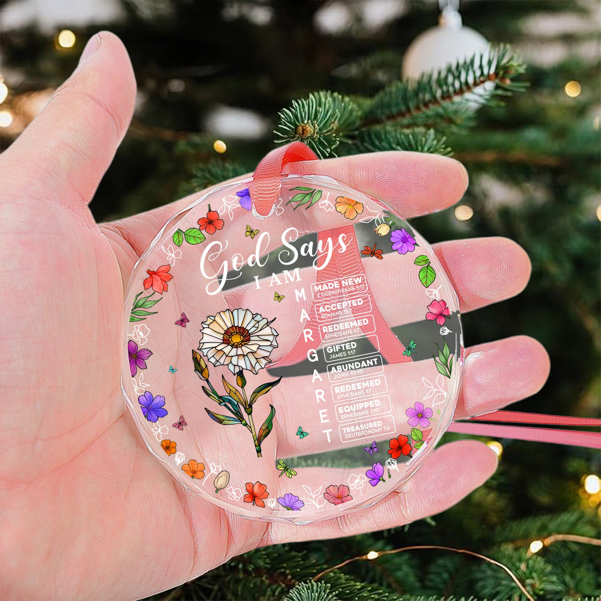 God Says I Am Name Letter In Bible - Personalized Glass Ornament