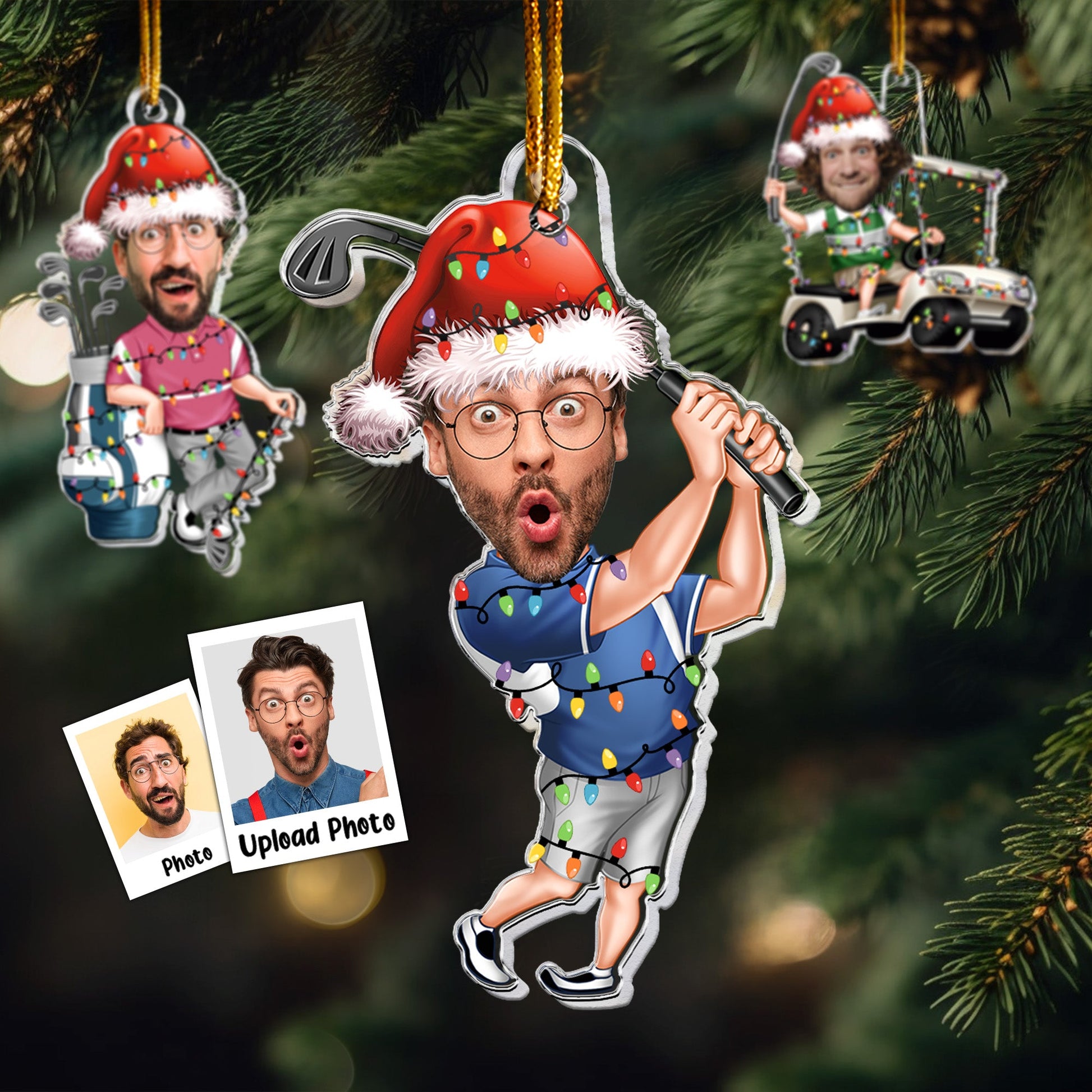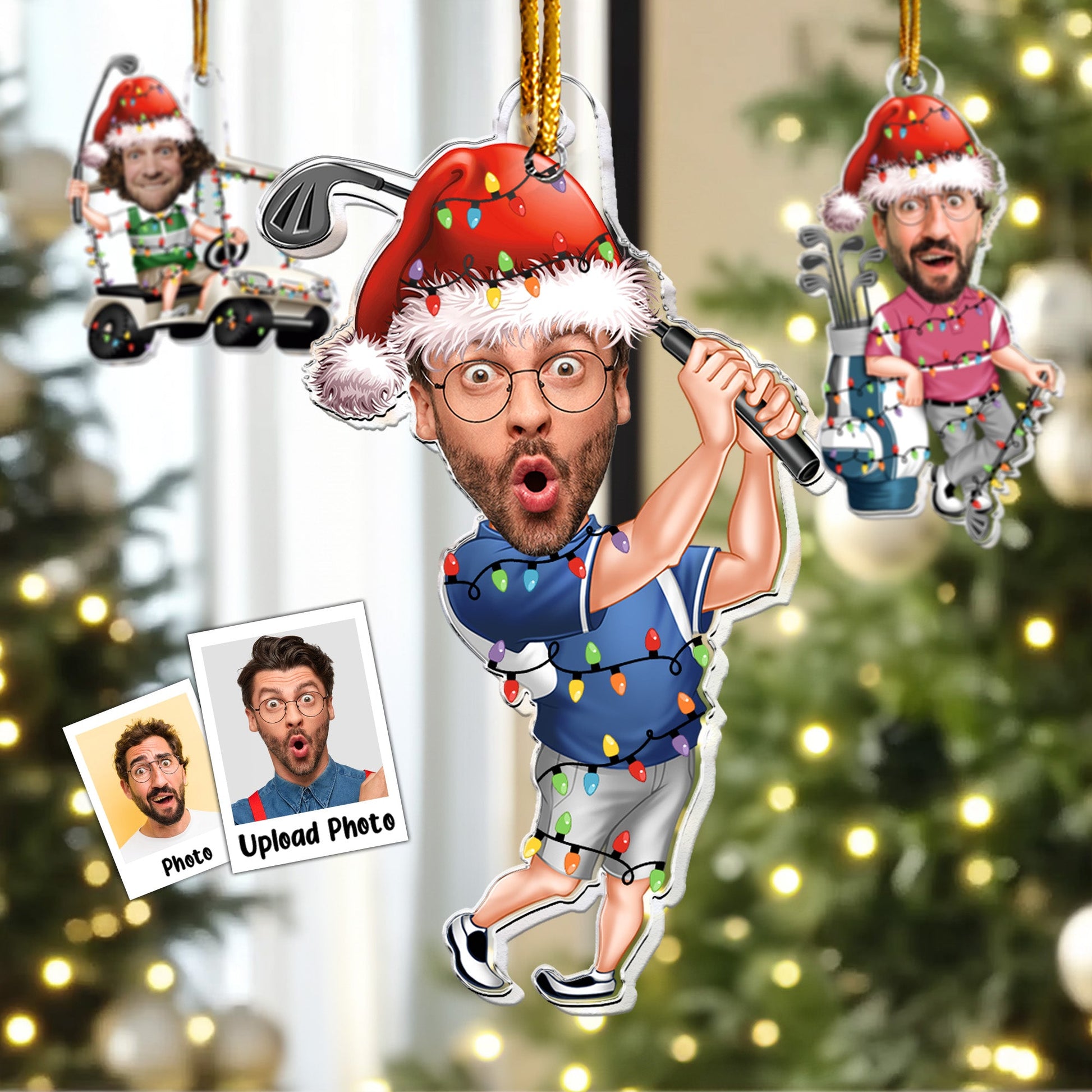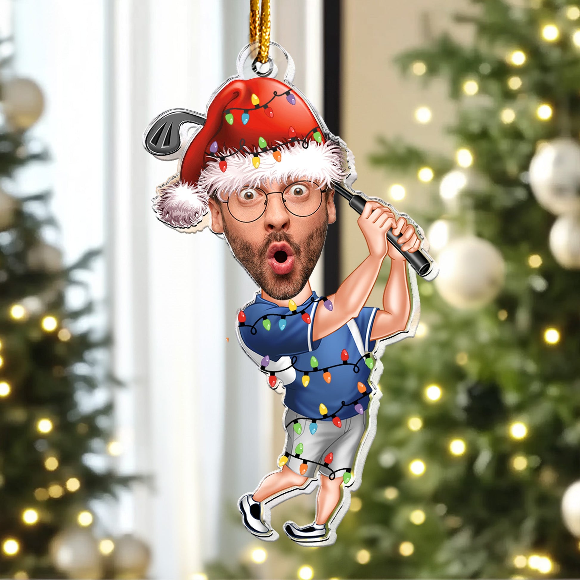 The Golf Players - Personalized Acrylic Photo Ornament is a unique and special way to celebrate your favorite player's love for sports during the holiday season. This ornament features a custom photo of your husband, son, or grandson with a funny clipart. It's the perfect Christmas keepsake that will bring joy and pride to any sports-loving family. Ideal as a gift for your husband, son or grandson, this personalized ornament captures their passion for sports while brightening up the Christmas tree for years to come.