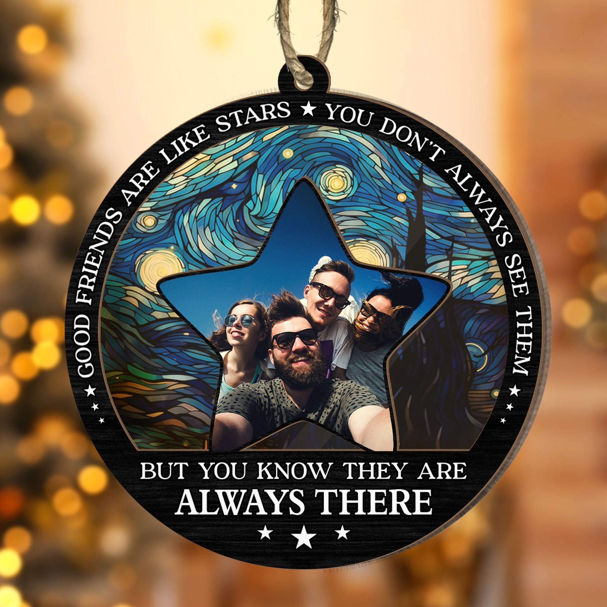 Good Friends Are Like Stars - Personalized Photo Suncatcher Ornament