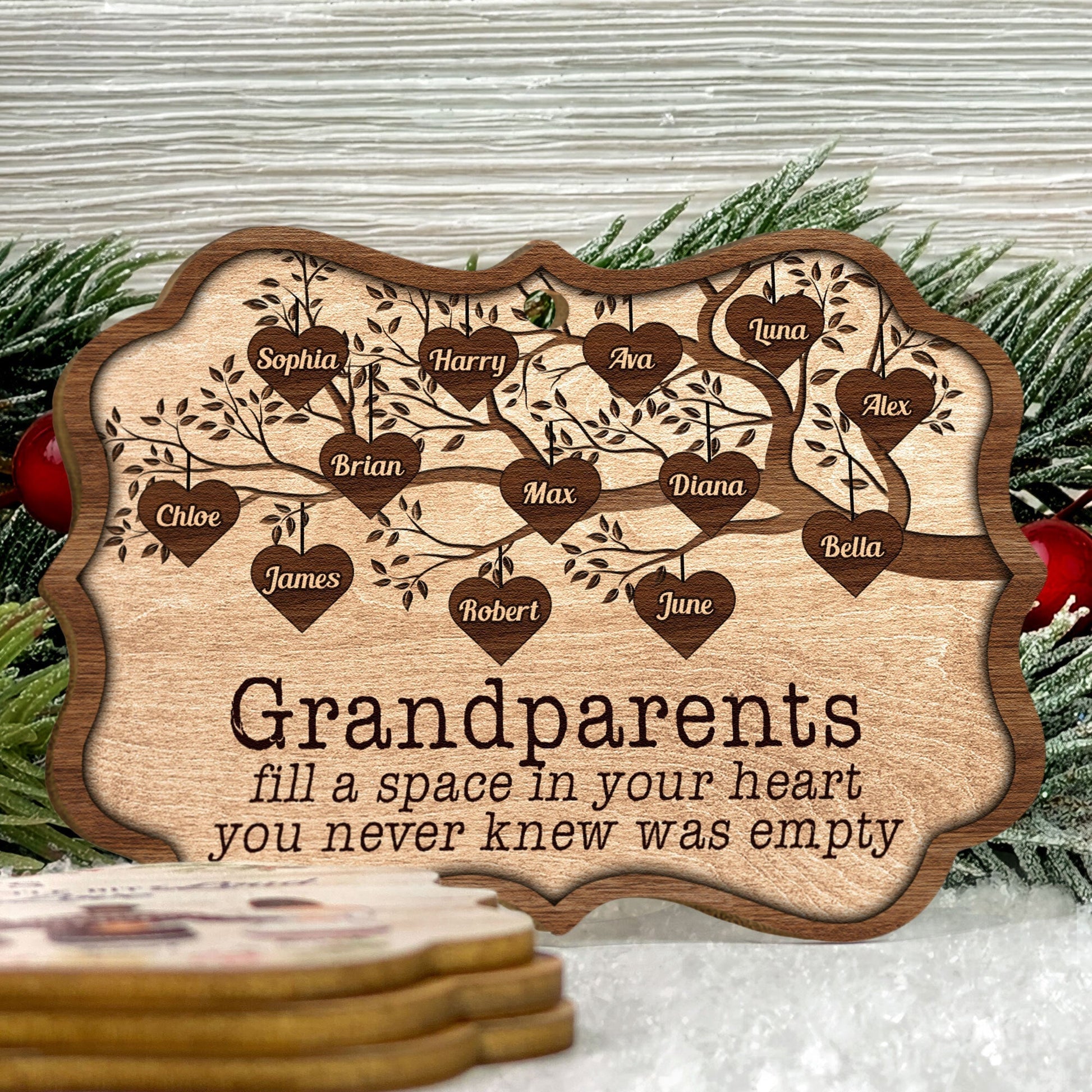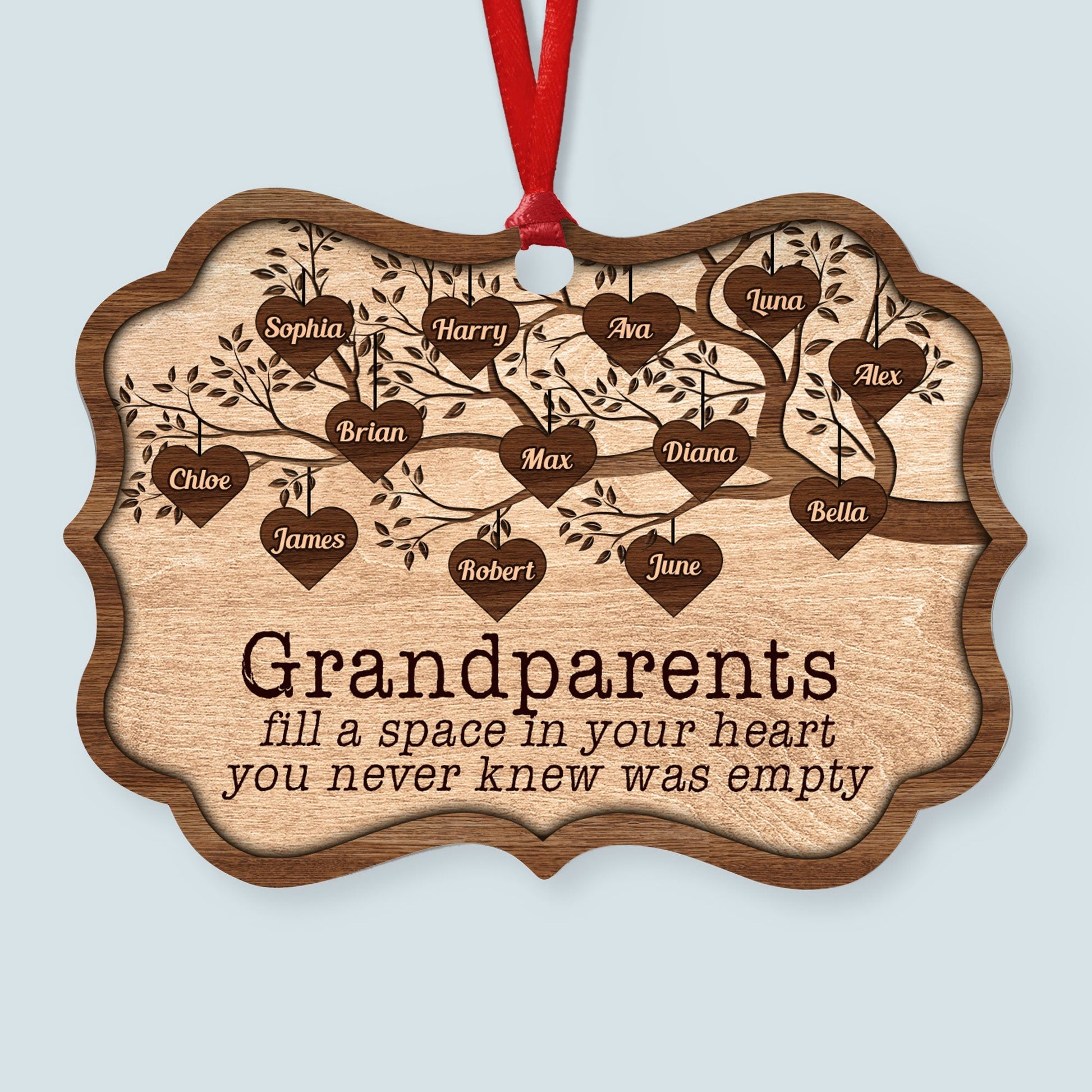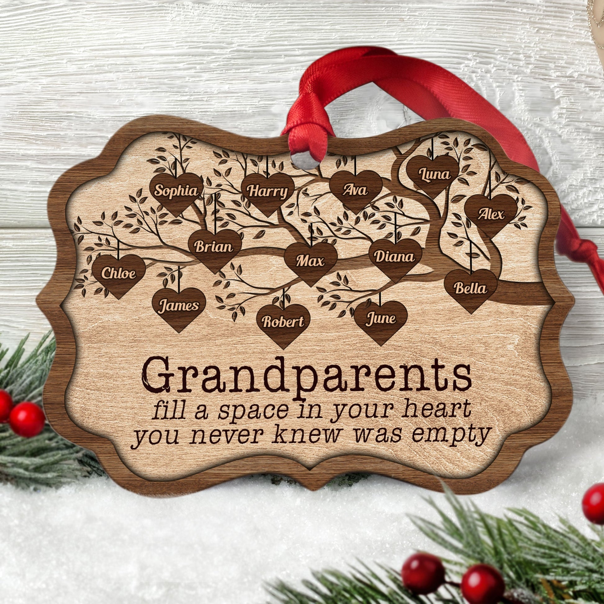 Grandchildren Fill A Space In Heart - Personalized Wooden/Aluminum Ornament - Christmas, Heartwarming Gift For Family Members, Grandma, Grandpa, Mom, Dad