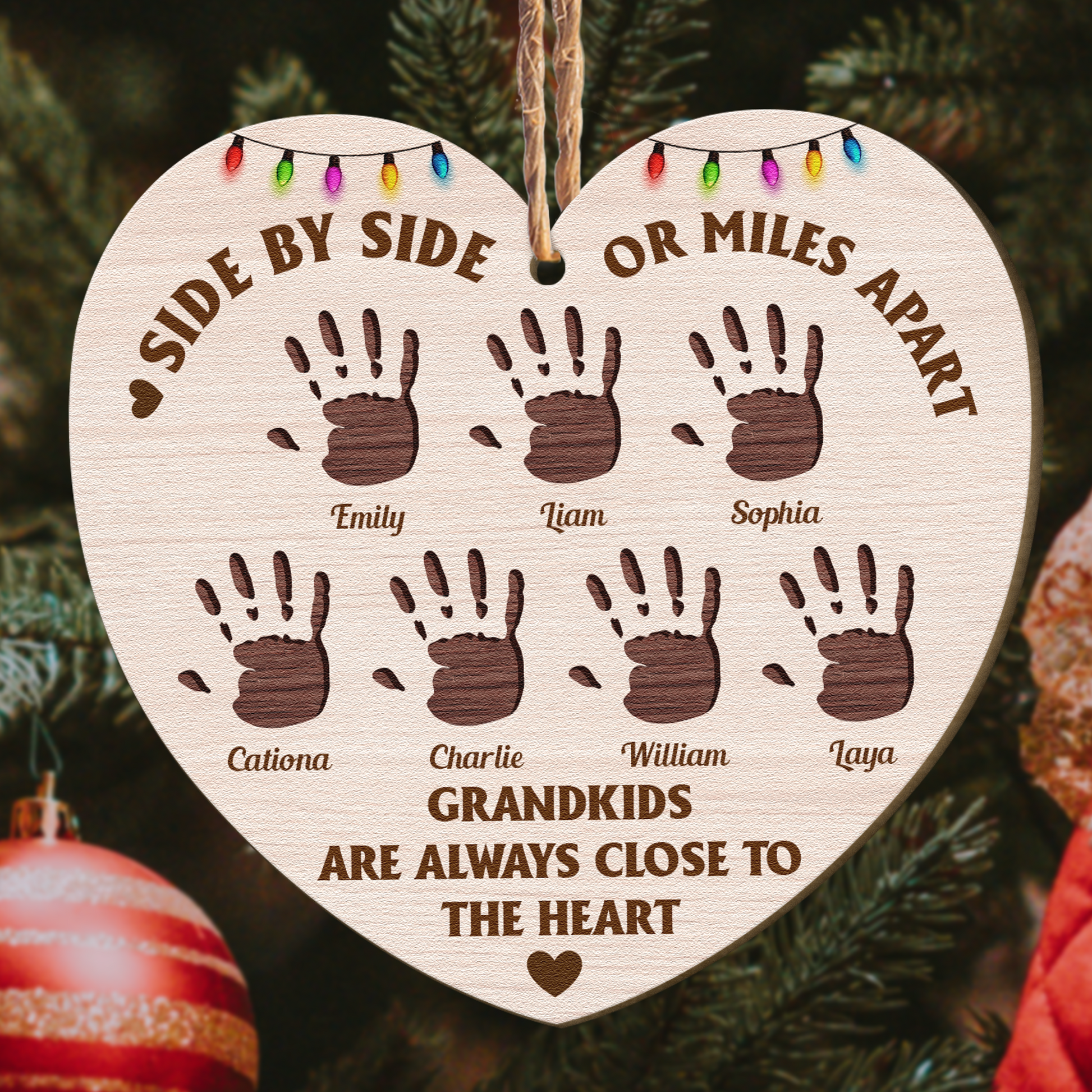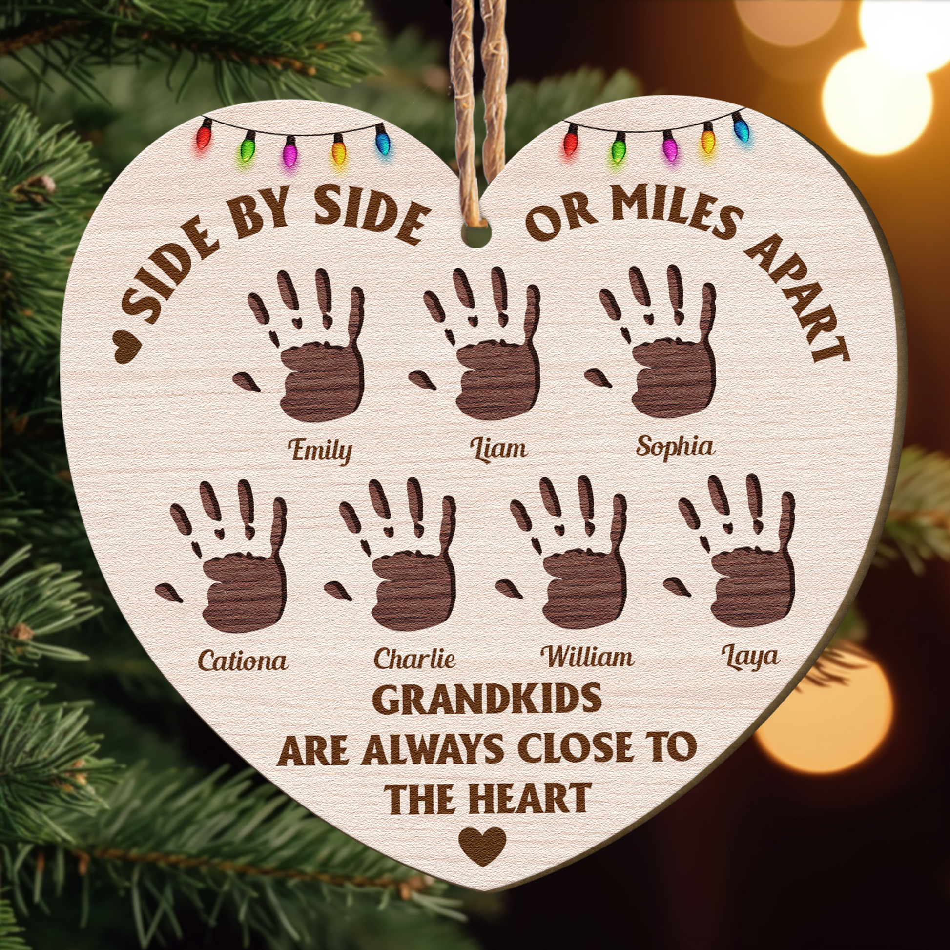 Grandkids Are Always Close To The Heart - Personalized Wooden Ornament