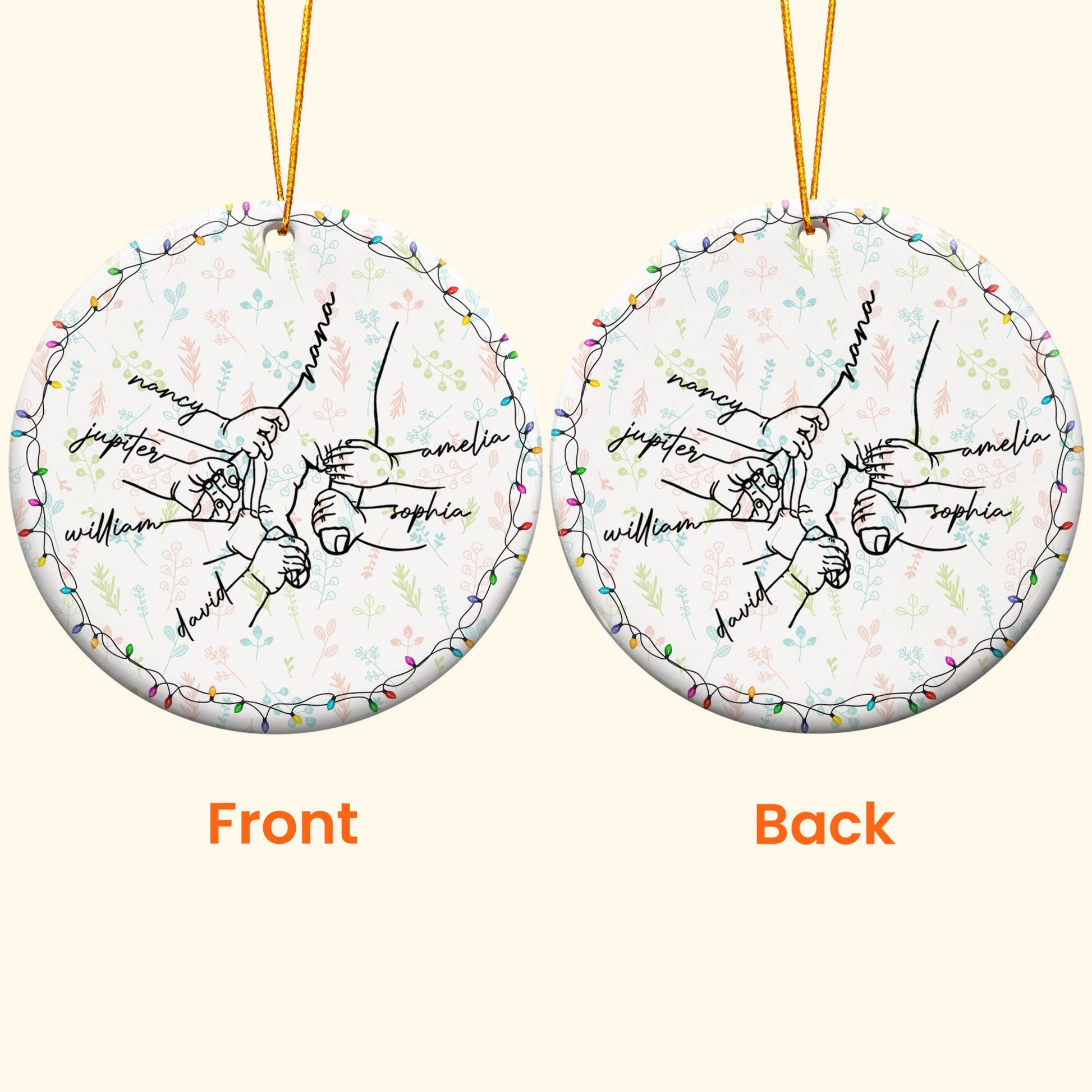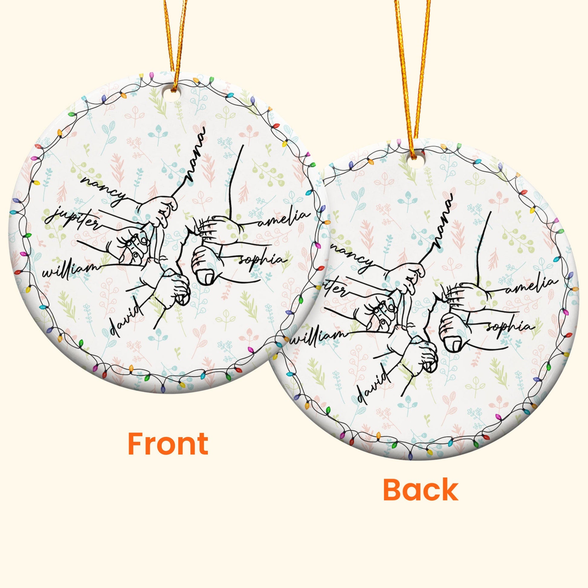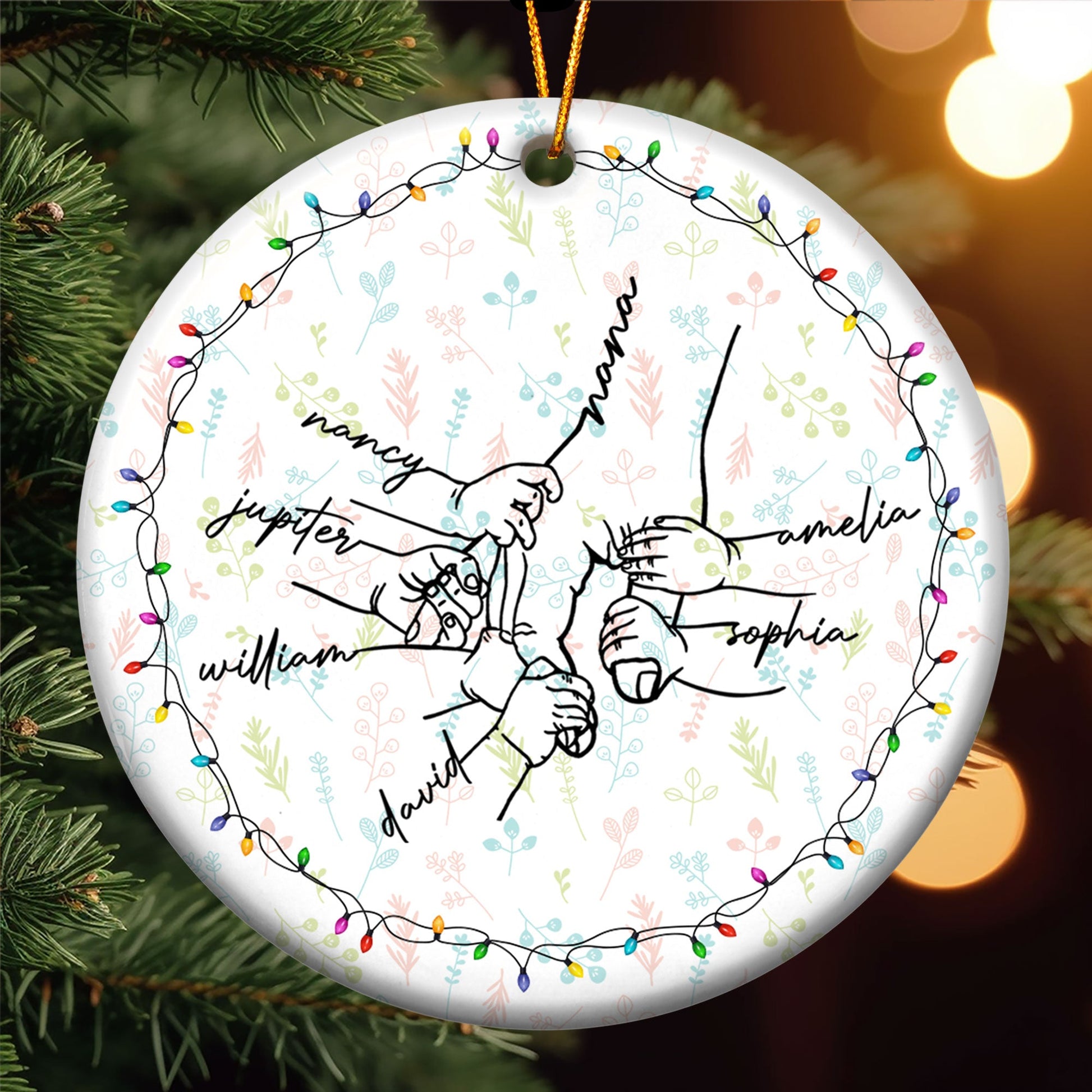 Grandma Hand Grandkids Name Christmas Light - Personalized Ceramic Ornament