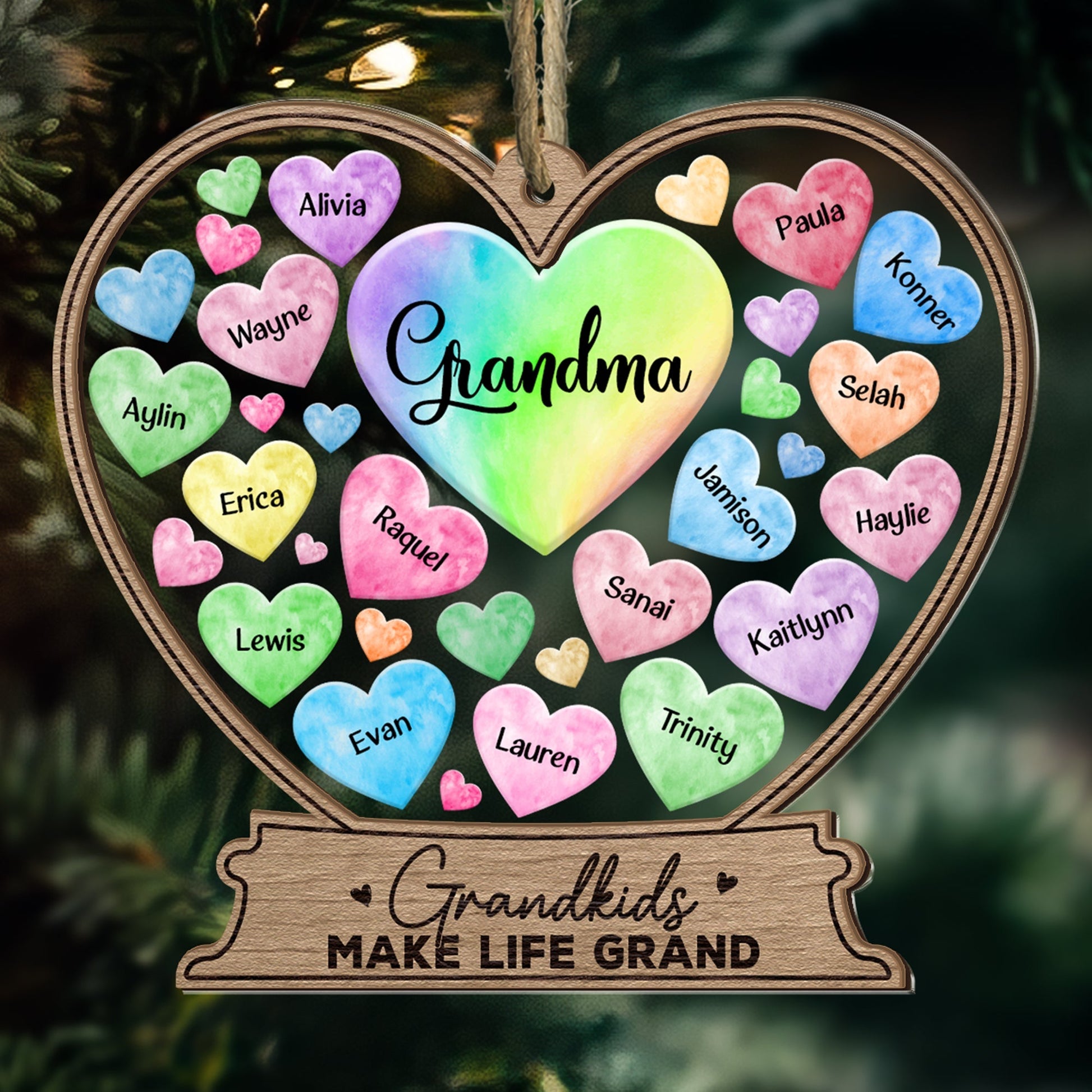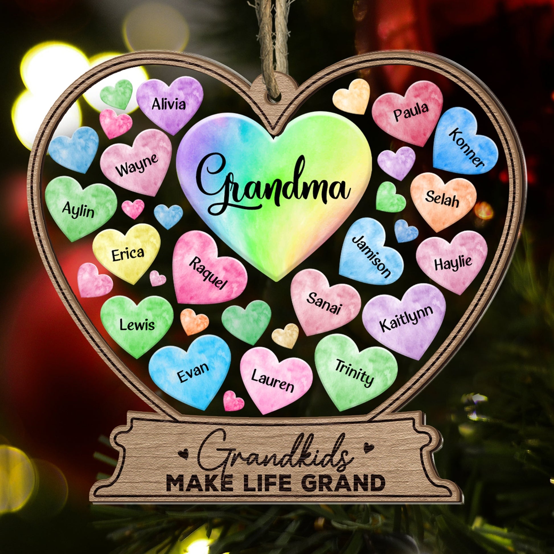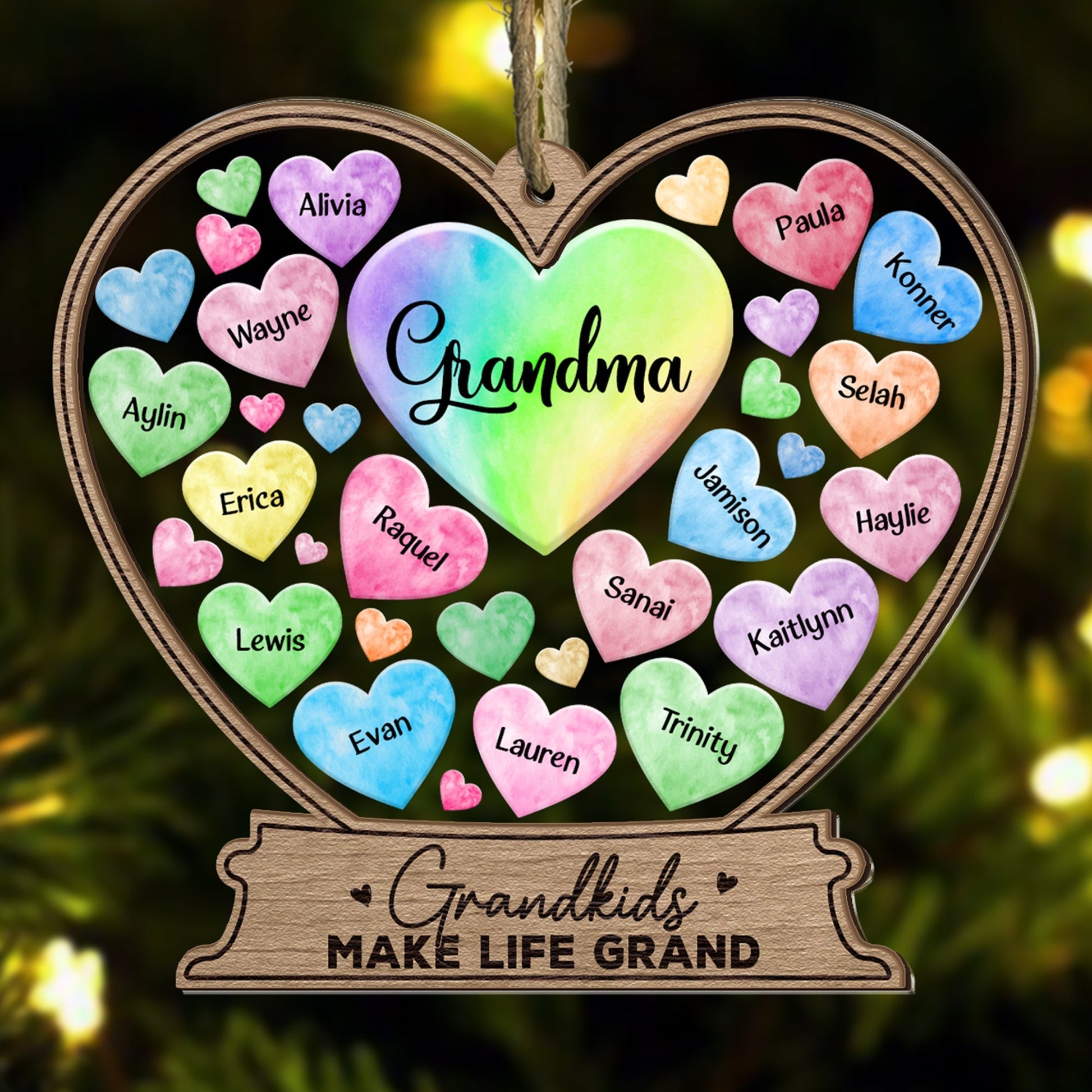 Grandma Mom Hearts With Kids' Names - Personalized Wood And Acrylic Ornament