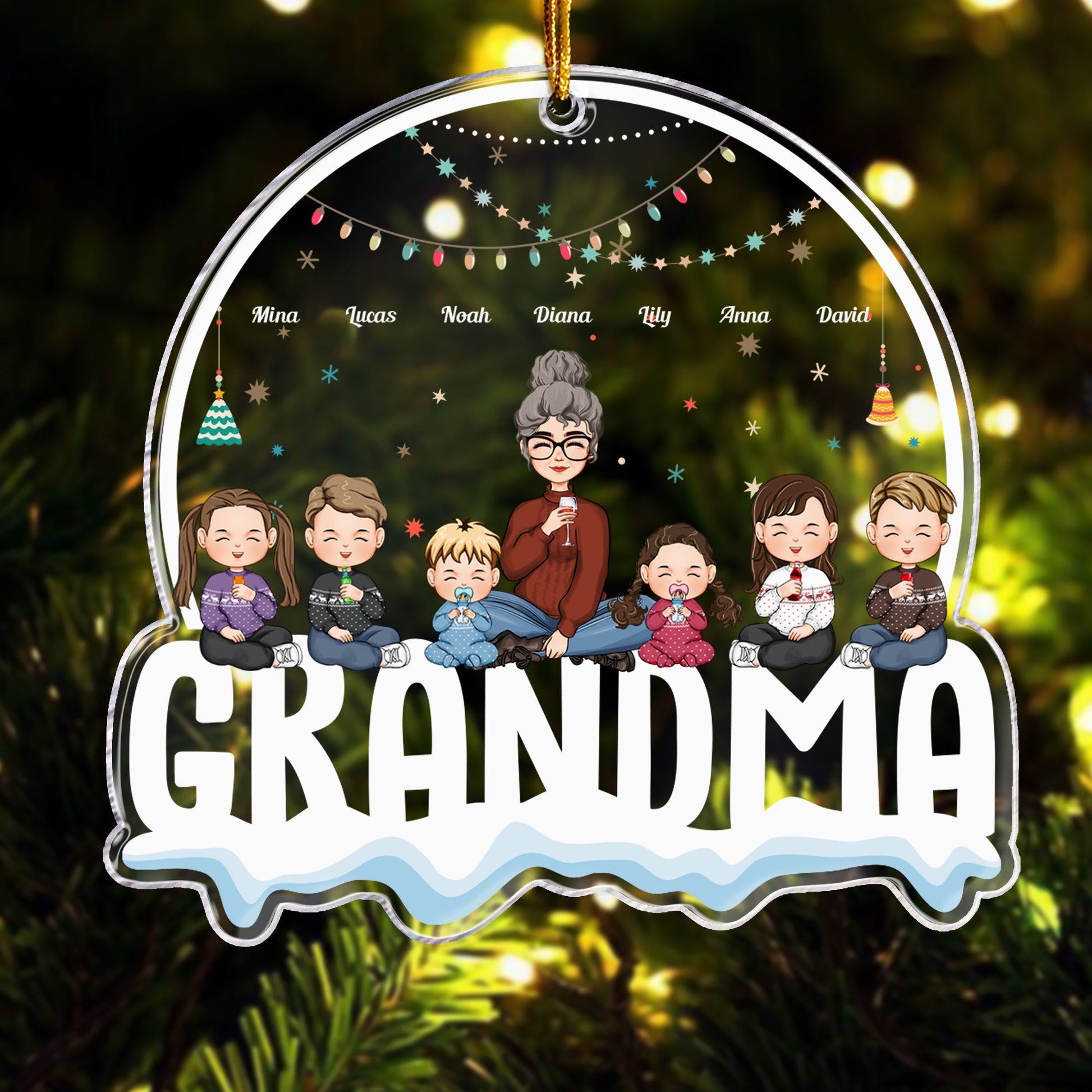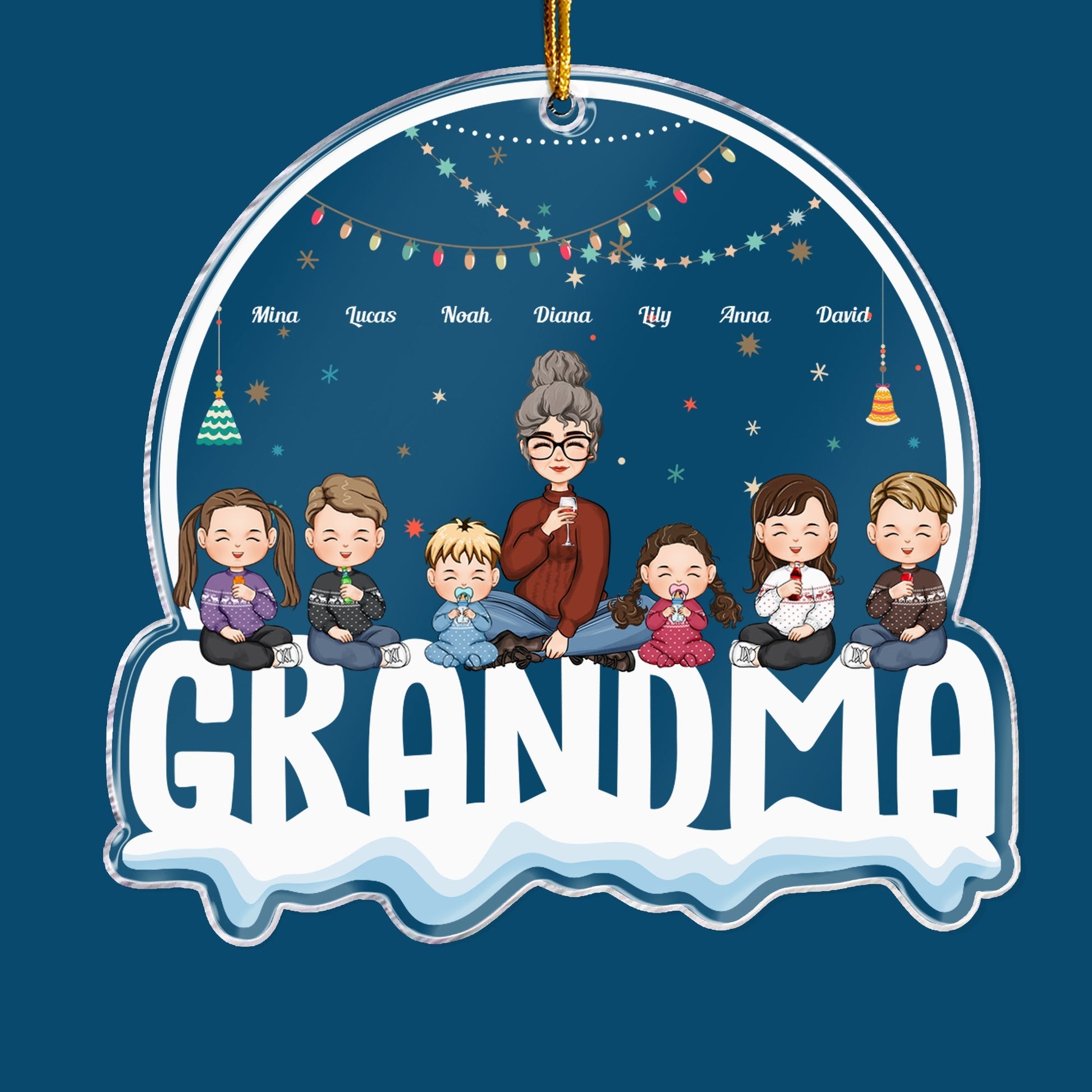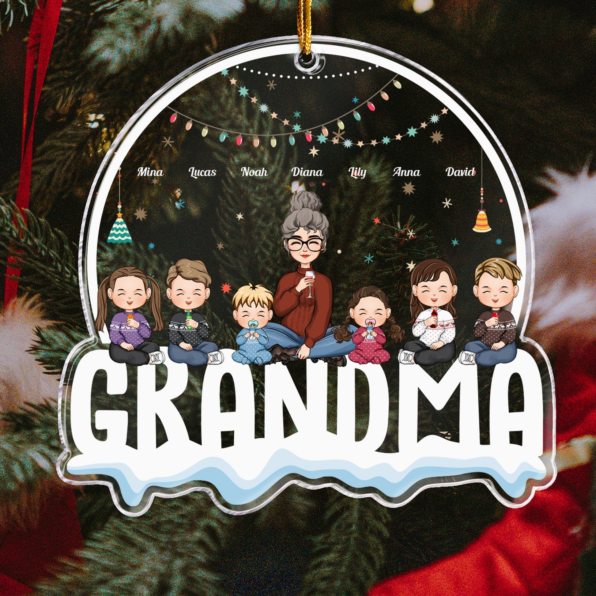 Grandma With Grandkids Custom Kids Names - Personalized Globe Shaped Acrylic Ornament