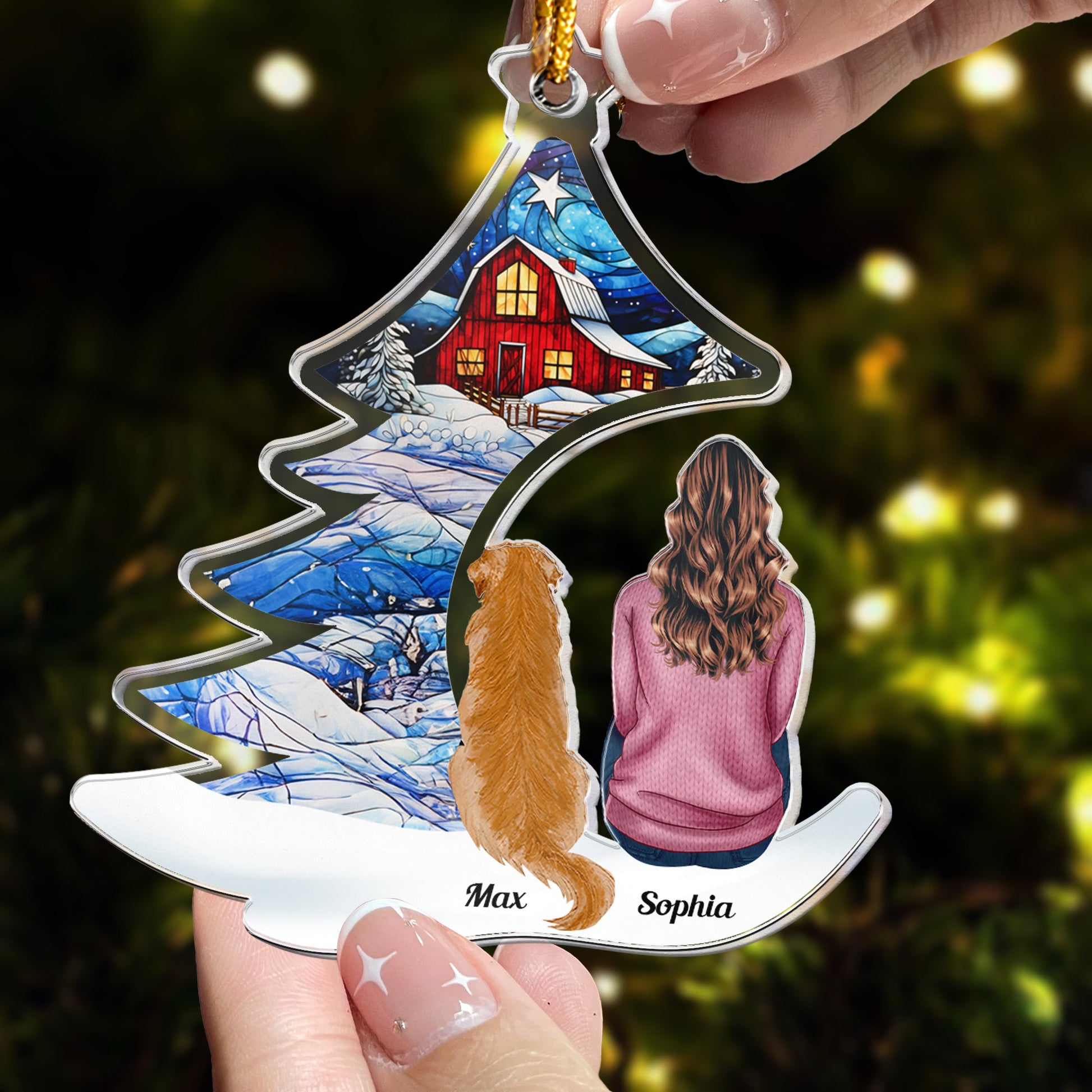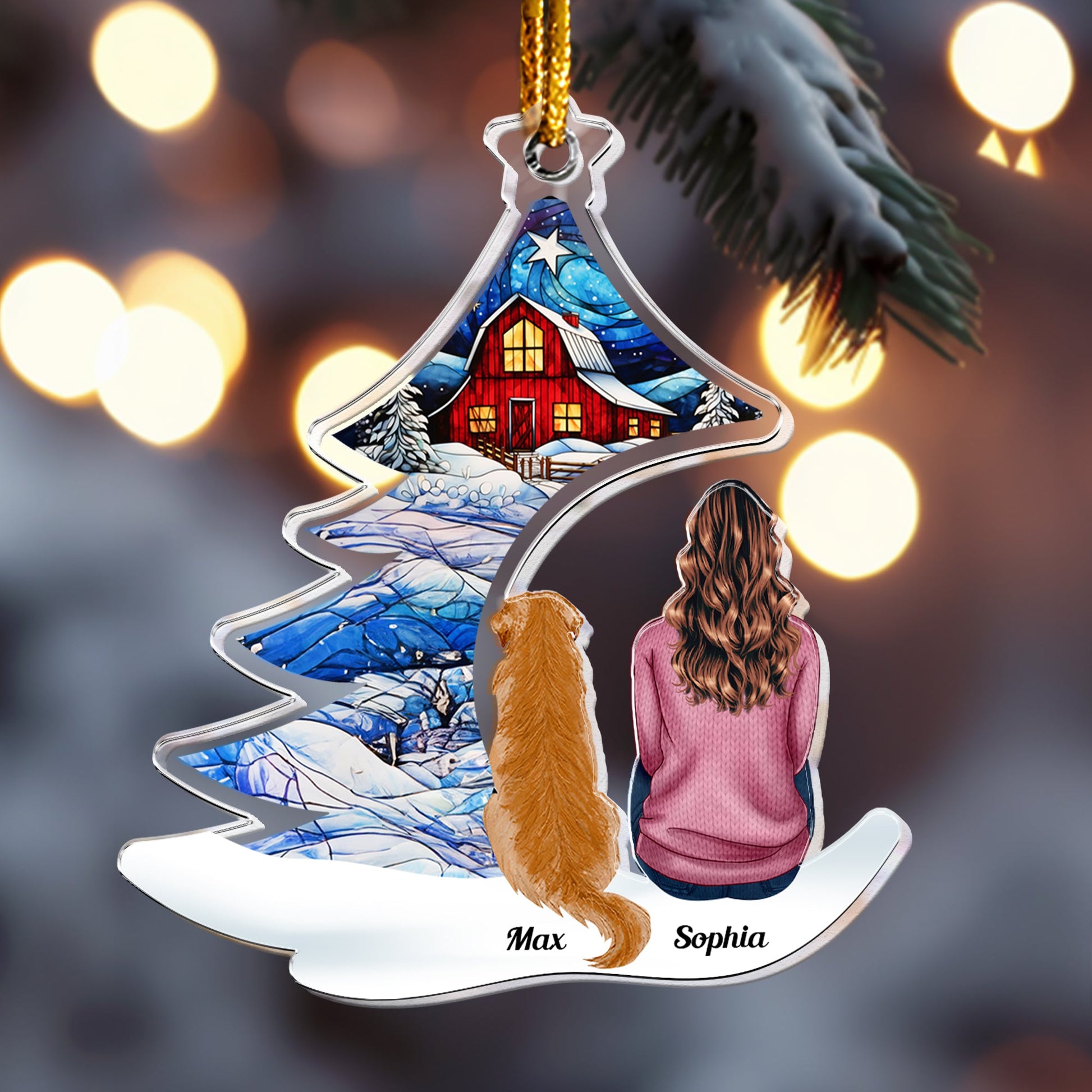 Happily Sitting With Dogs, Cats Under Christmas Tree - Personalized Acrylic Ornament