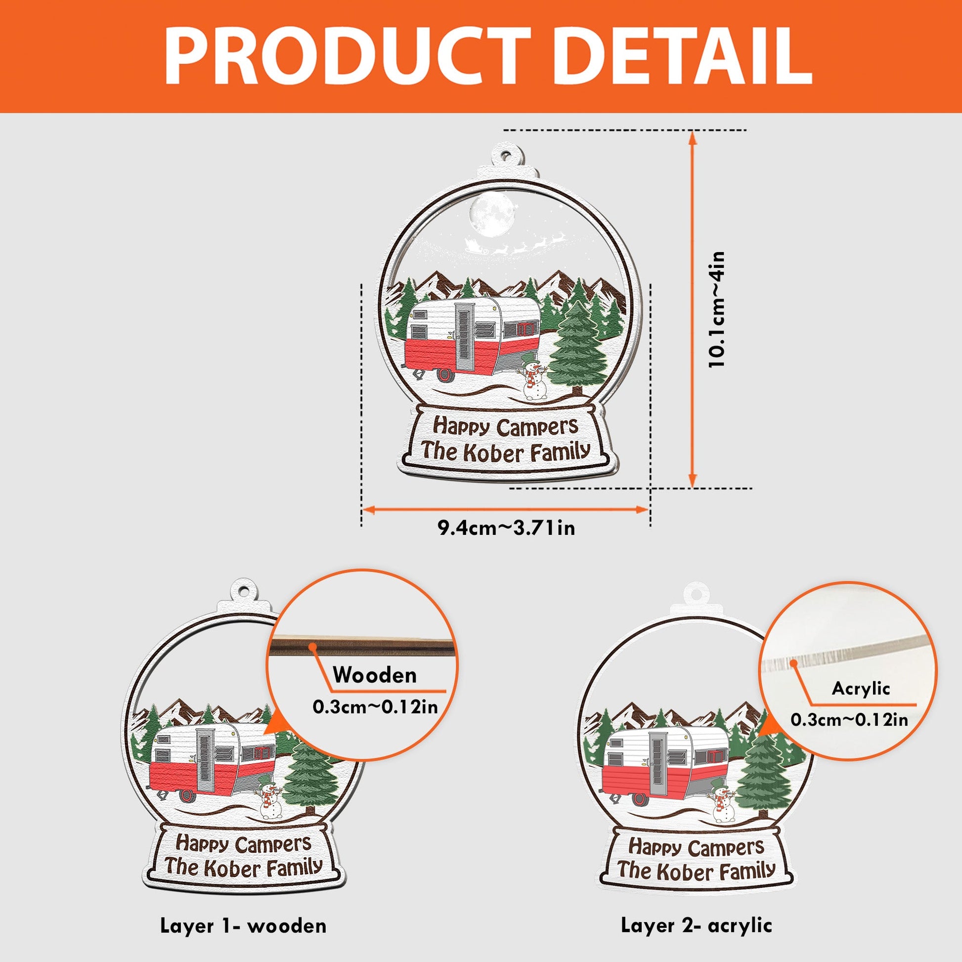 Happy Campers - Personalized Wood And Acrylic Ornament